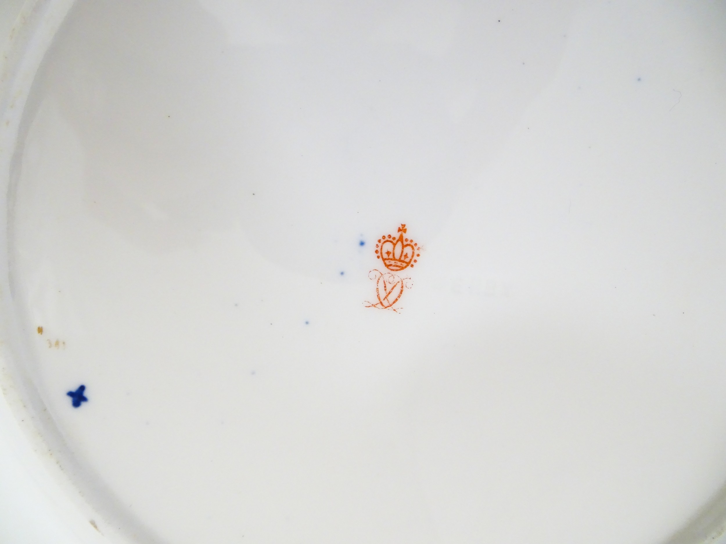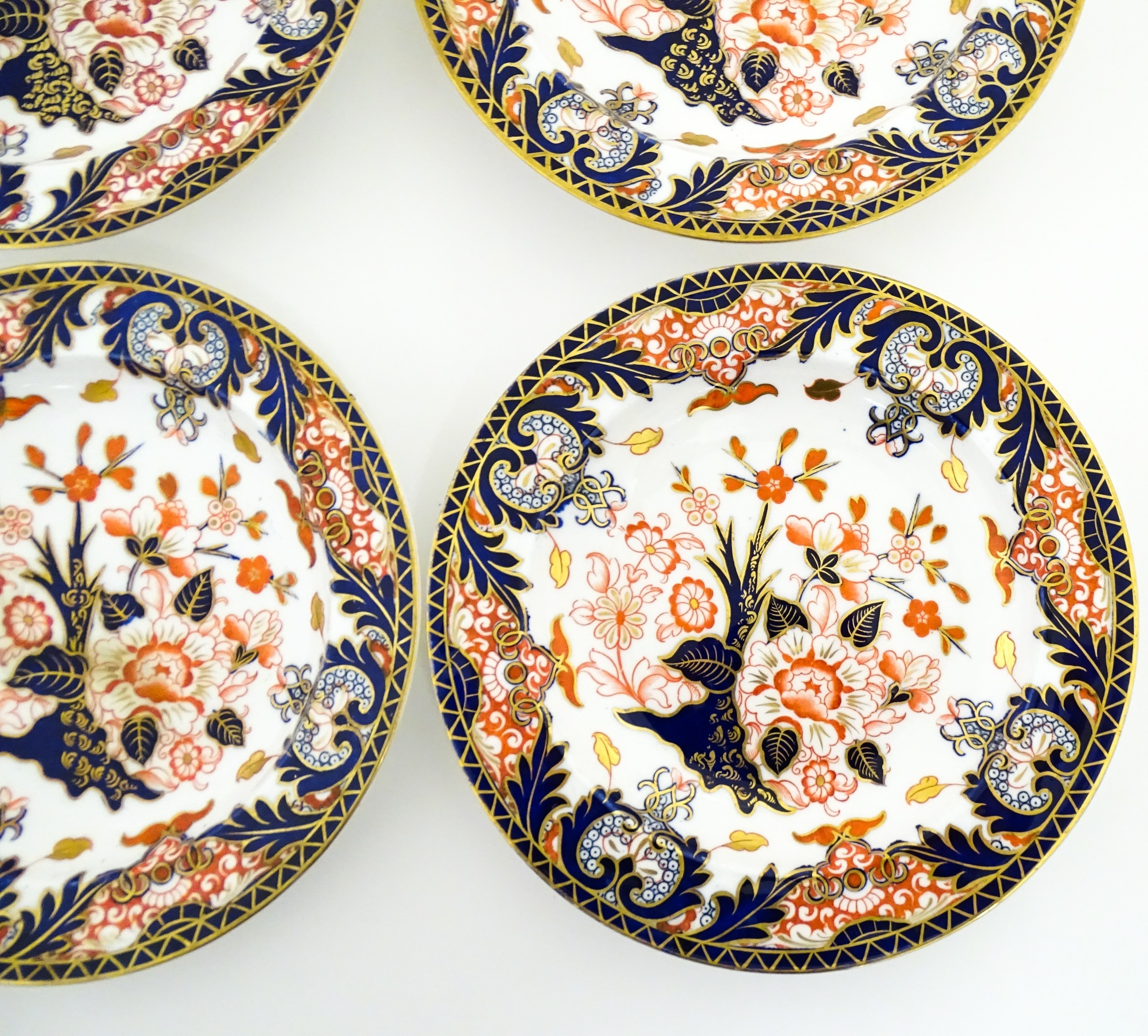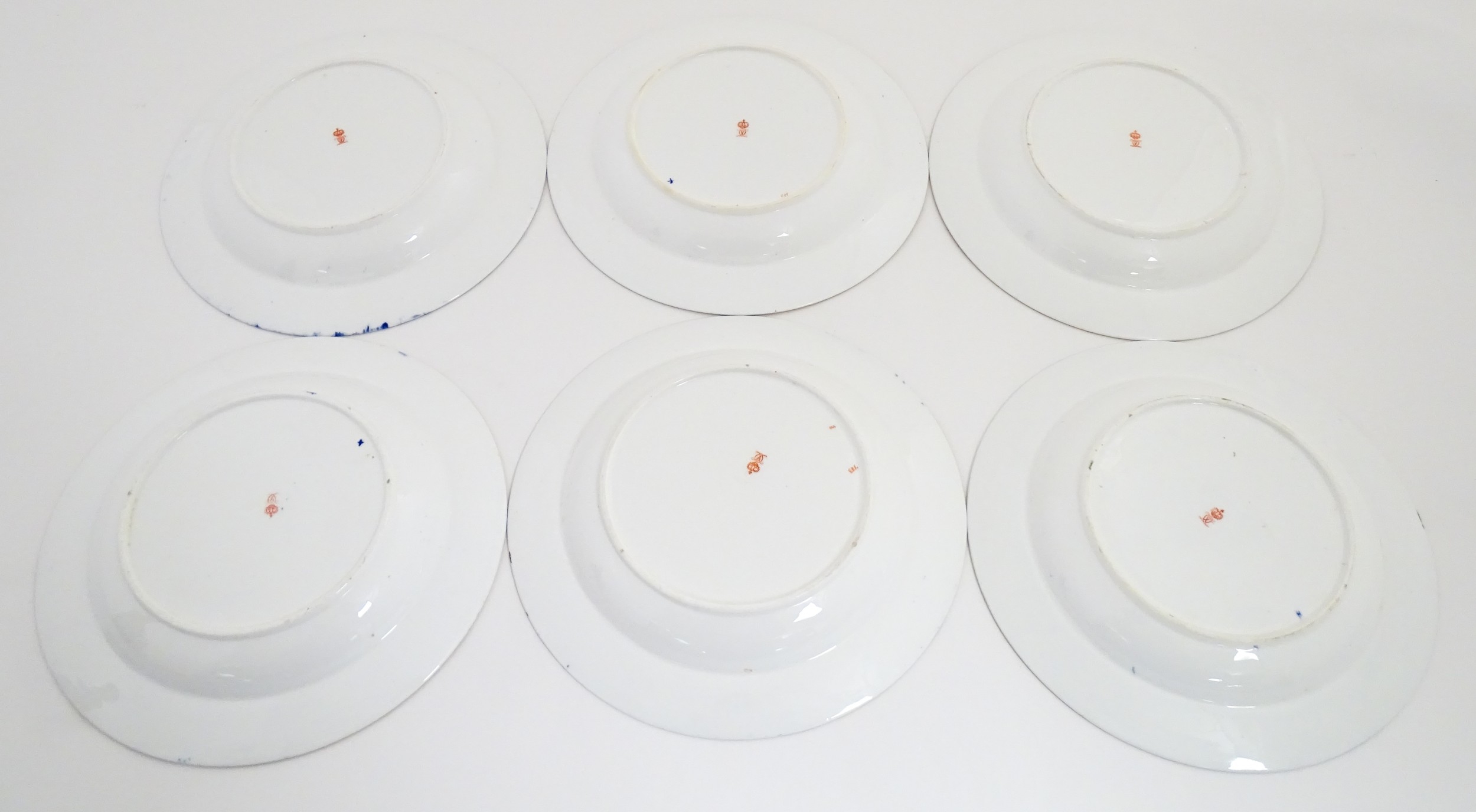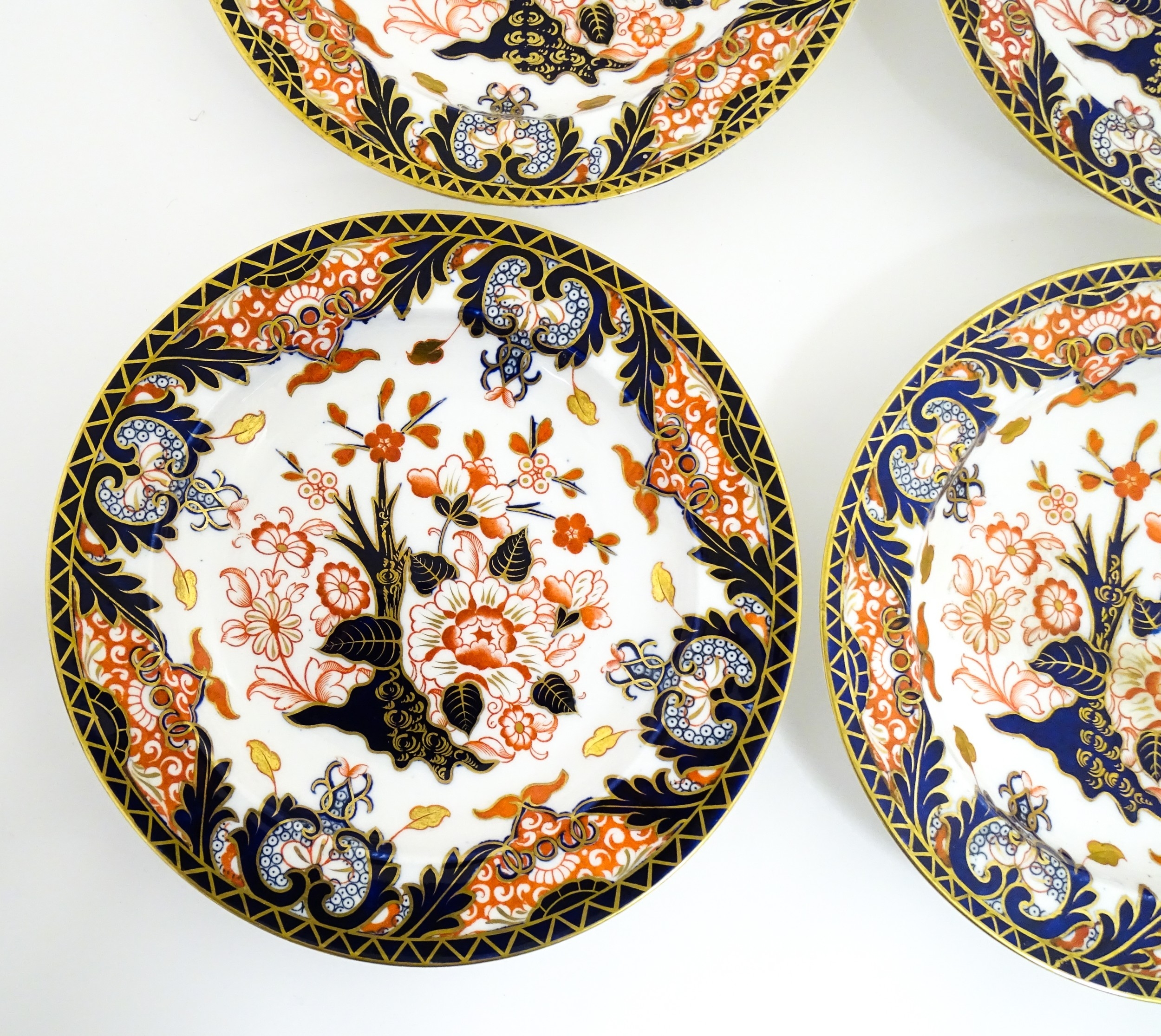 Six Royal Crown Derby dishes decorated in the Imari pattern. Marked under. Approx. 10 1/2" wide (6)