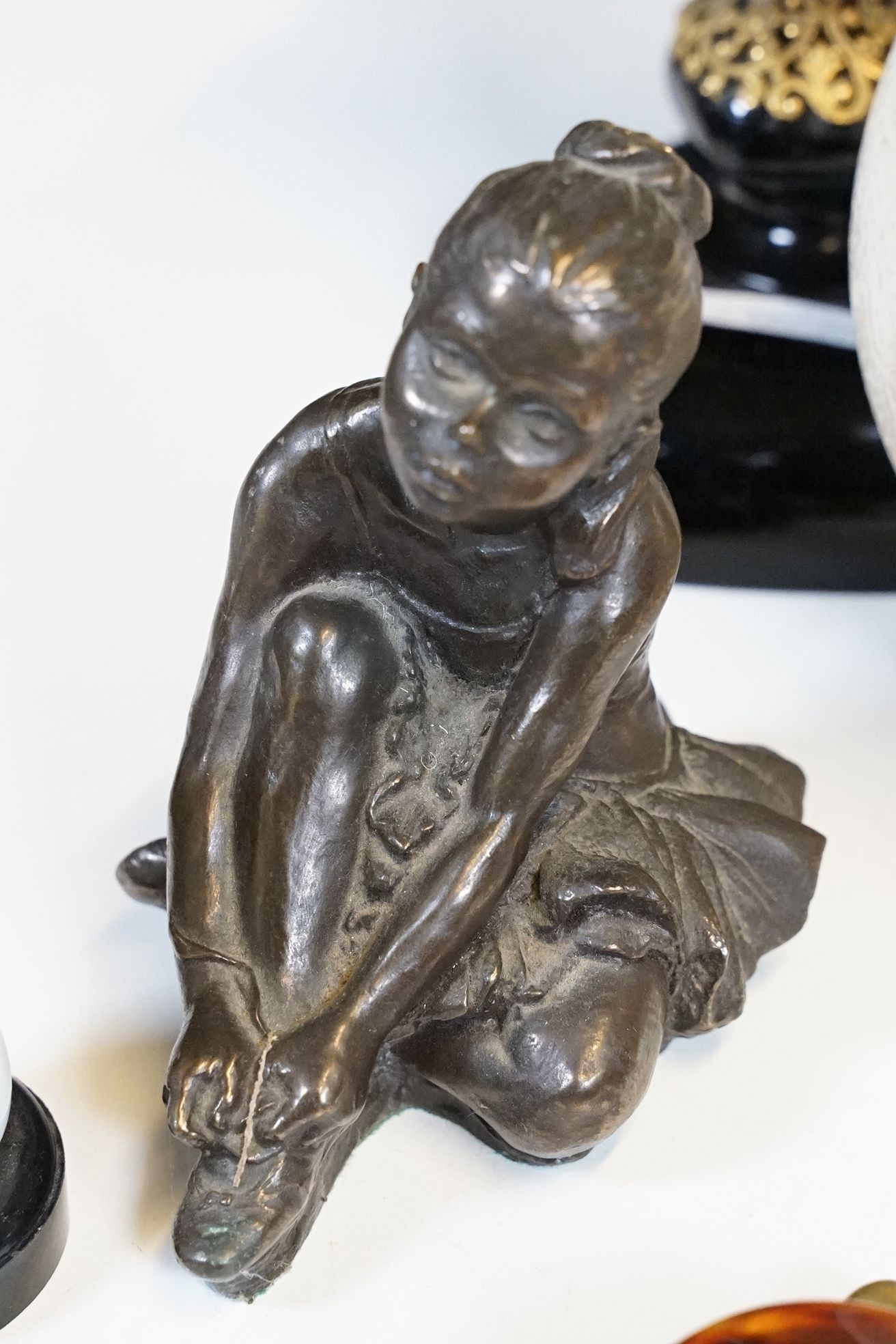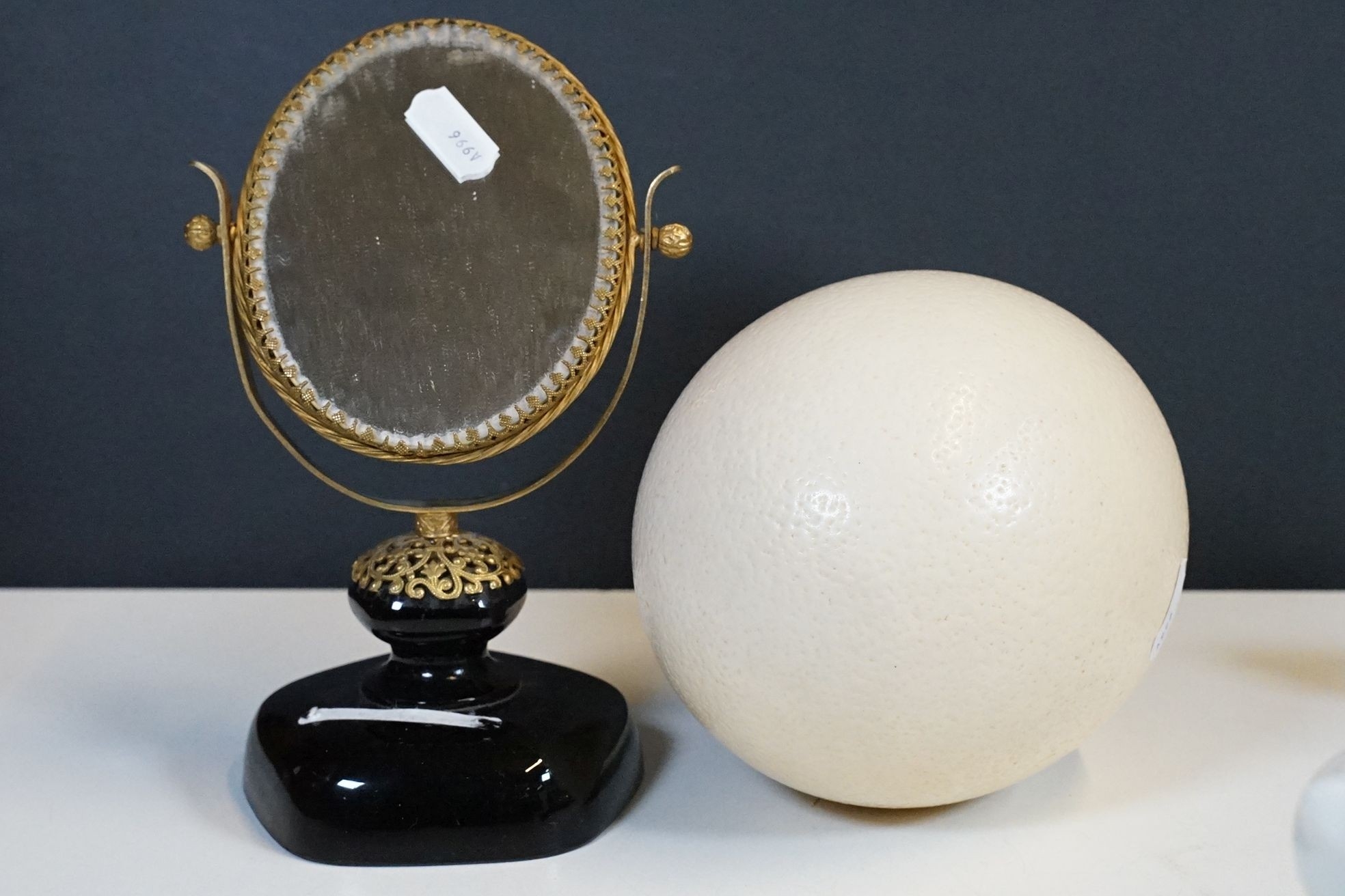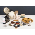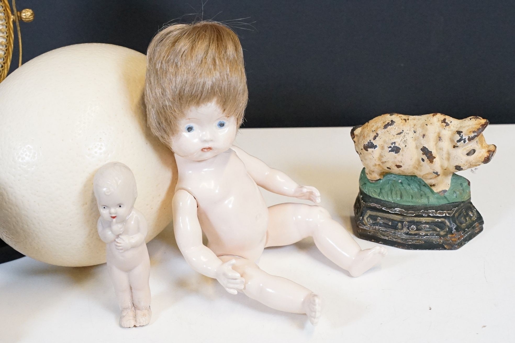 A box of mixed collectables to include ostrich egg, doll, trinket boxes, door stop... etc...