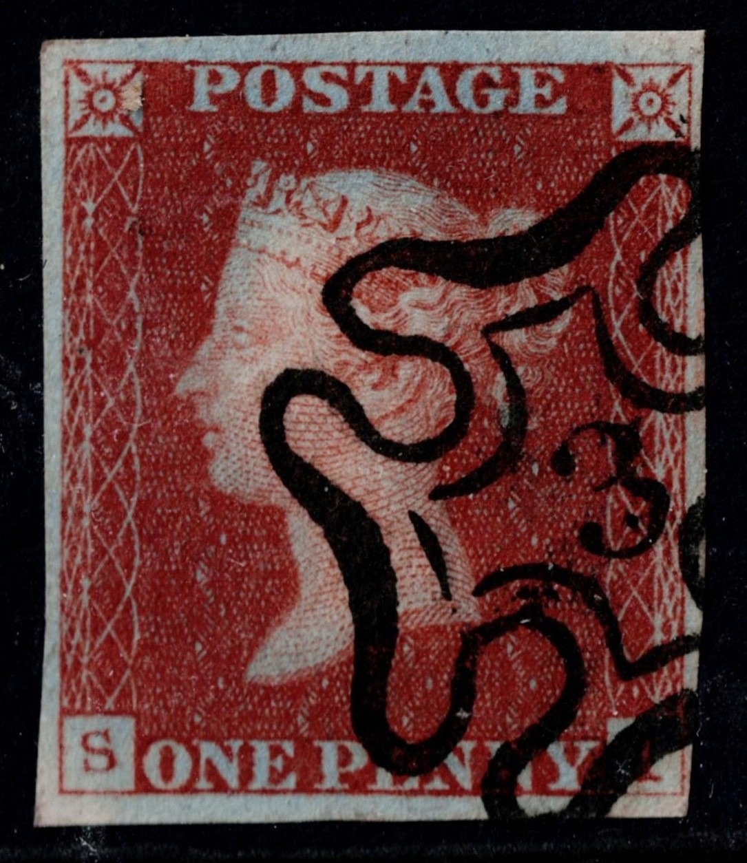 GB 1841 1d red plate 35 SI 4m superb used London number 3 in cross, a stunner sg8 Cat.£225