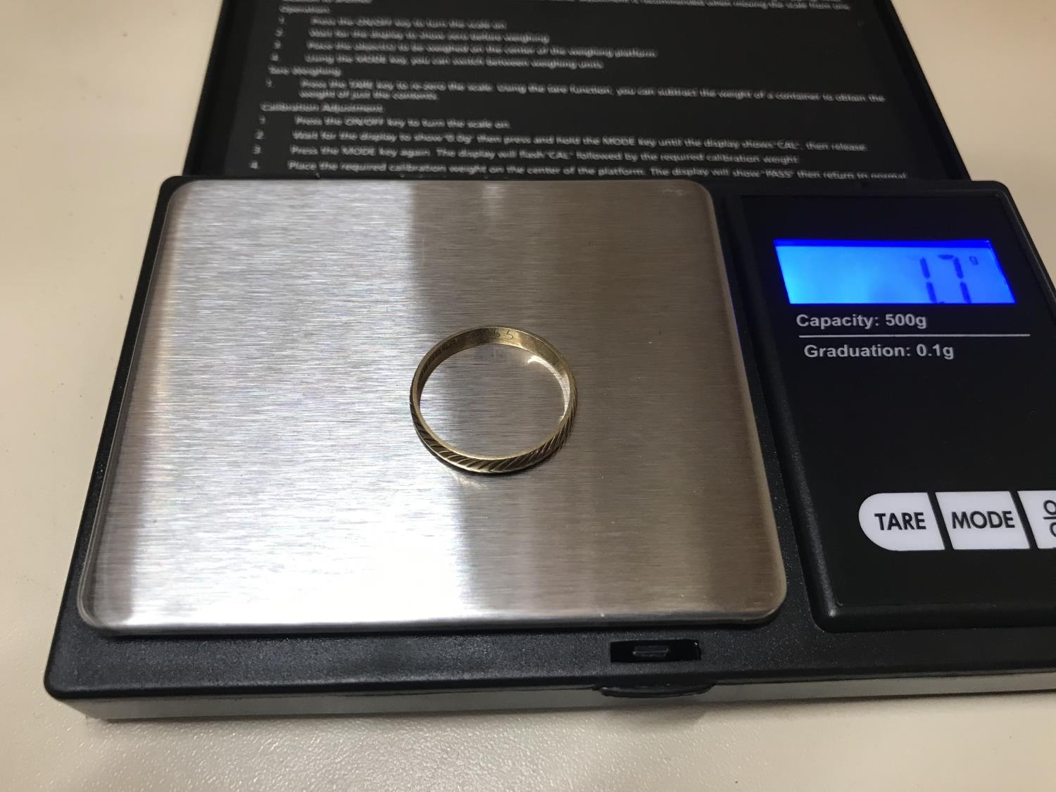 9ct Gold band ring, 1.7g