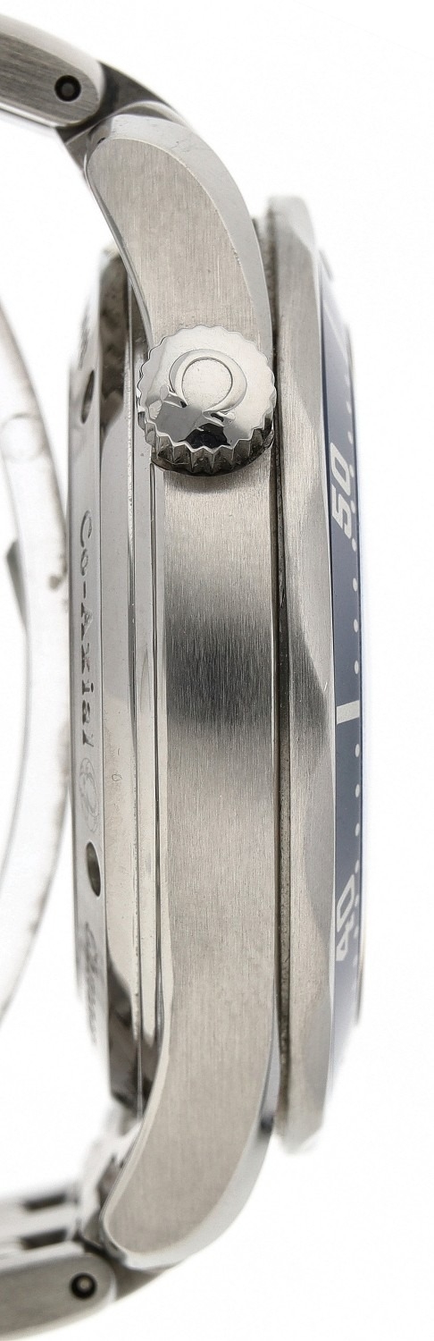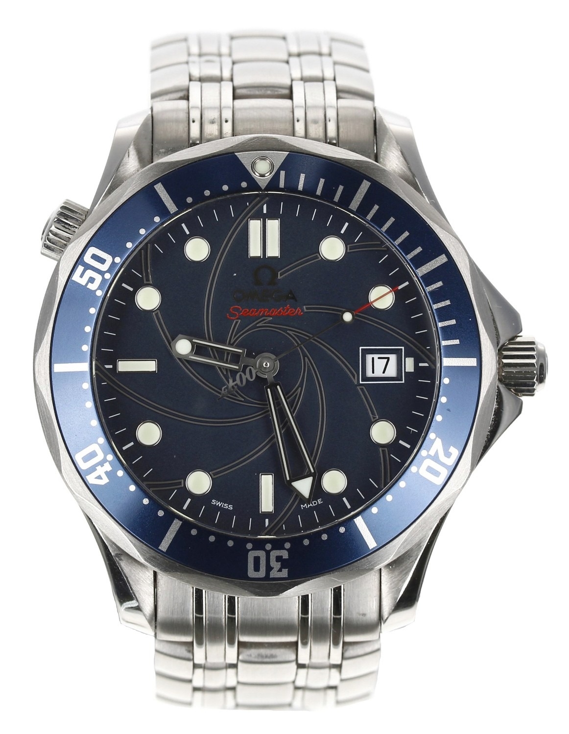 Omega Seamaster Professional Co-Axial Chronometer 300m/1000ft 'James Bond 007 Casino Royale' limited edition automatic stainless steel divers wristwatch, reference no. 22268000, serial no. 81727xxx, limited edition no. 066xx/10007, circa 2006/2007, black spiral effect dial, rotating bezel with blue insert, helium escape valve at the ten position, cal. 2500 movement, Omega Seamaster Professional 007 bracelet, 41mm bezel