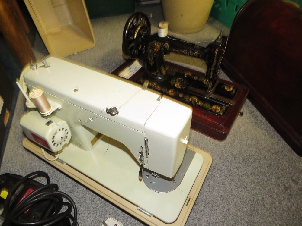 A cased vintage Singer sewing machine together with a cased Clare electric sewing machine (2)