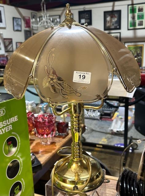Brass Based 3 Bulb Table Lamp With Glass Panel Shade