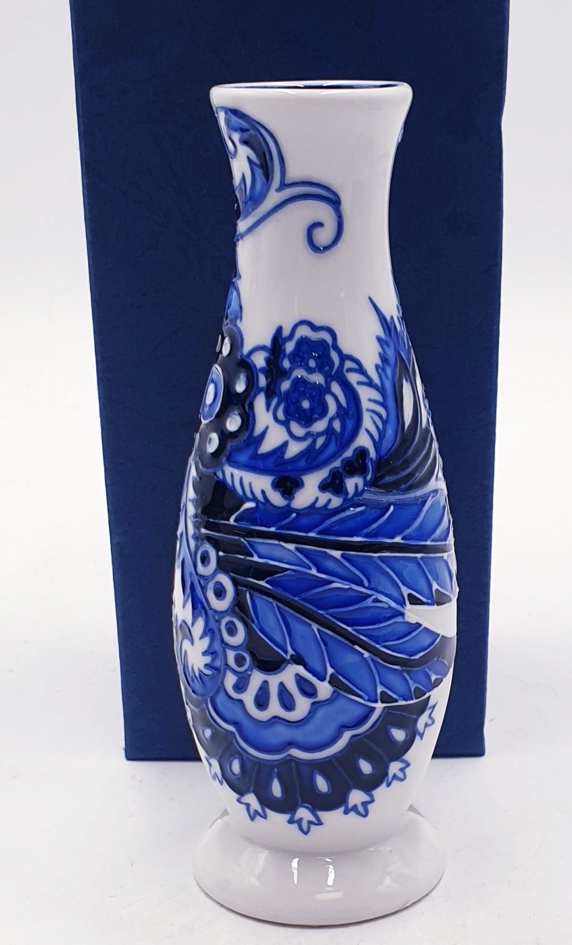 OLD TUPTON WARE TUBELINED BLUE/WHITE 16cm VASE (Product Code No TW1264) (As New , Original Box)