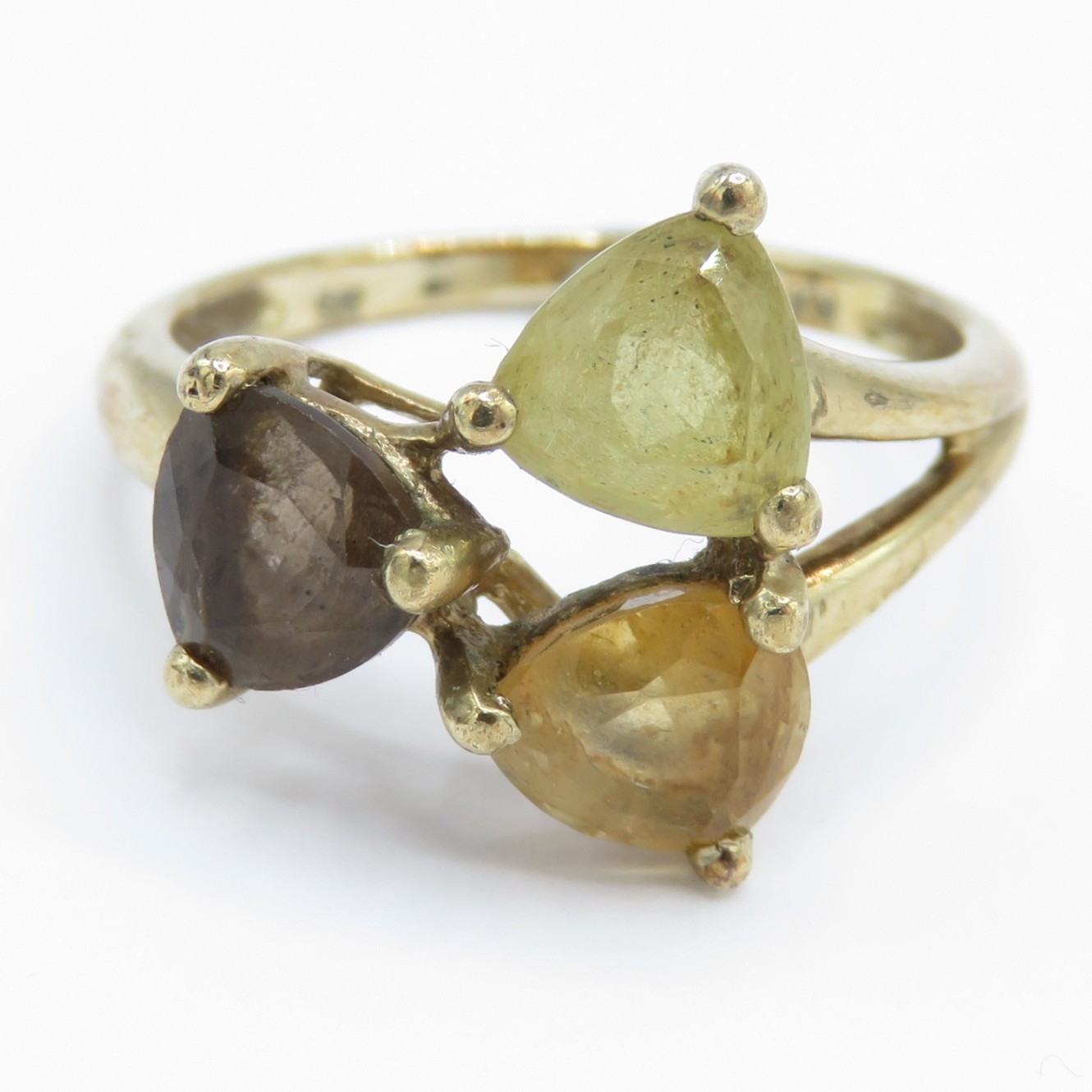 9ct Gold Citrine Trilogy Ring (2.2g) Size L