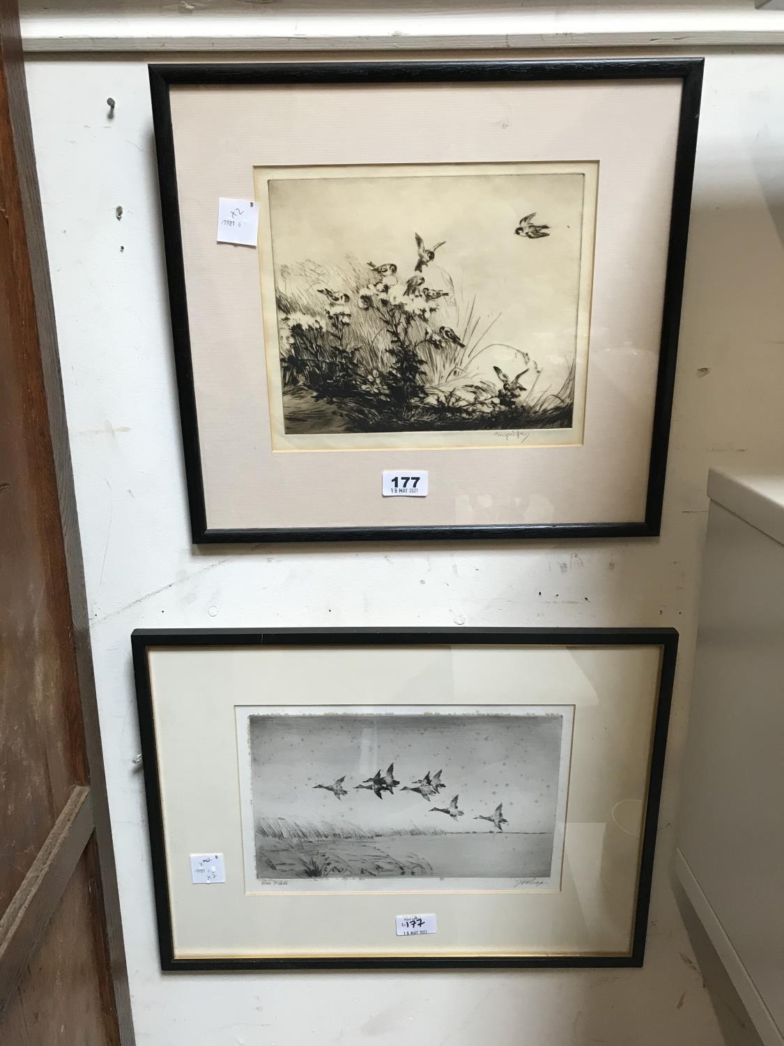 George Soper signed etching of Goldfinches; and another signed etching (2)
