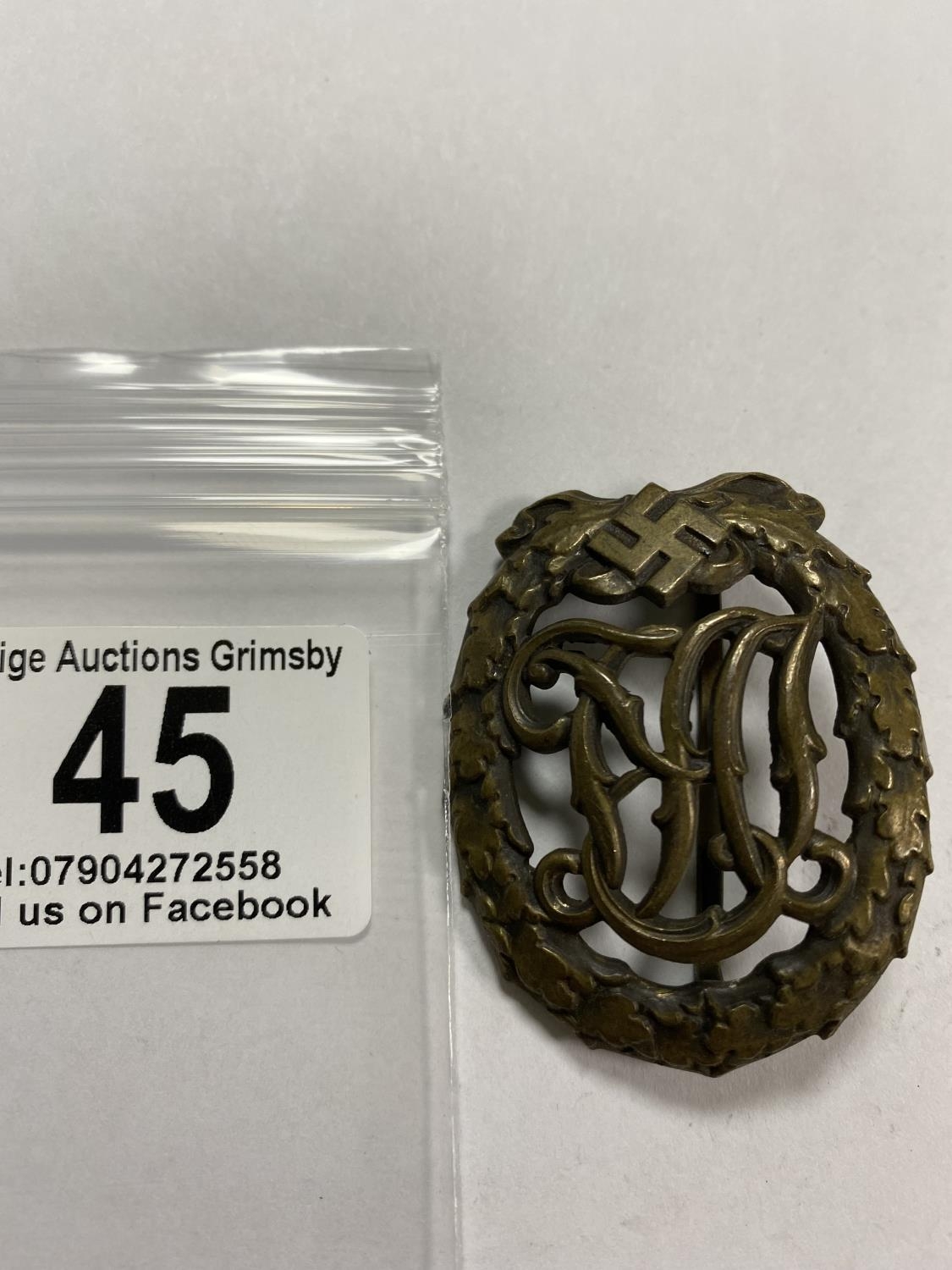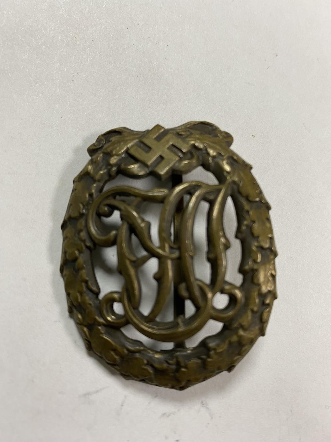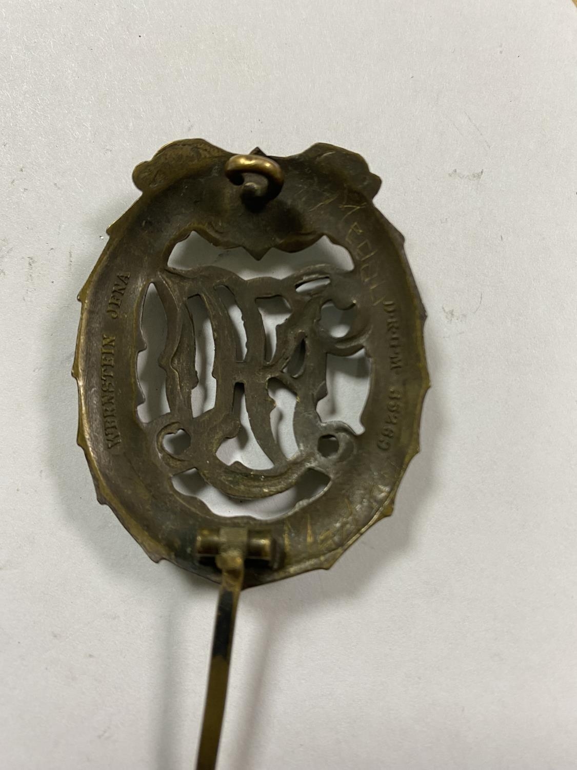 WW2 GERMAN DRL SPORTS BADGE WITH WERNSTEIN JENA & DRGM 35269 ON THE BACK