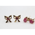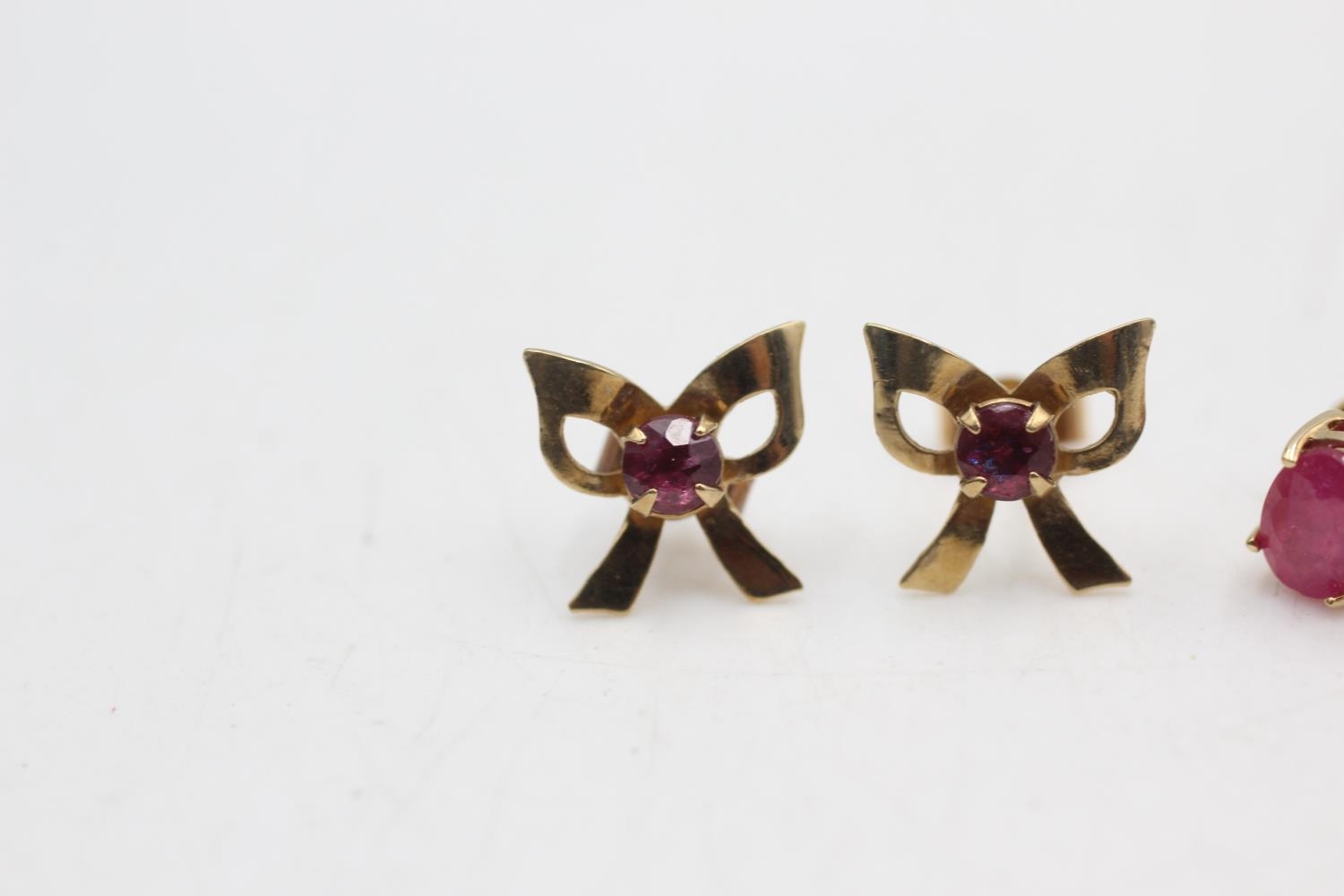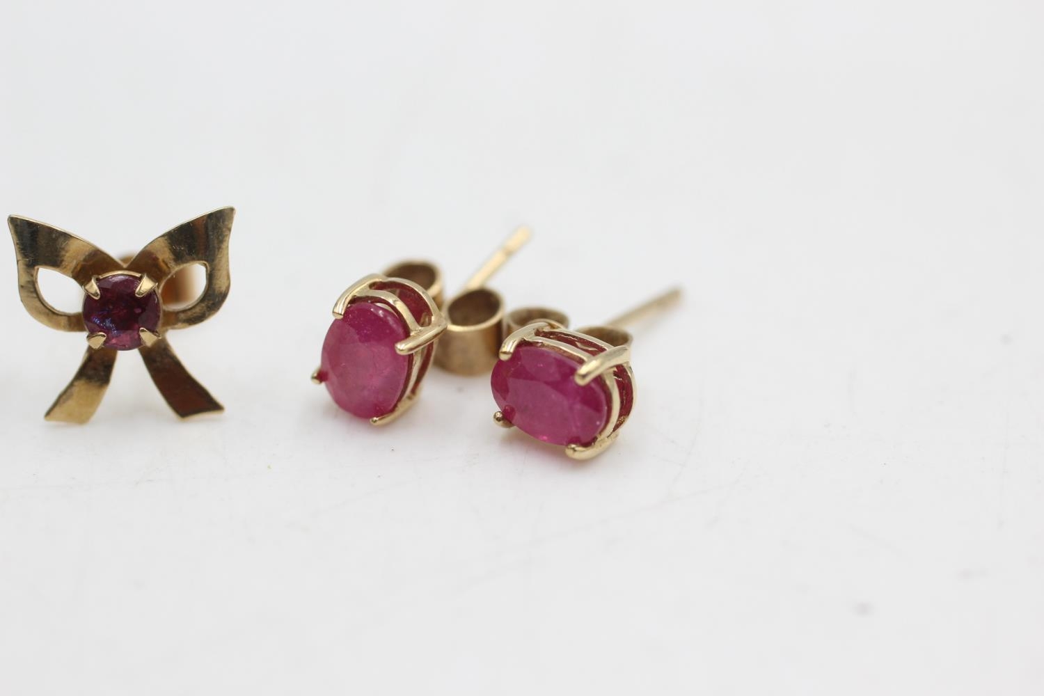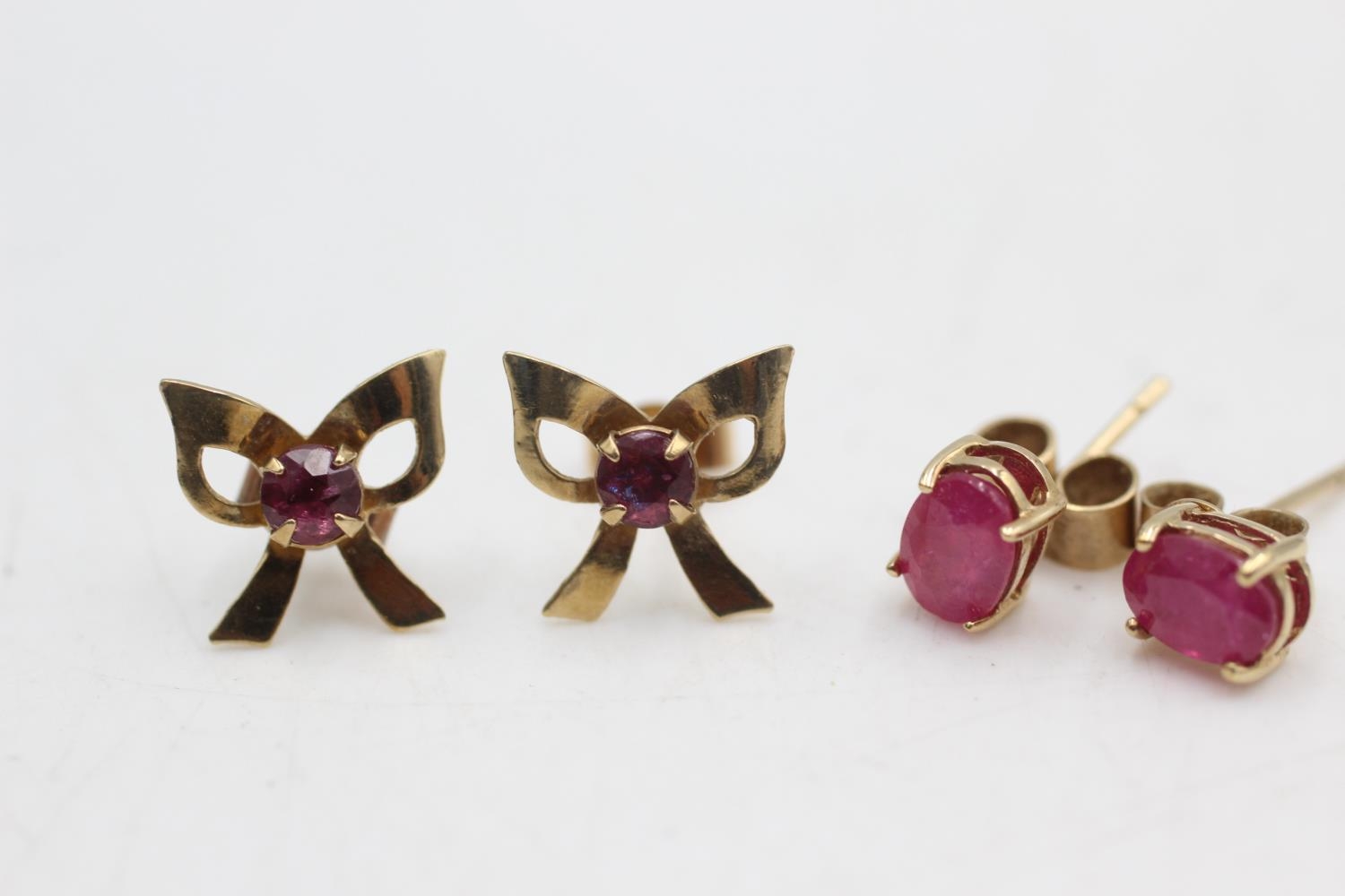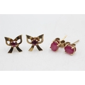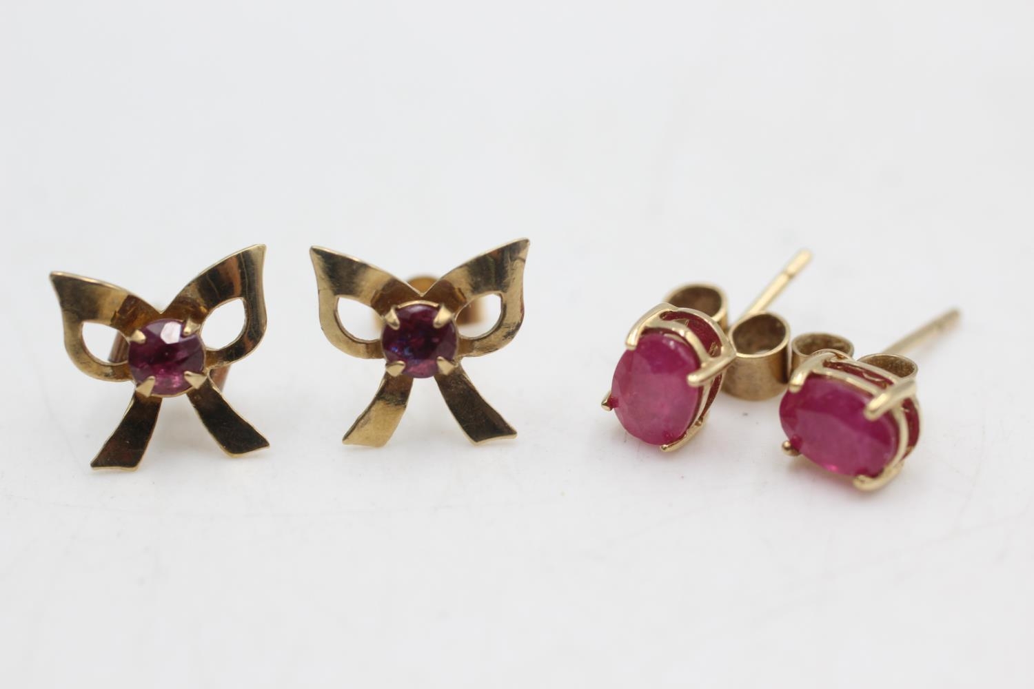 2 x 9ct gold ruby stud earrings inc. Glass filled (1.4g)