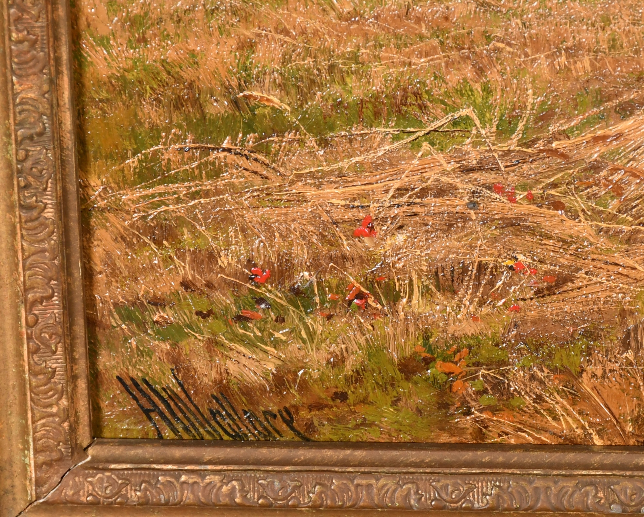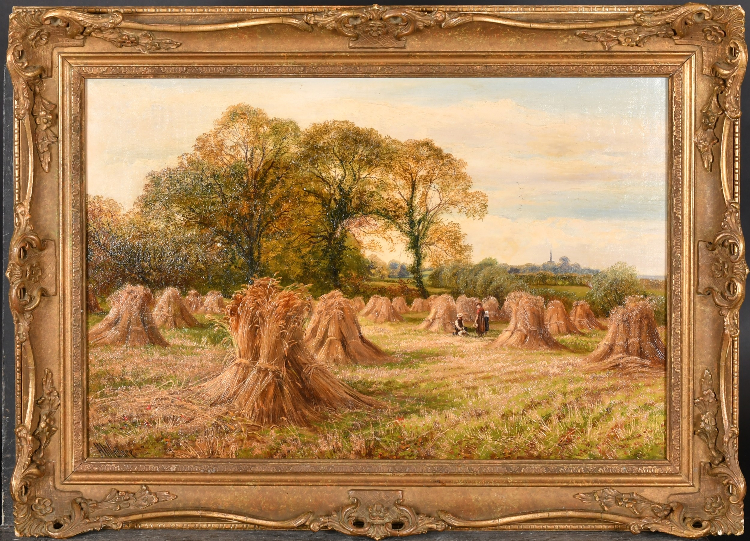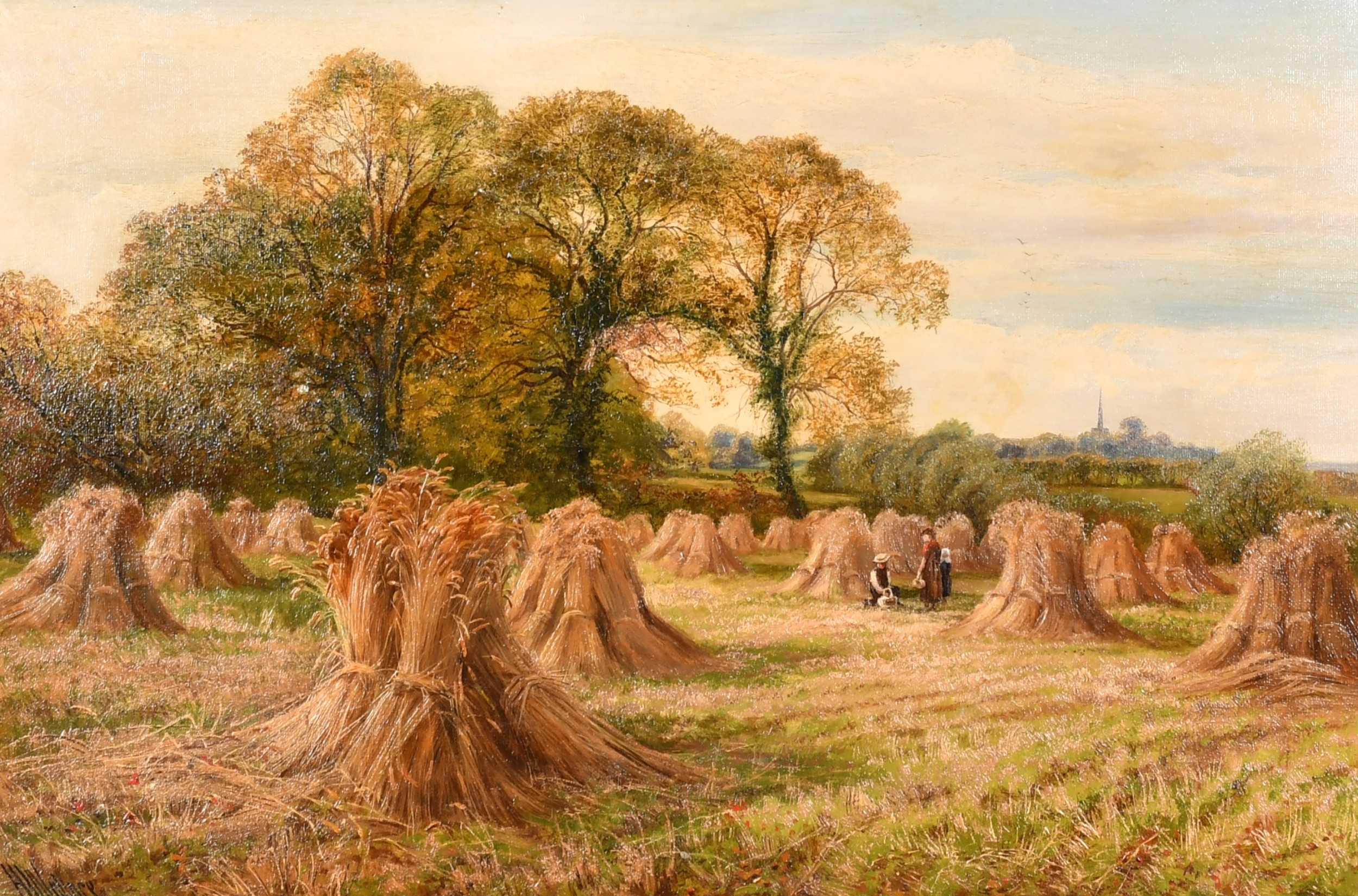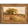Harry Wallace (act.1881-1934) British. "Harvest Scene, Near Castle Donington", Oil on canvas, Signed, and inscribed verso, 16" x 24" (40.6 x 61cm). Provenance: Omell Galleries, London