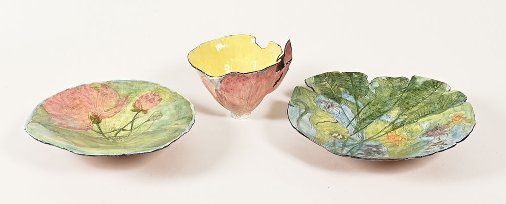 Claudia Clare (British born 1962), a teacup saucer and plate "The Virgin and The Hoar" from The World Service Tea Set. Teacup height 10 cm, diameter +/- 17 cm, saucer diameter 26 cm, plate 26 cm, together with a booklet of The World Service Tea Set and postcard.