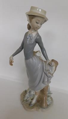 Large Lladro lady figure, approx. 11 inches, stamped to base (missing thumb)