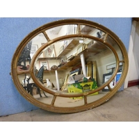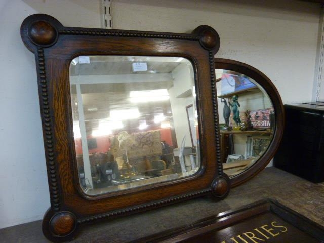 An Edward VII inlaid mahogany oval mirror and an oak framed mirror