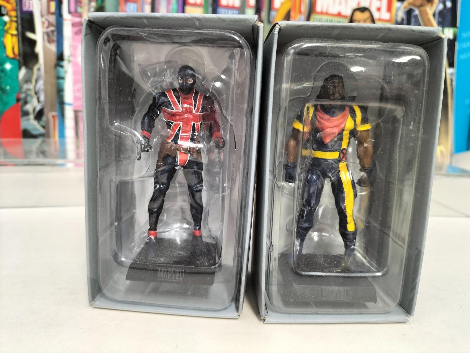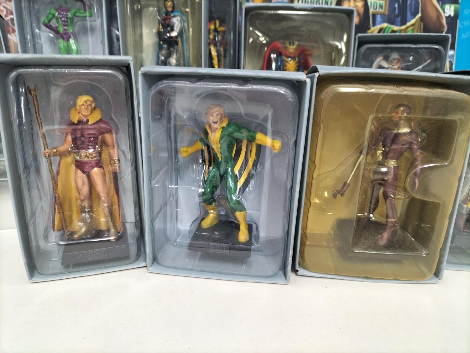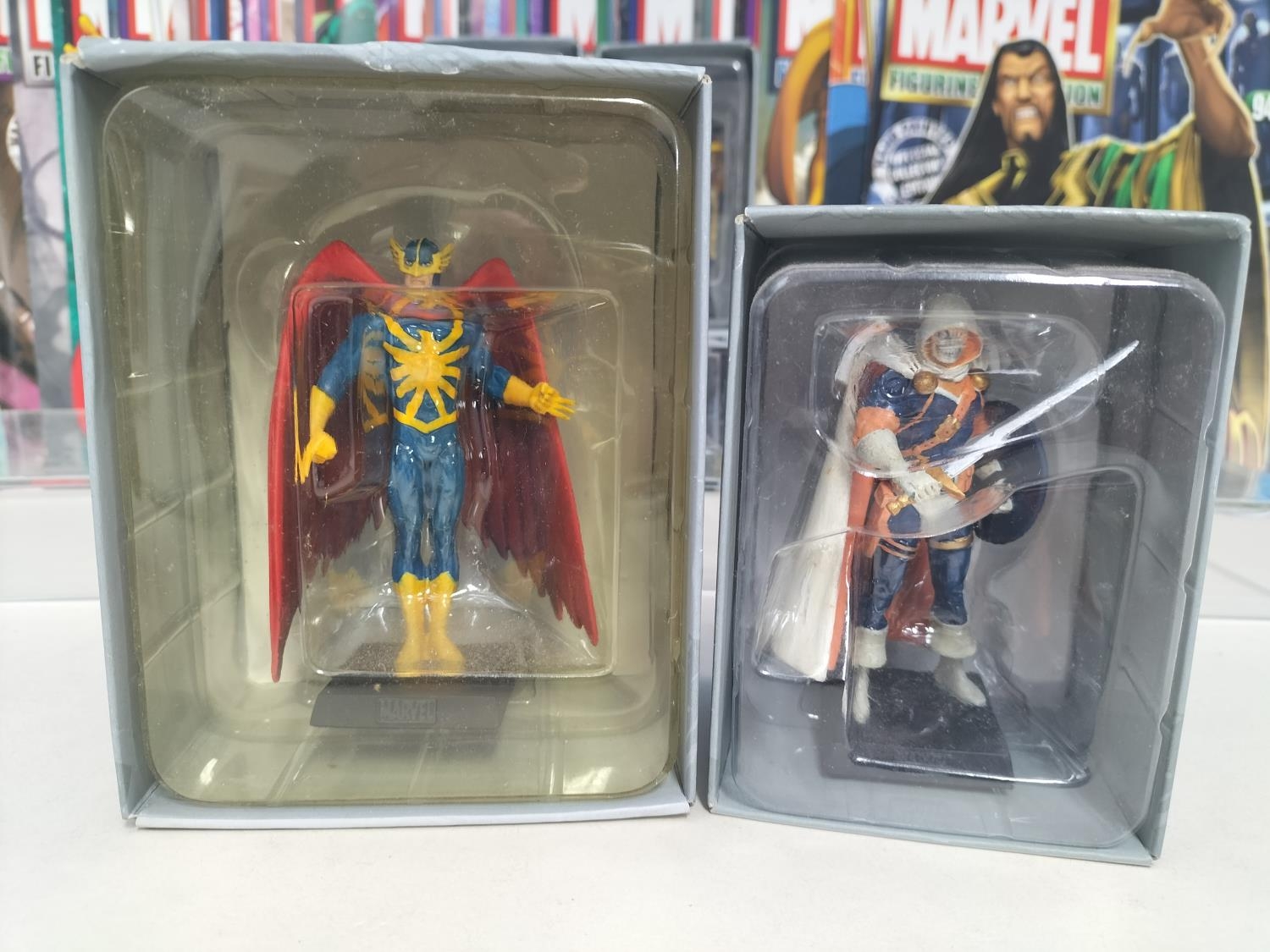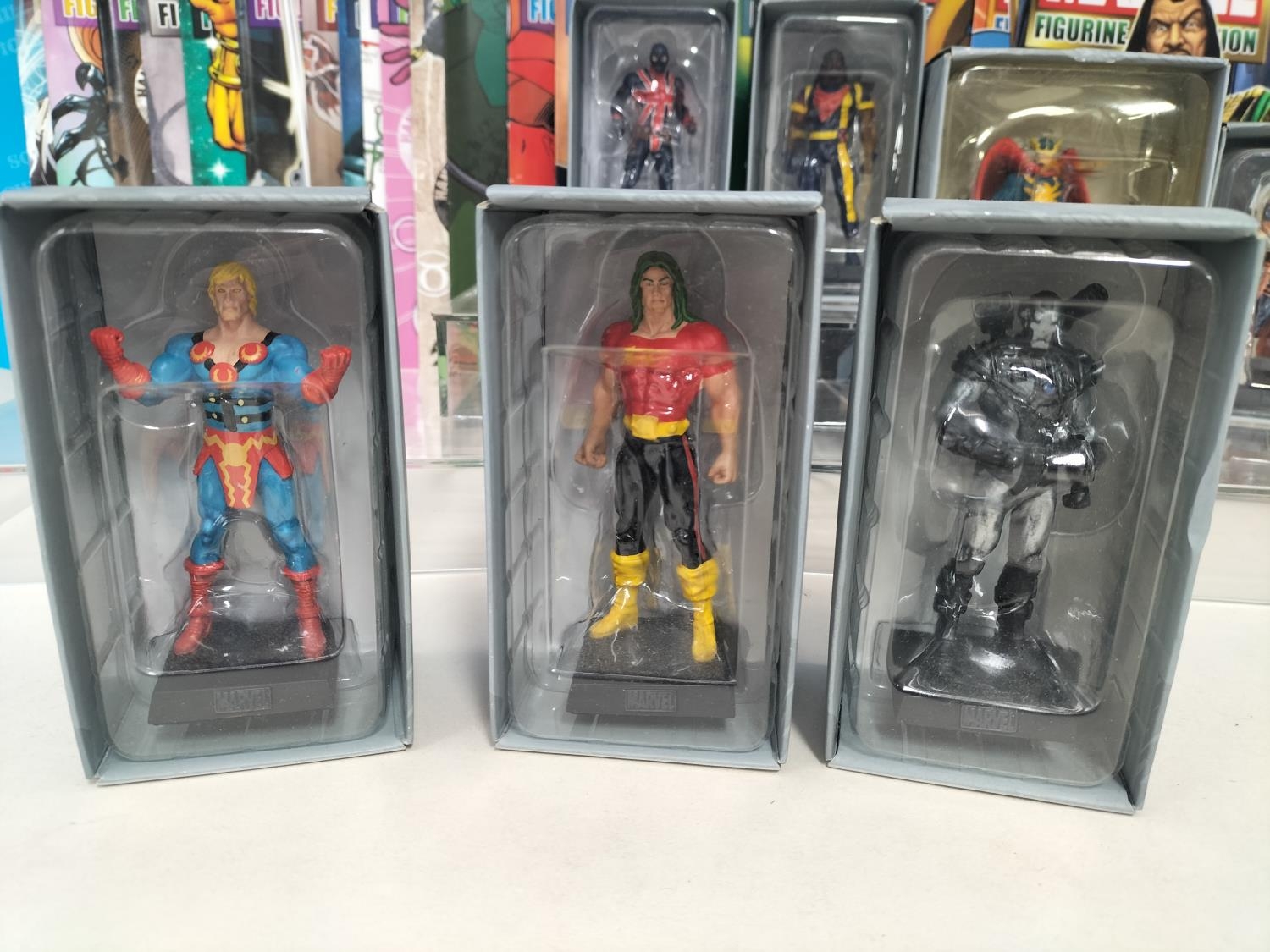 Boxed Eaglemoss The Marvel Classic Figurine Collection 2009 Figures (25) with Magazines to include Valkyrie, Night Hawk, Gladiator, Mandarin, Man-Wolf, Shang-Chi, Hobgoblin, Banshee, Taskmaster, Machine Man, Black Knight, Morbius, Viper, Doc Sampson, Union Jack, Warlock, Ikaris, Baron Zemo, War Machine, Madrox, Shocker, Blink, Hellcat, Bishop and Impossible Man.