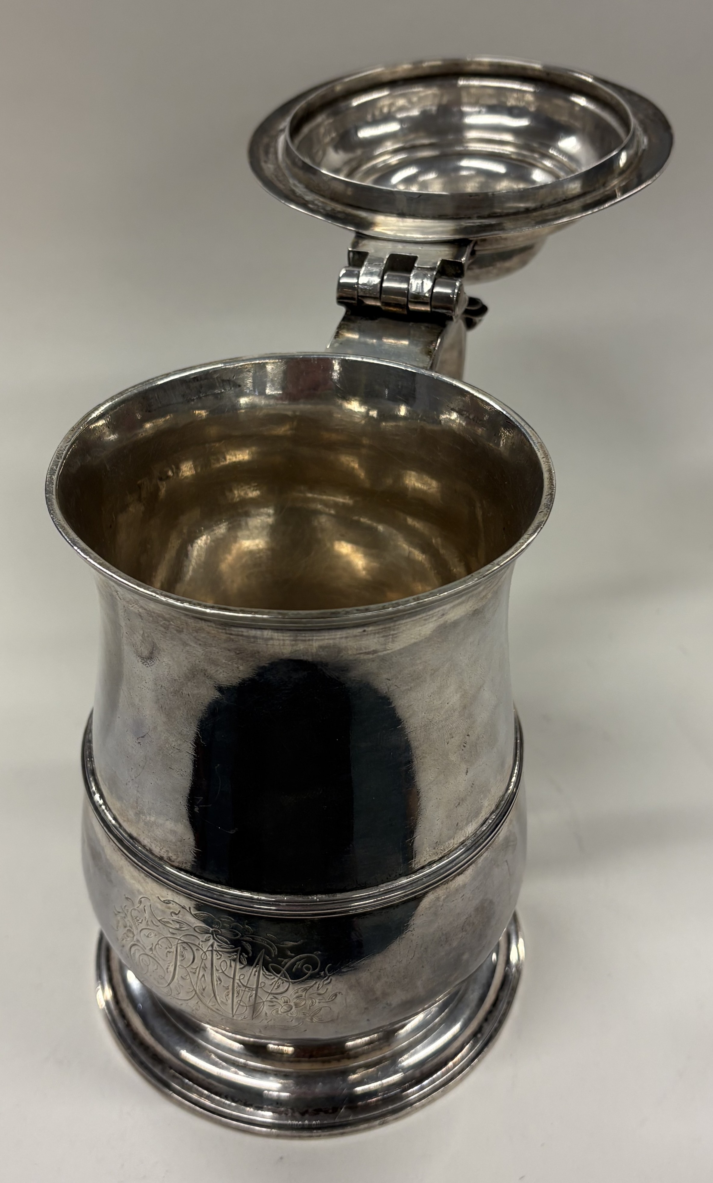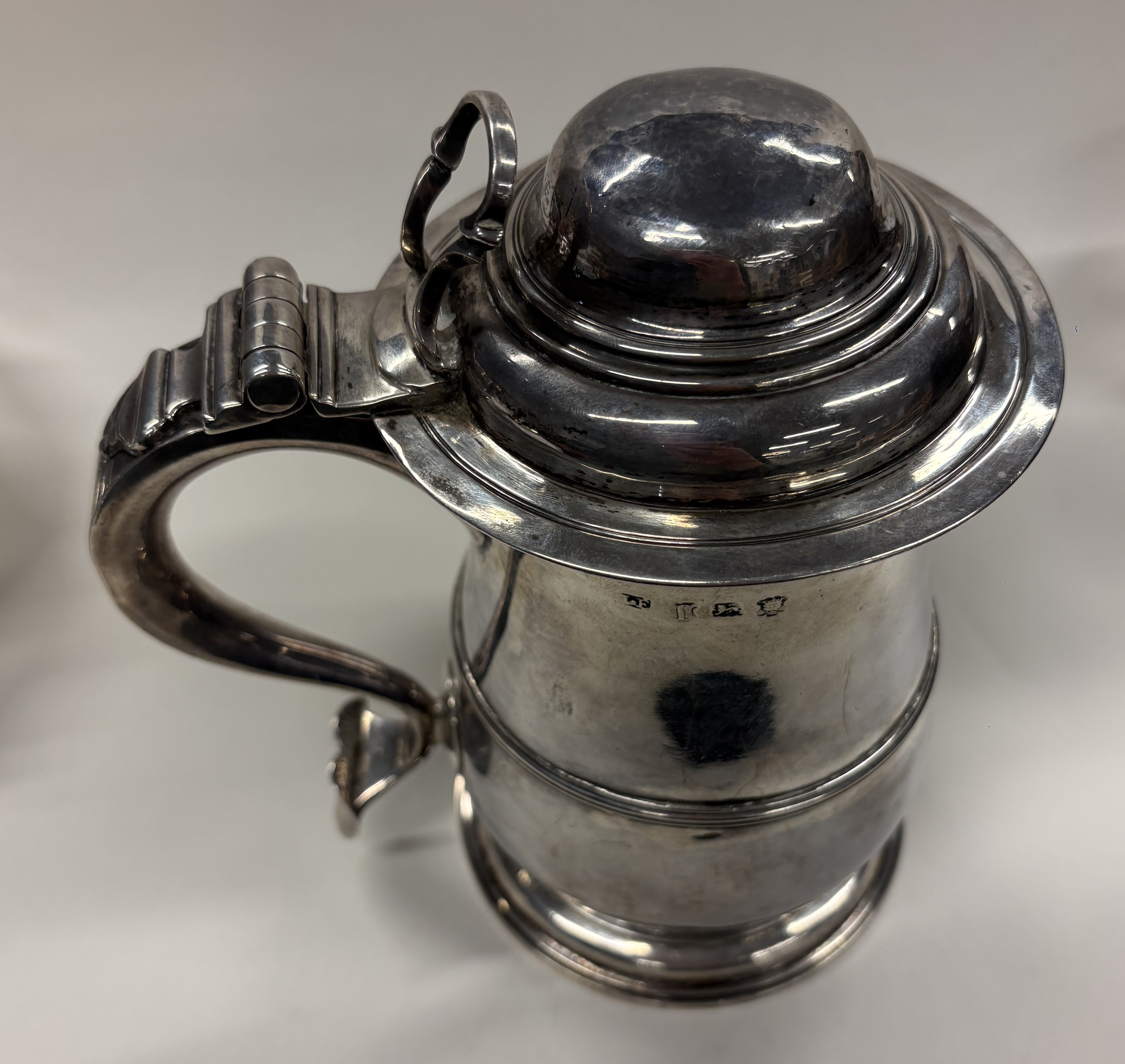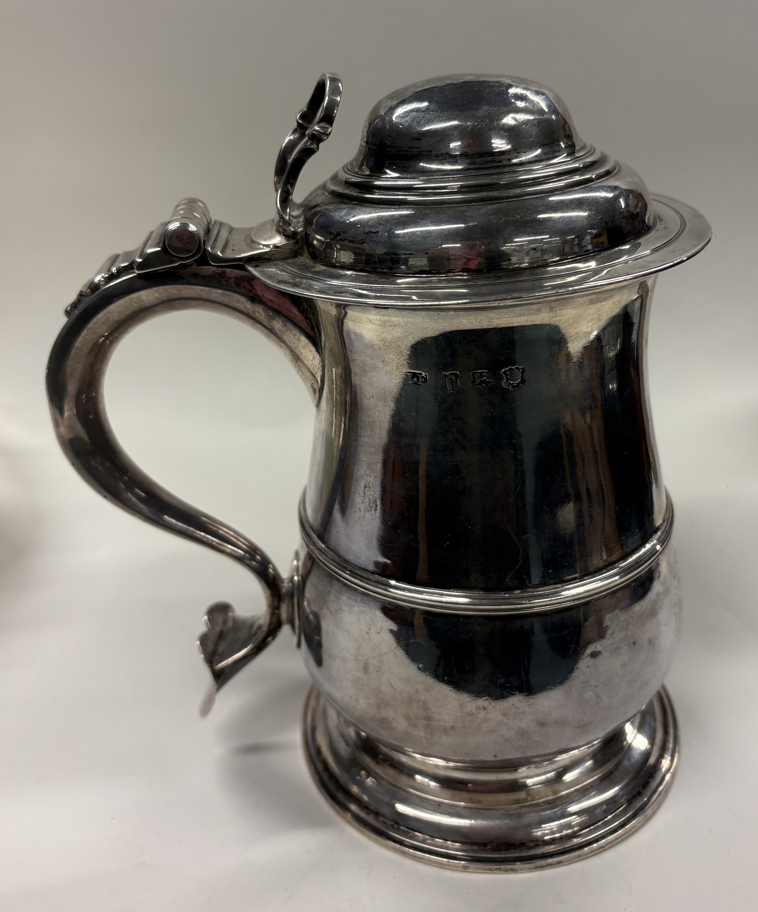 An 18th Century George III silver lidded tankard. London 1753. By John Edwards. Approx. 746 grams. Est. £1500 - £2000.