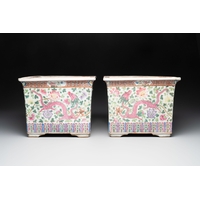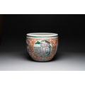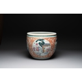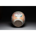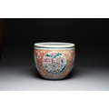 A large Chinese famille rose coral-red-ground fish bowl with...