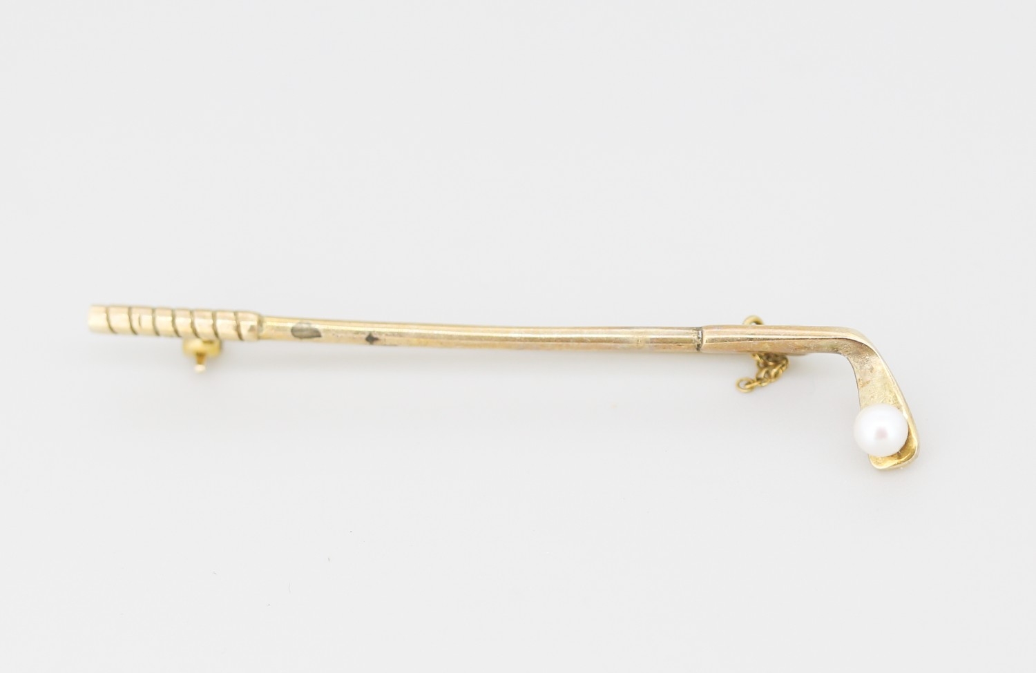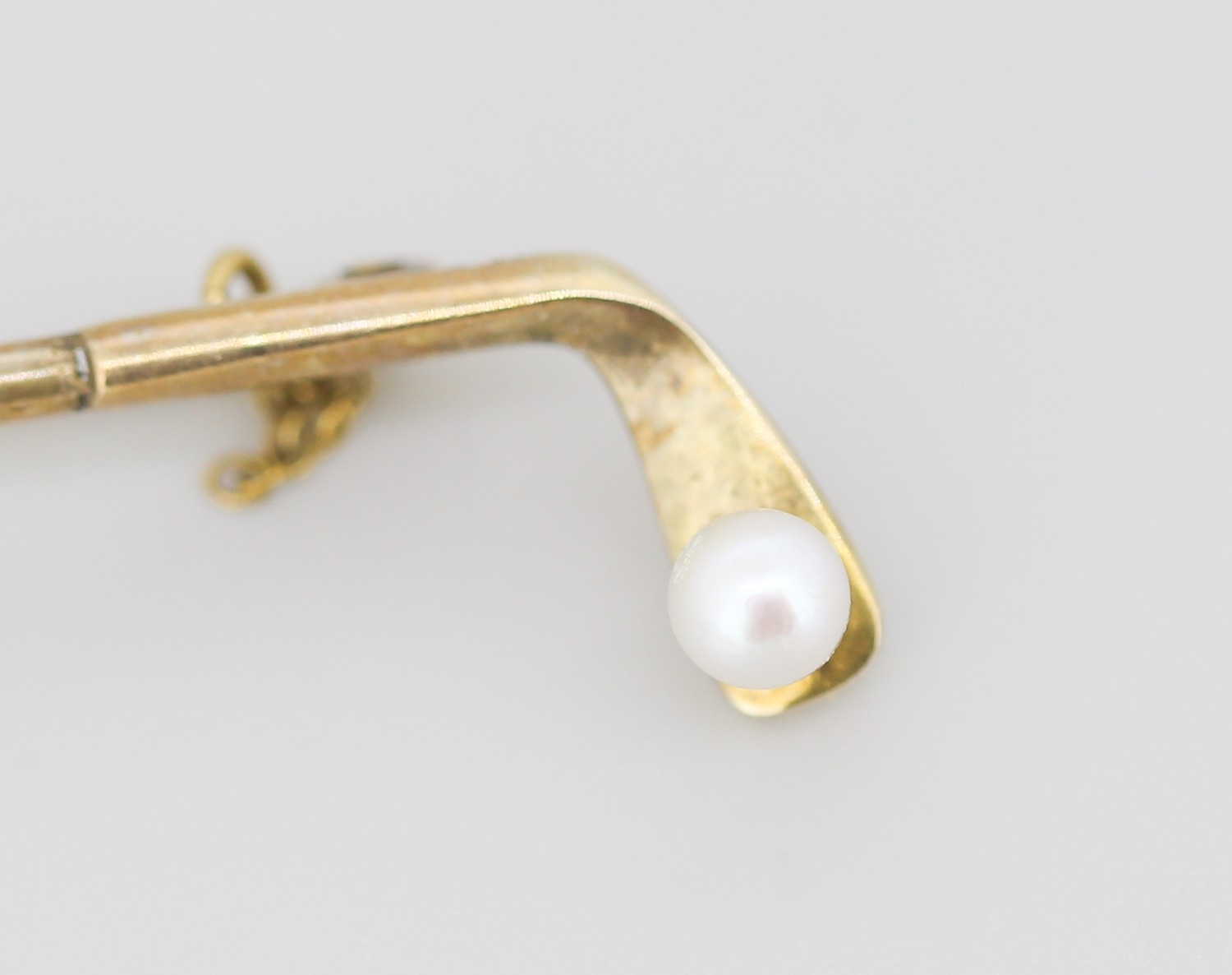 Pearl Set 9 Carat Yellow Gold Golf Club Motif Brooch 6.5cm