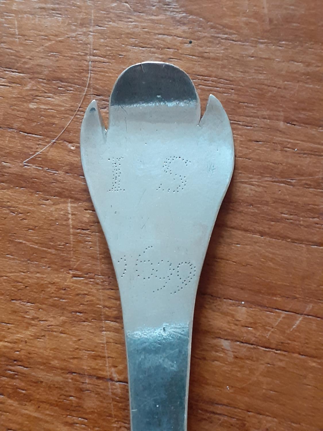 1699 Dated Trefid Spoon stamped IS- Measures 15cm in Length