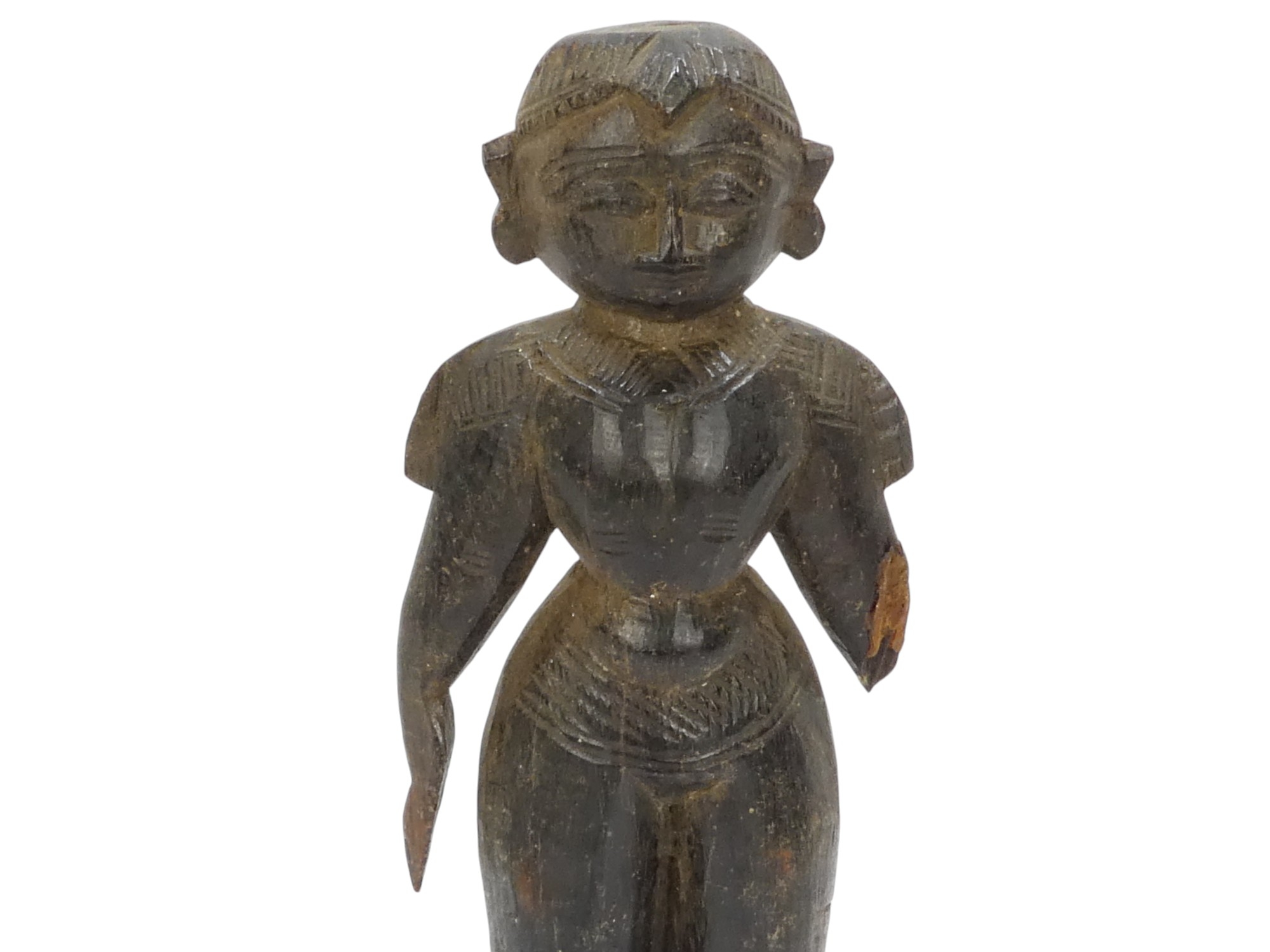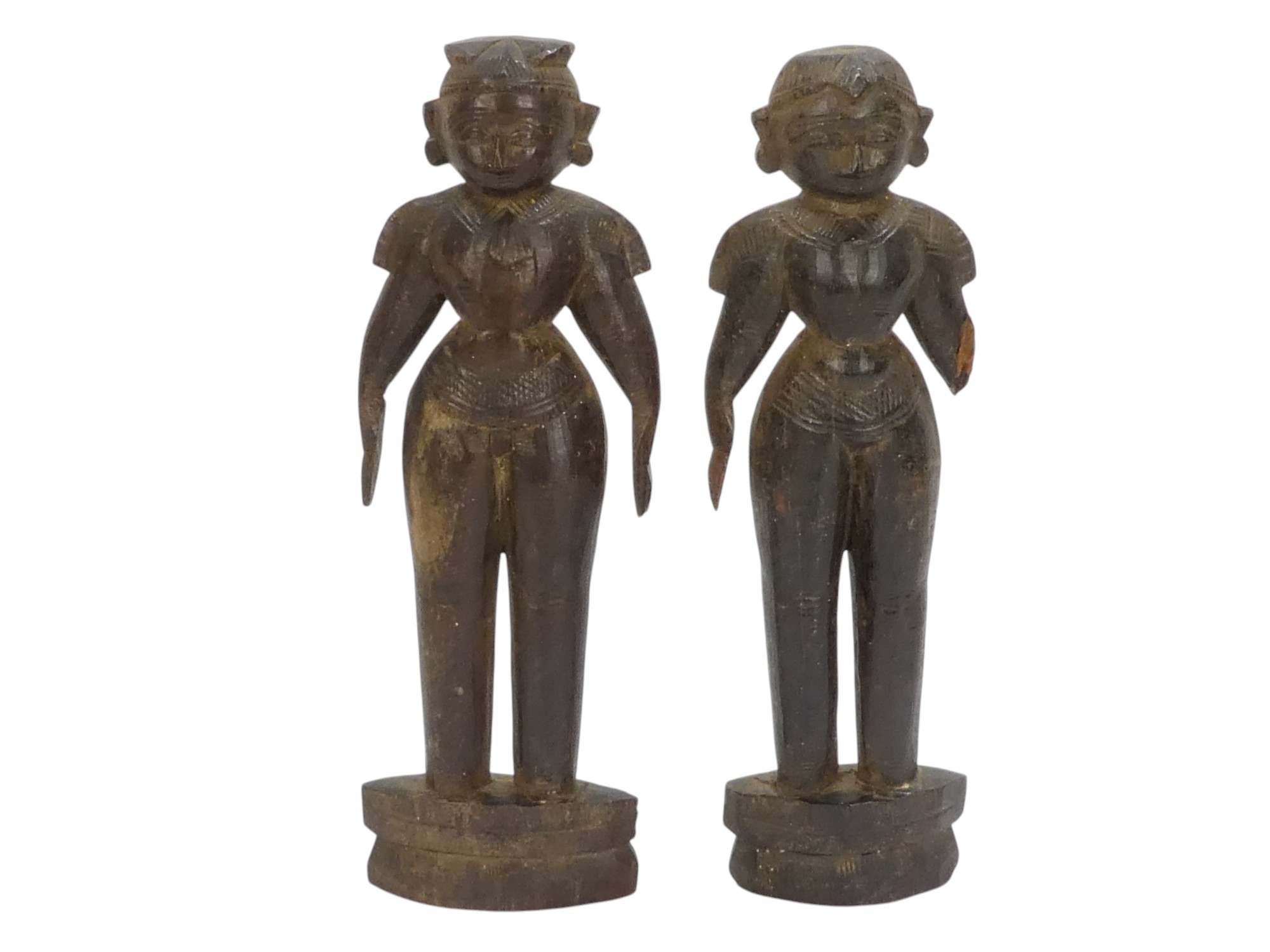 A pair of 19th century African carved hardwood figures - male and female, 23cm high.