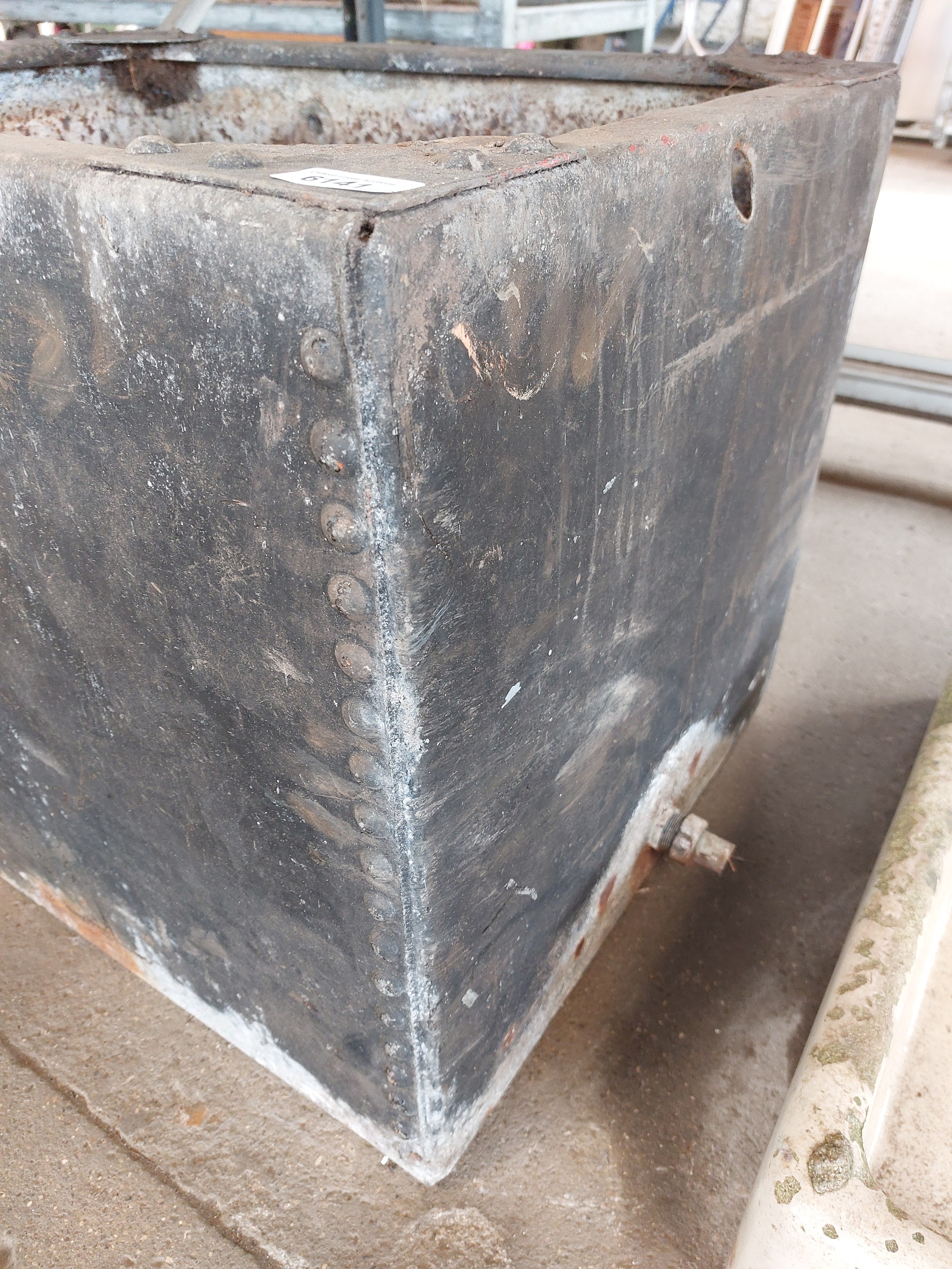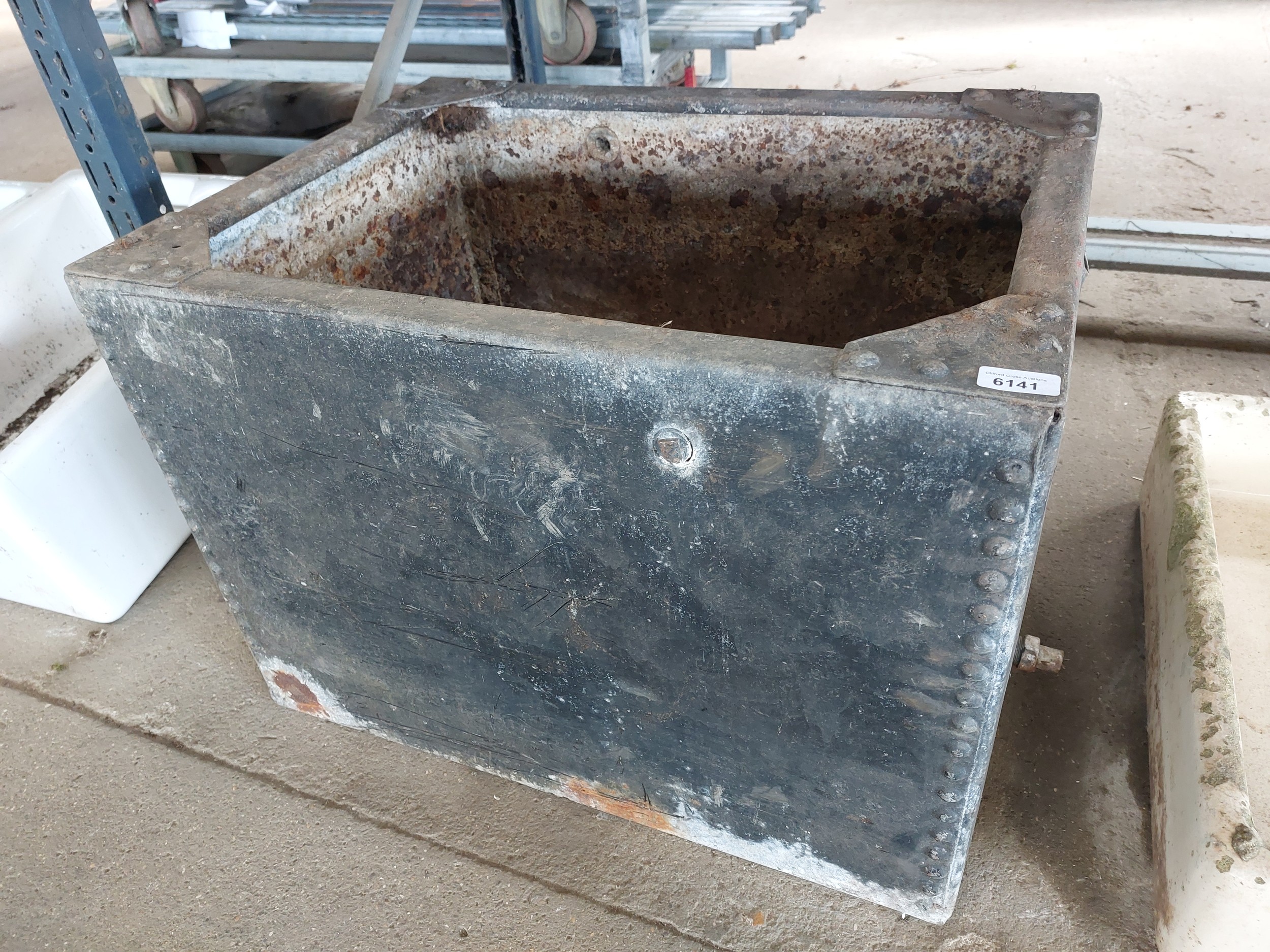 A galvanised water tank - 50cm high x 69cm long x 51cm wide.