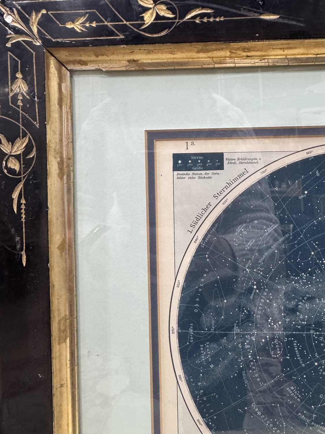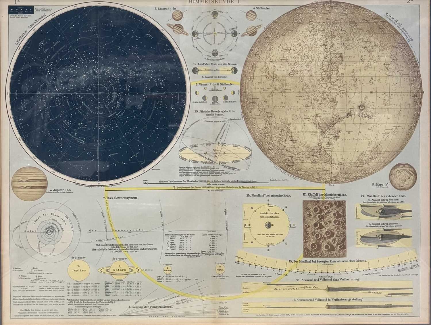 A framed plate from Andrees Allgemeiner Handatlas, 1924, 'Himmelskunde II' (Astronomy II), chromolithograph, 42 by 54cm, black and gilt lacquer frame (1)
