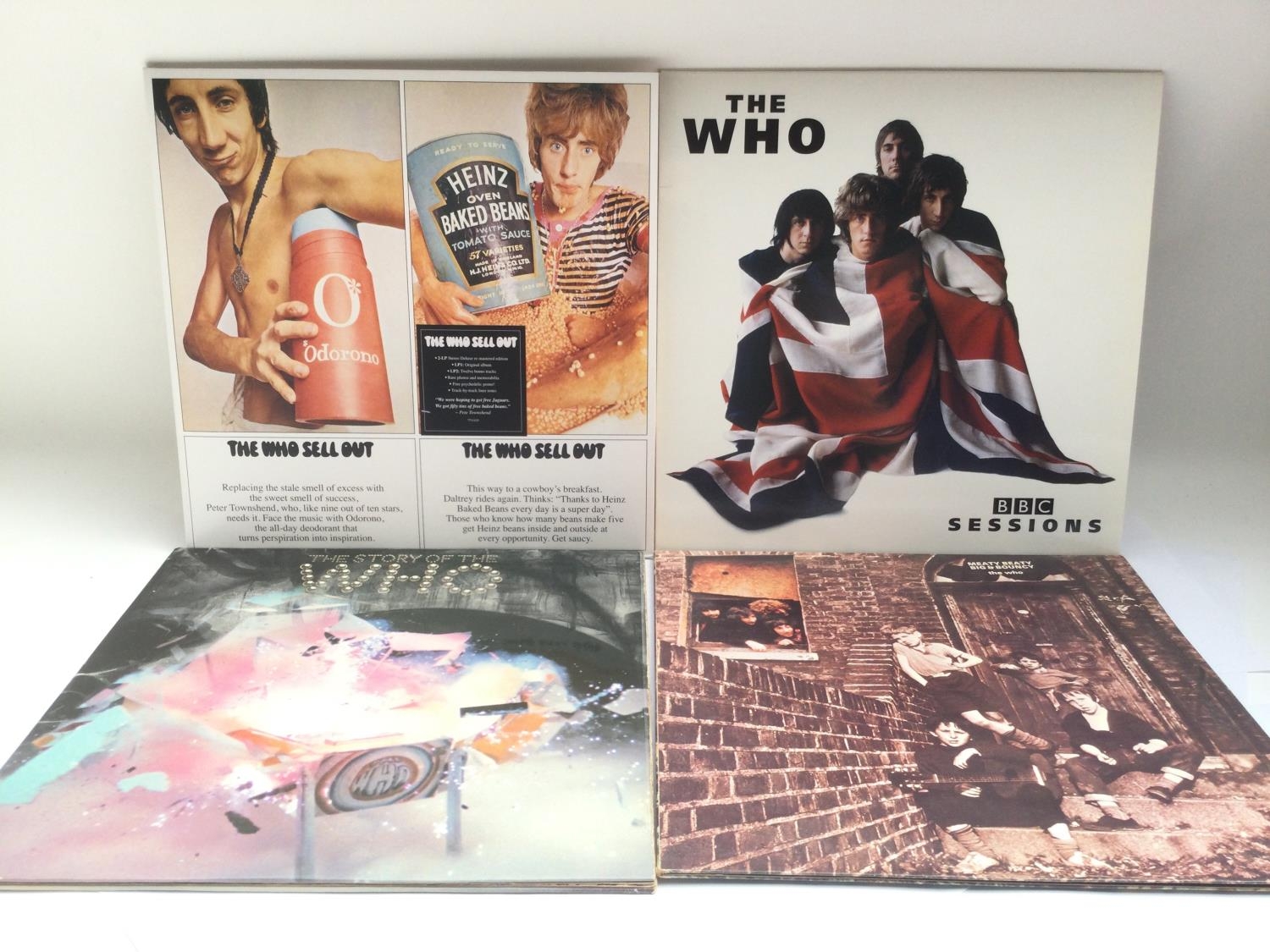 Four LPs by The Who comprising a remastered 2LP 'The Who Sell Out', 'BBC Sessions', 'The Story Of The Who' and 'Meaty, Beaty, Big & Bouncy'.