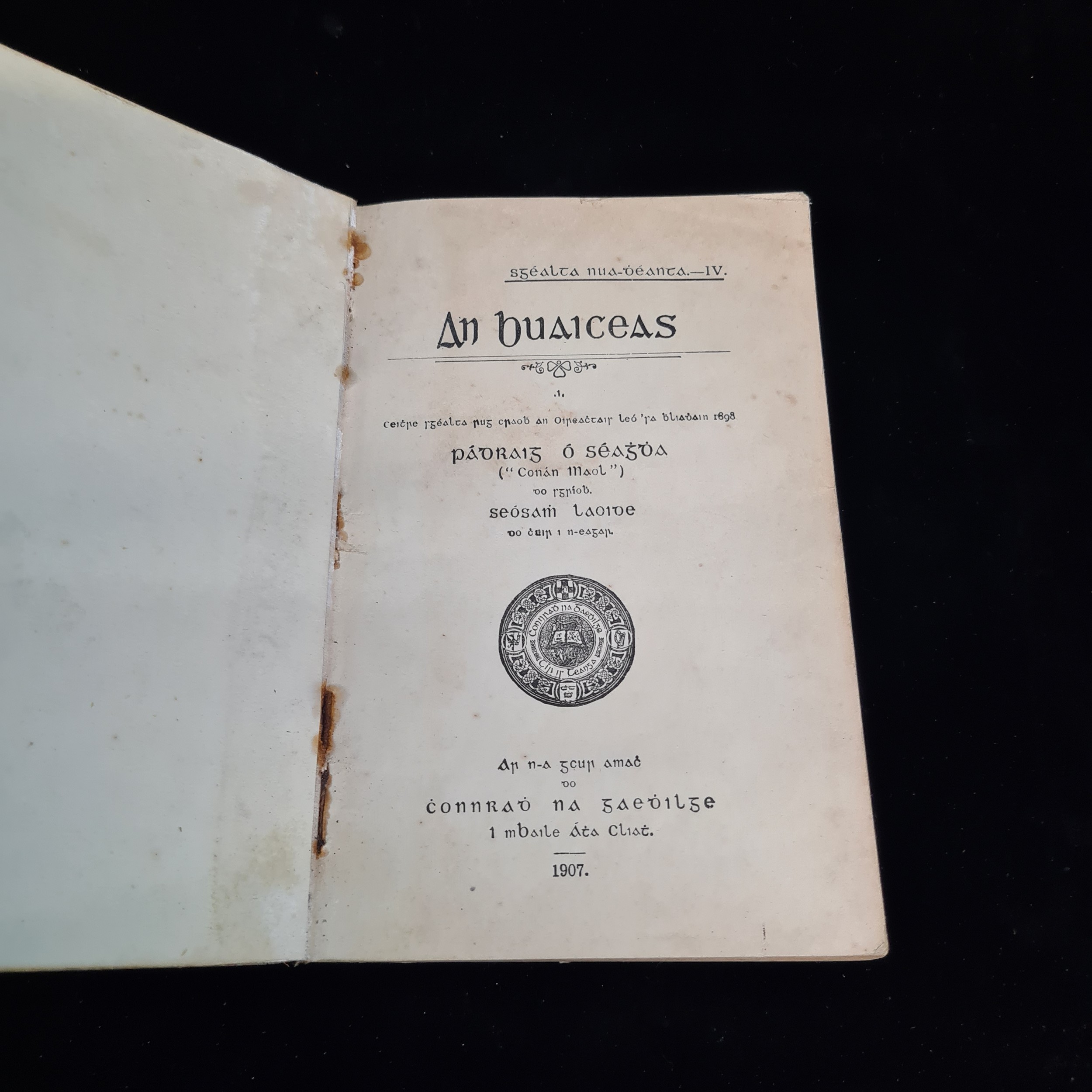 Star Lot: A rare 1907 edition of the Irish language book An Buiceas authored by Padraig O Seaghadha. Published by Conradh Na Gaeilge in Dublin. RRP 125€ via abebooks.com.
