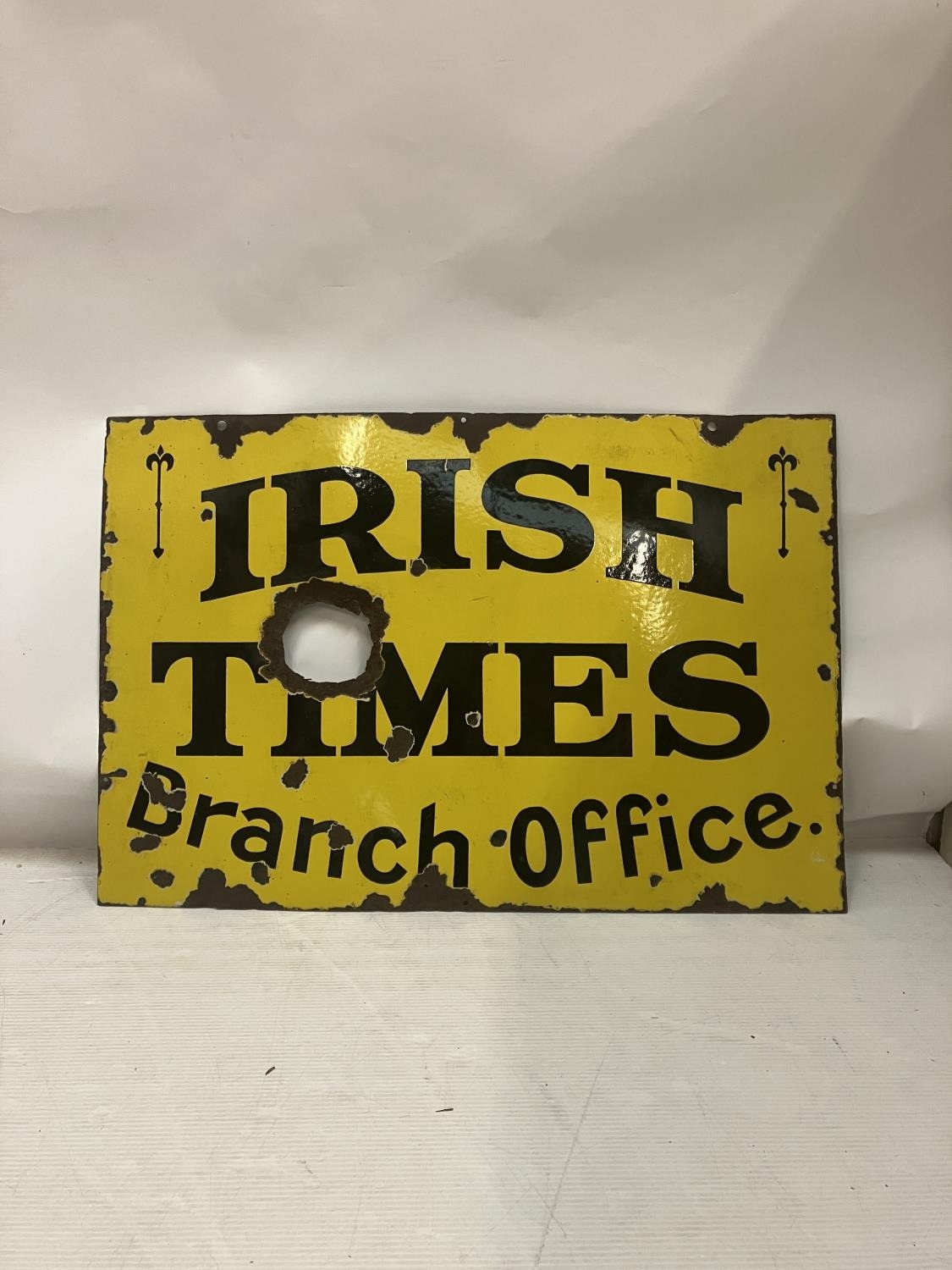 Old Irish Times metal branch office wall sign. 60cm x 92cm.
