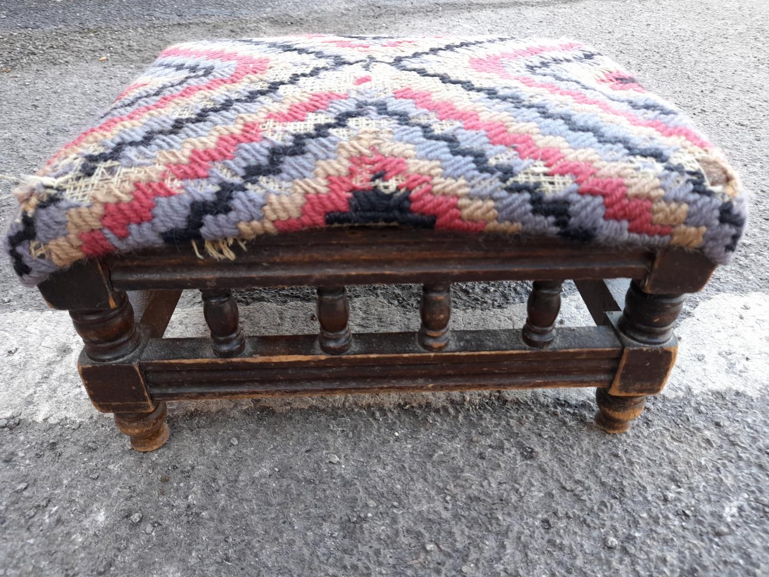 Small Victorian Dark Oak Footstool. 15cm High, 30cm x 25cm.