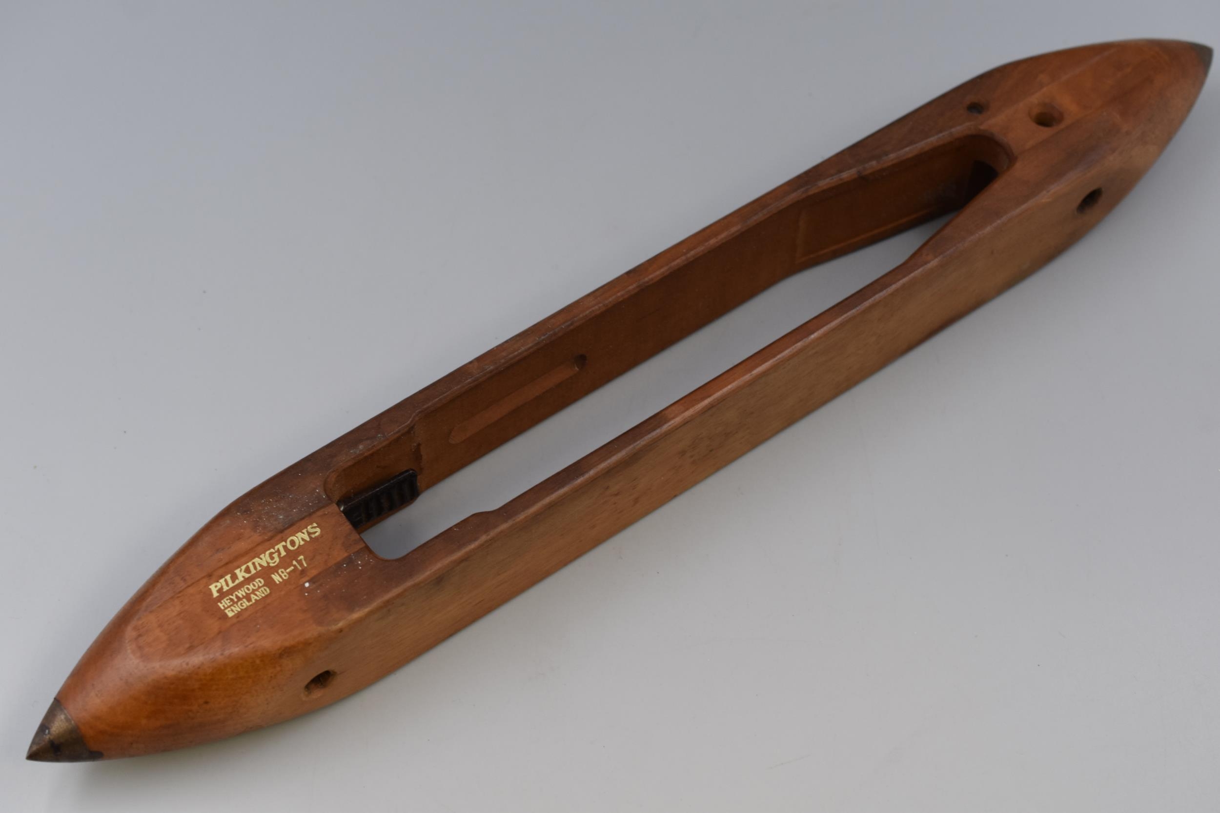 Vintage Wooden Weaving Shuttle Marked ' Pilkingtons of Heywood, N8-17 approx 20" in Length
