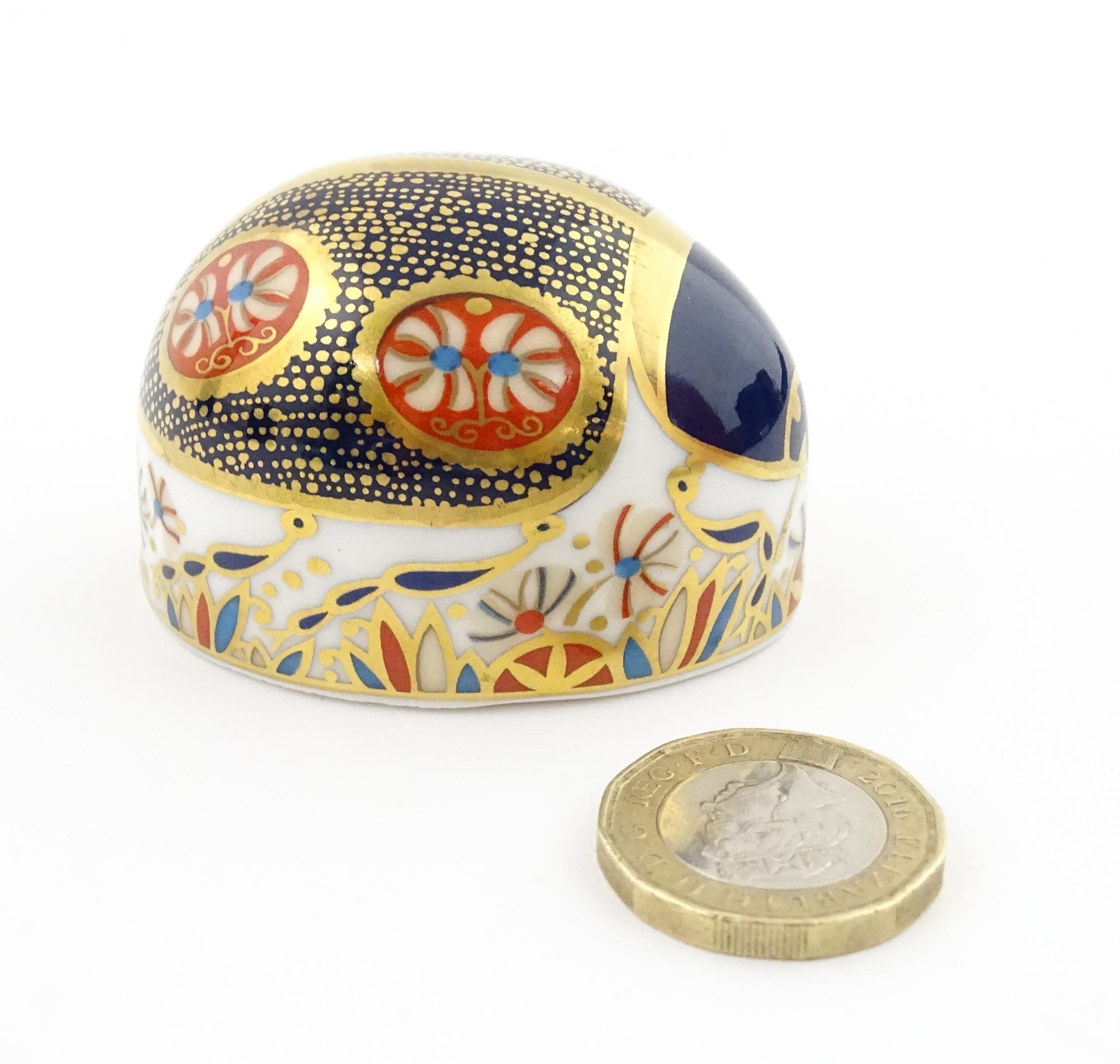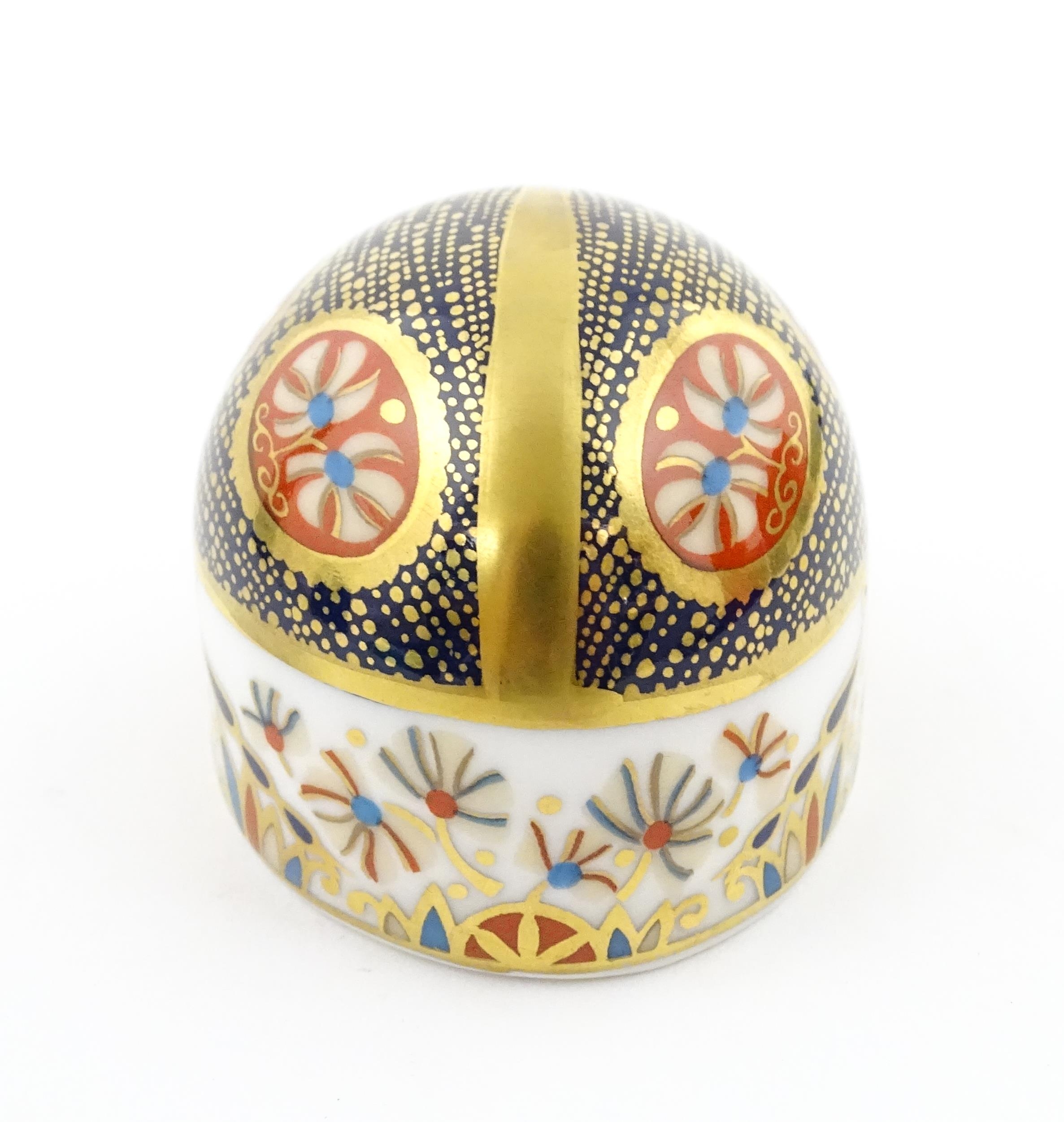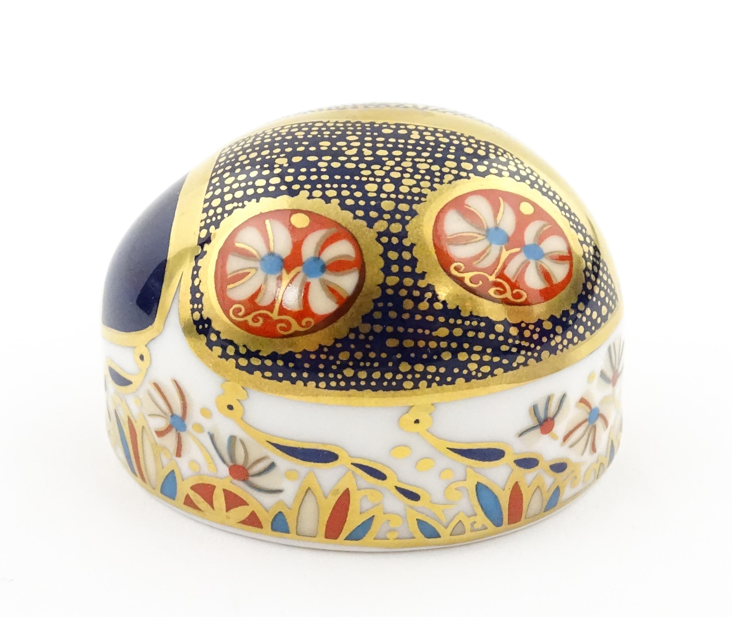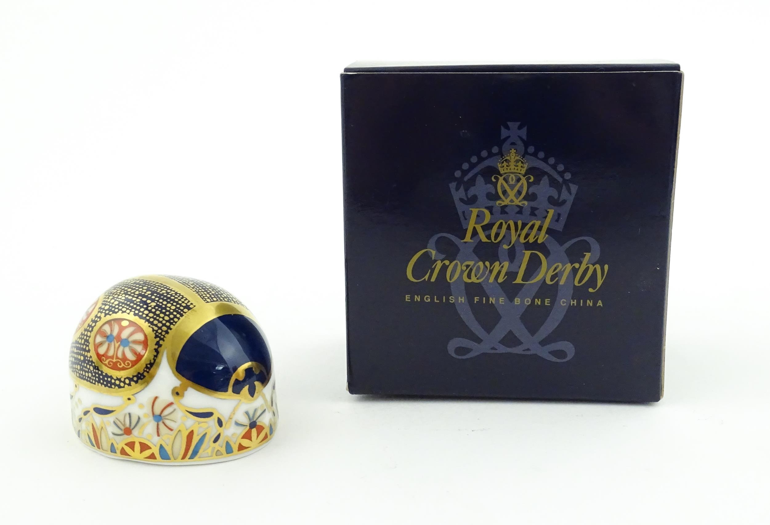 A Royal Crown Derby paperweight modelled as a Blue Ladybird. Boxed. Approx. 1 1/2" high