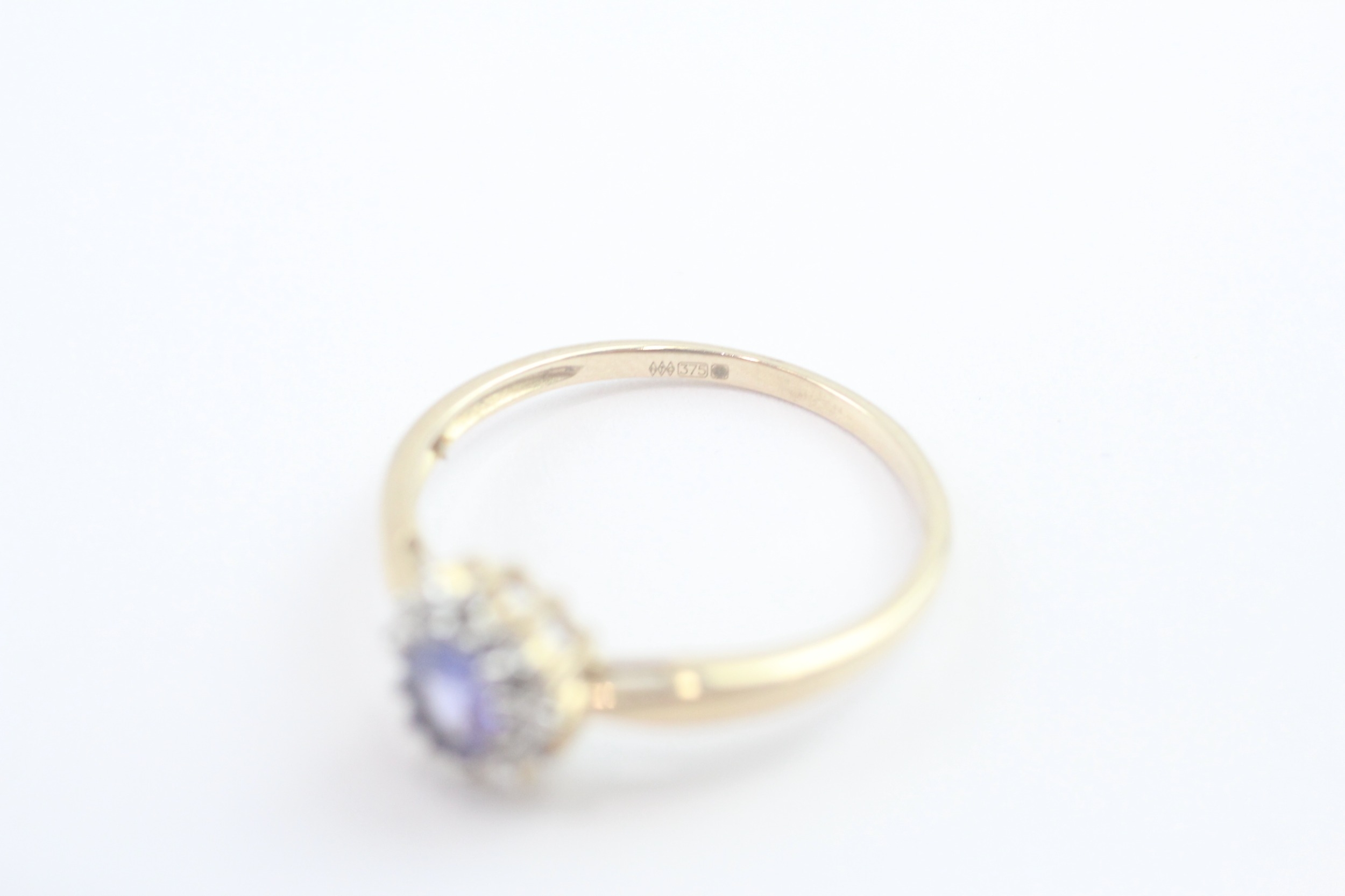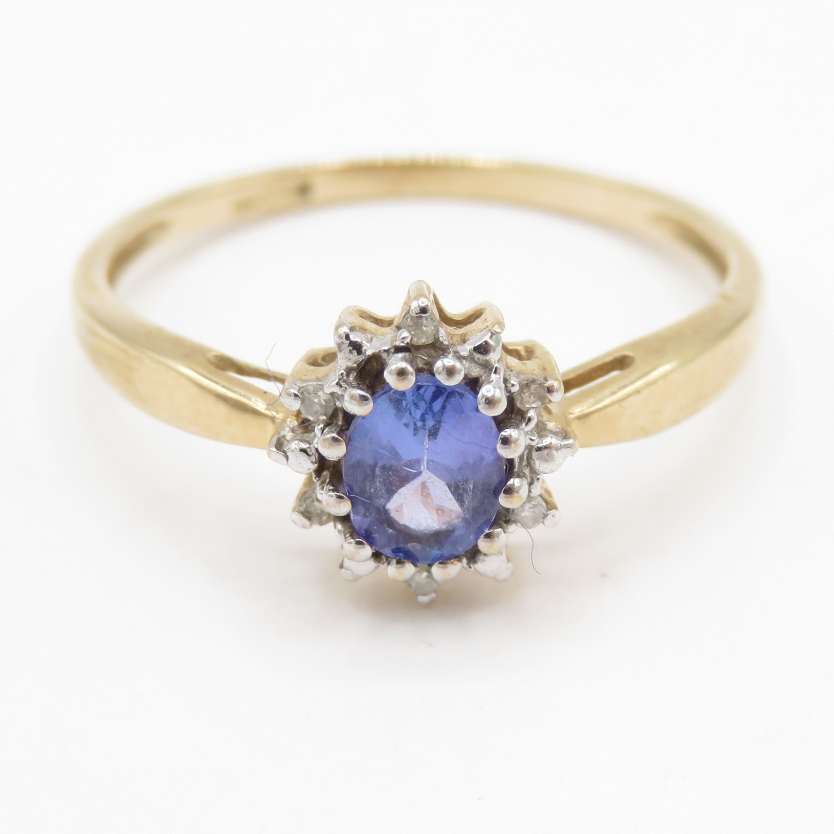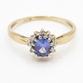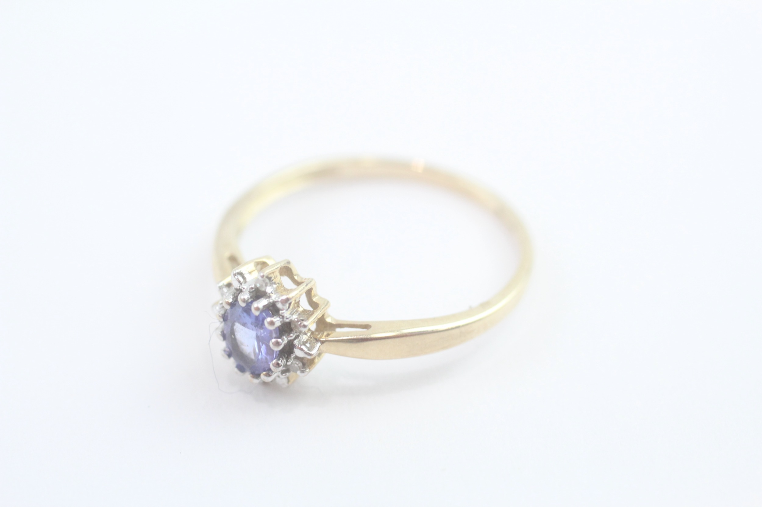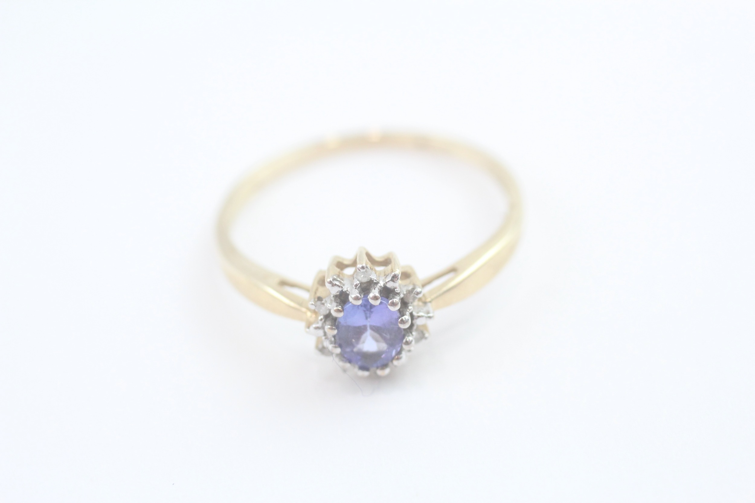 9ct gold diamond and tanzanite cluster ring (1.7g) Size O 1/2