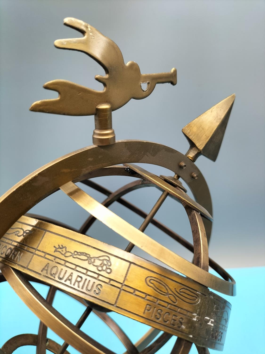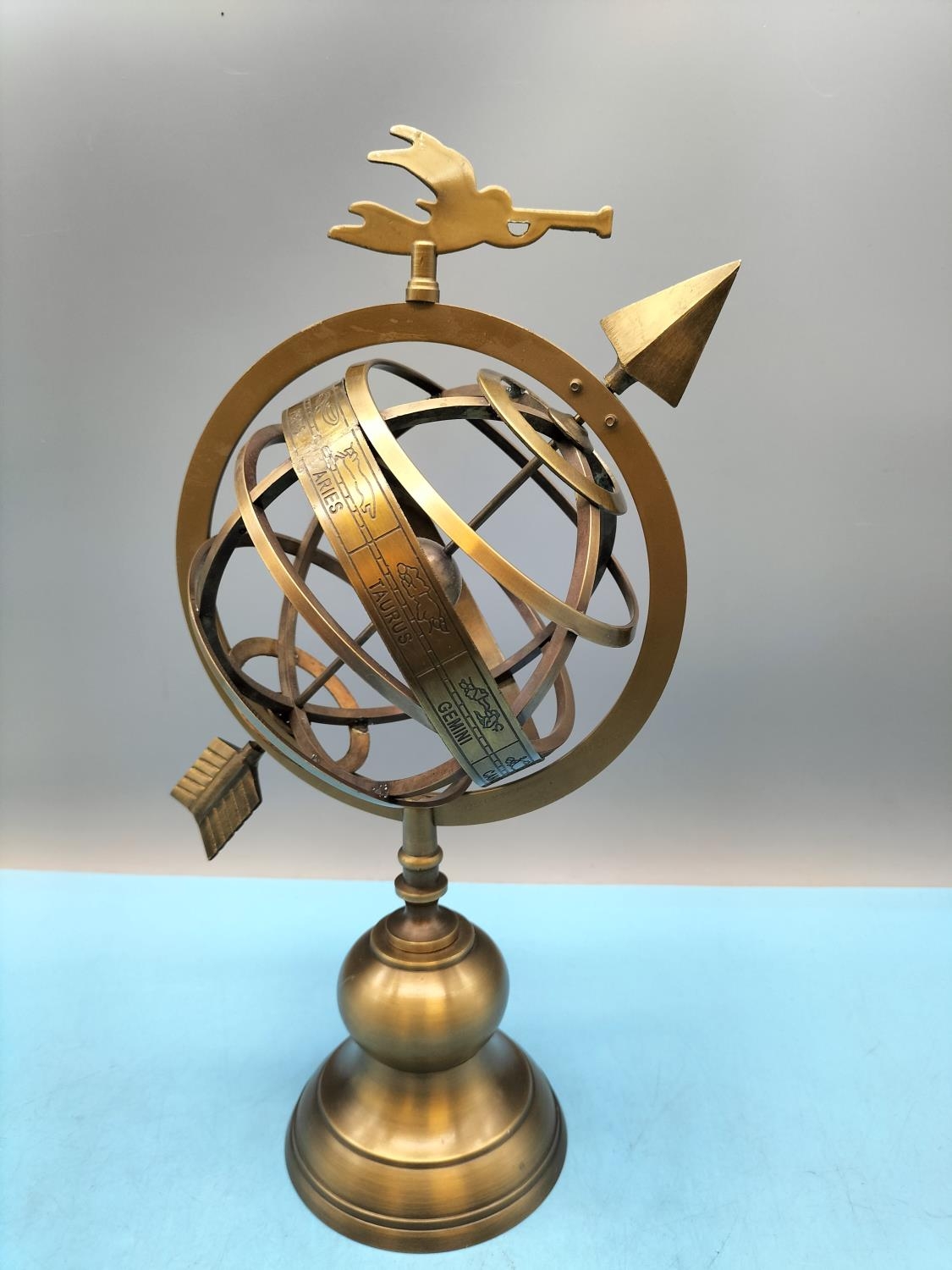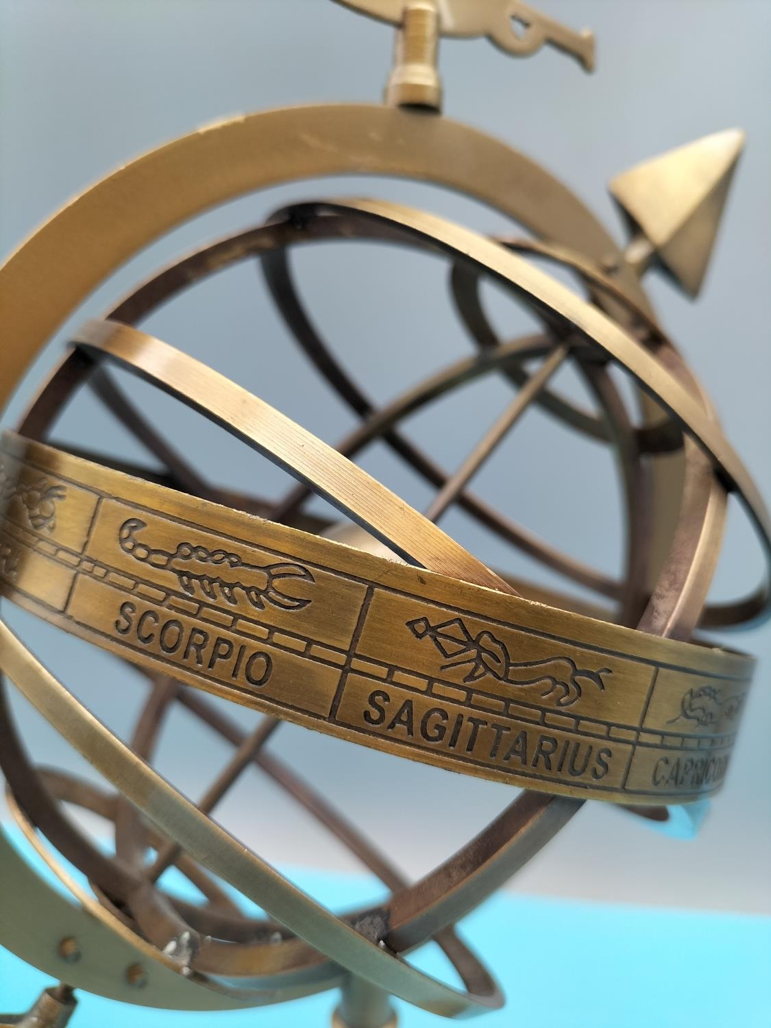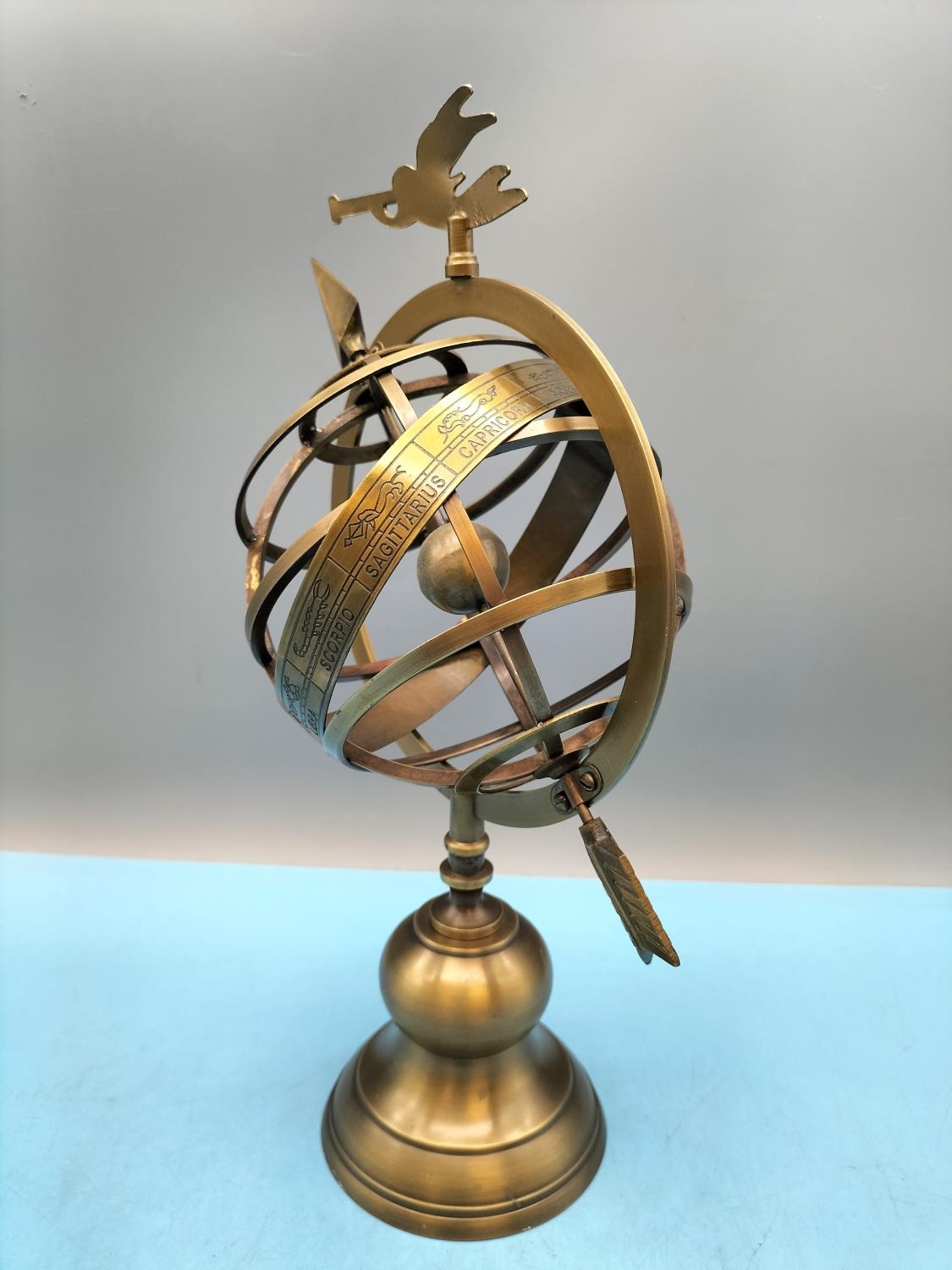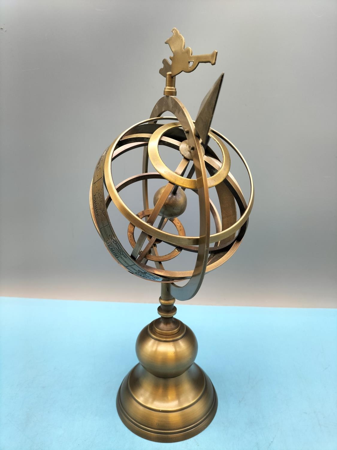 Brass Zodiac Armillary Sphere. 34cm Tall.