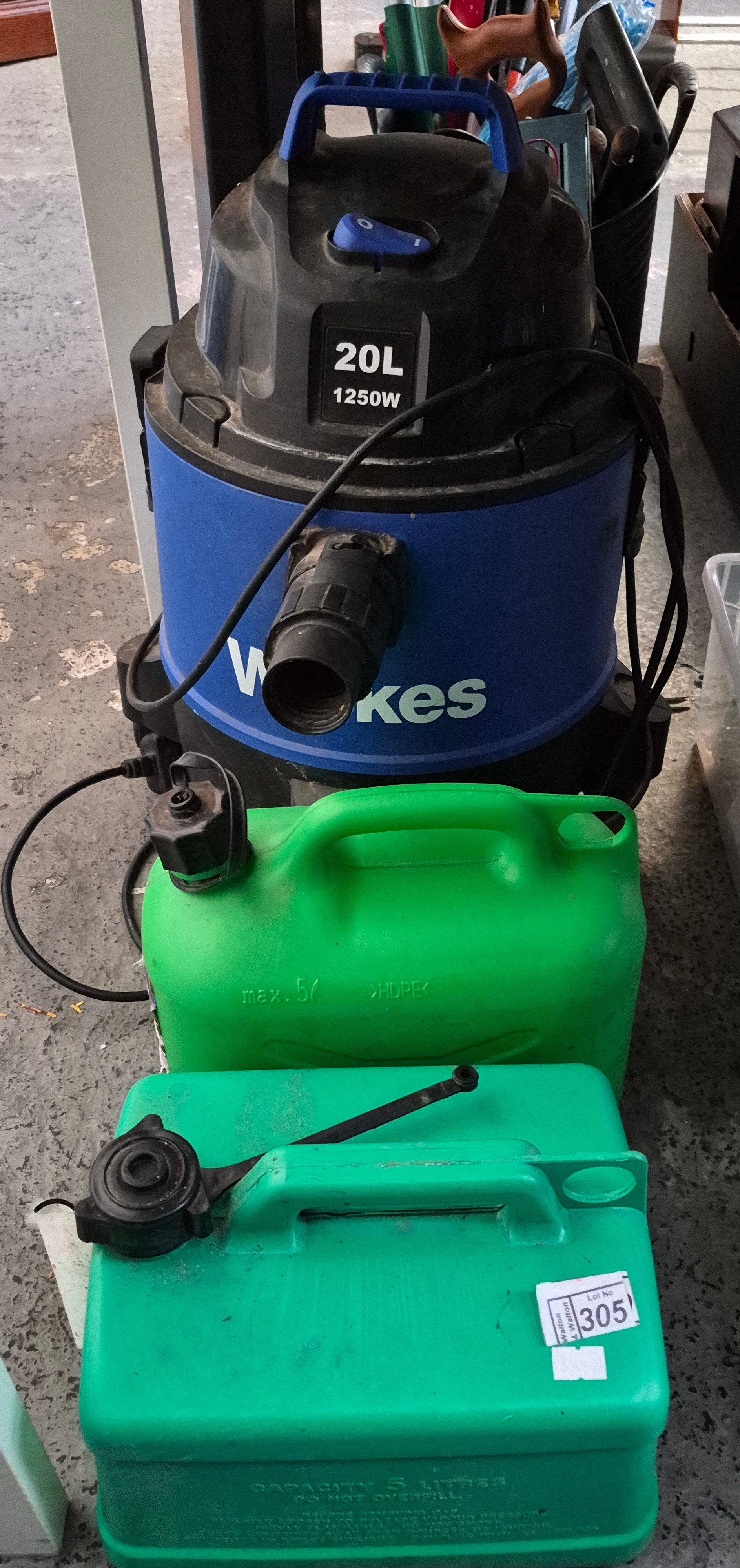 Wickes 20L vacuum and 2 jerry cans