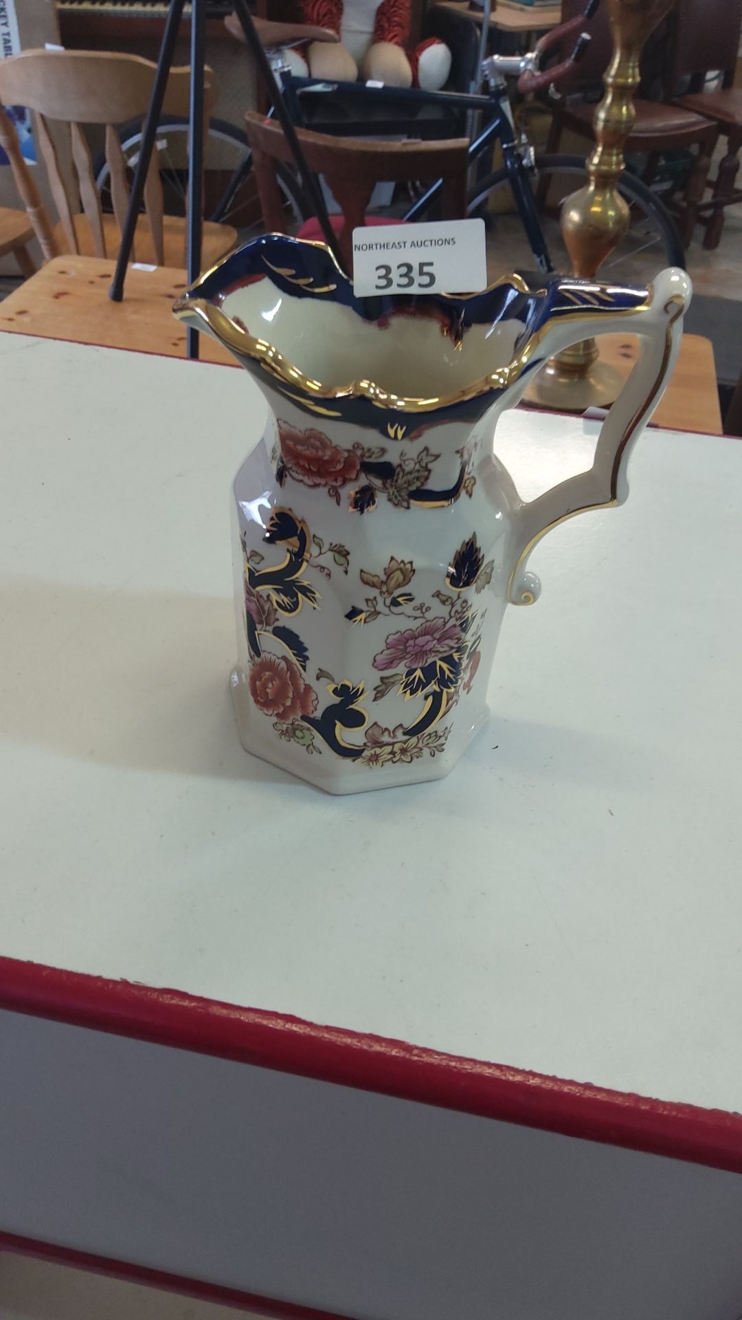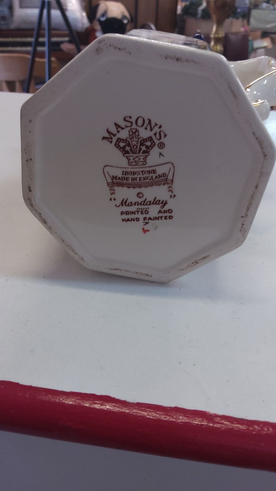 Mason's "Mandalay" Ironstone pitcher features a hand-painted floral design and was made in England.