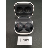PAIR OF SAMSUNG EARBUDS in charging case, model SM-R190