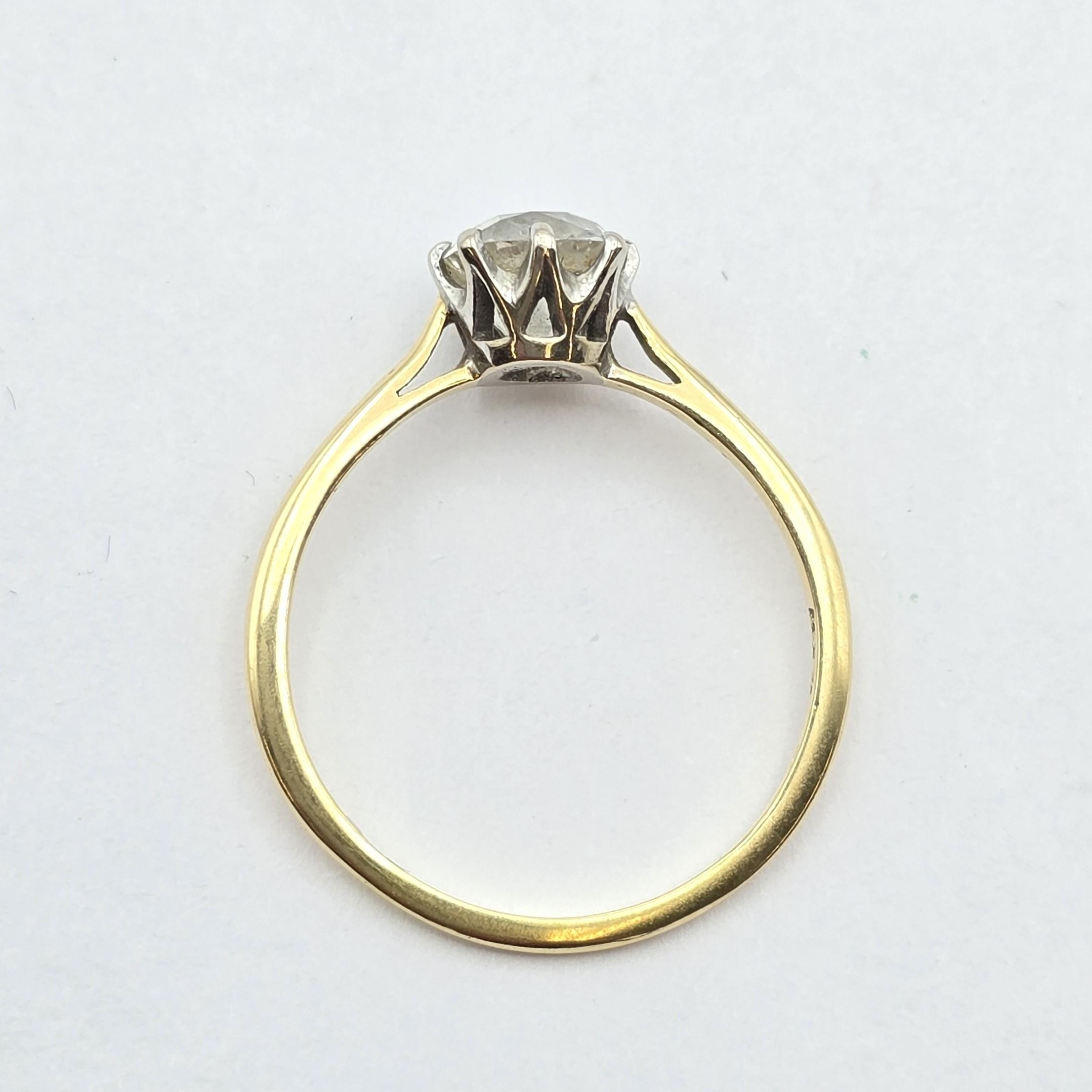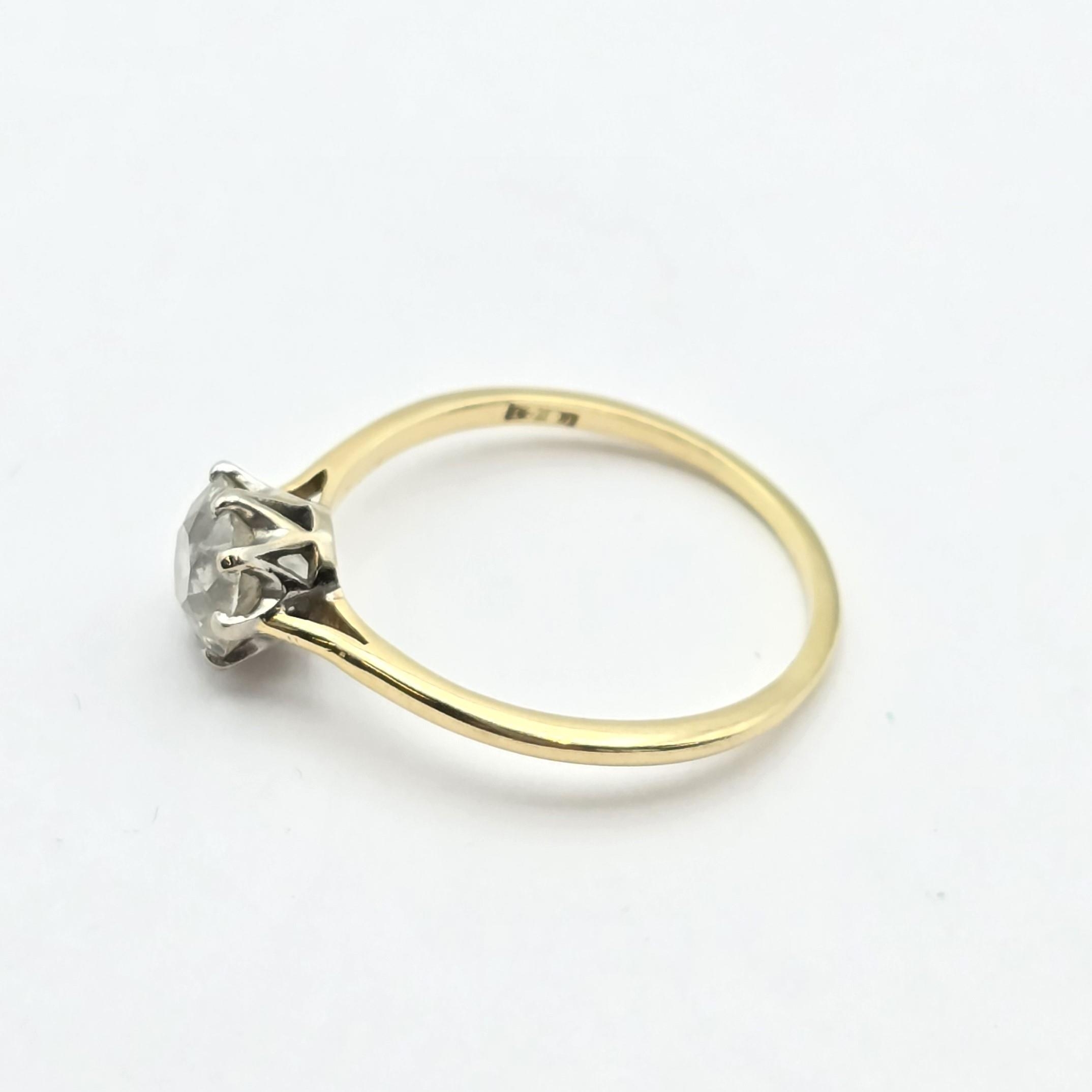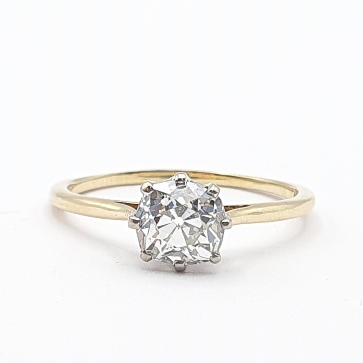 A Diamond Solitaire Ring, claw-set cushion-cut diamond in white metal mount on yellow metal shank stamped 18ct, diamond approximately 1ct, ring size P, 2.2gms