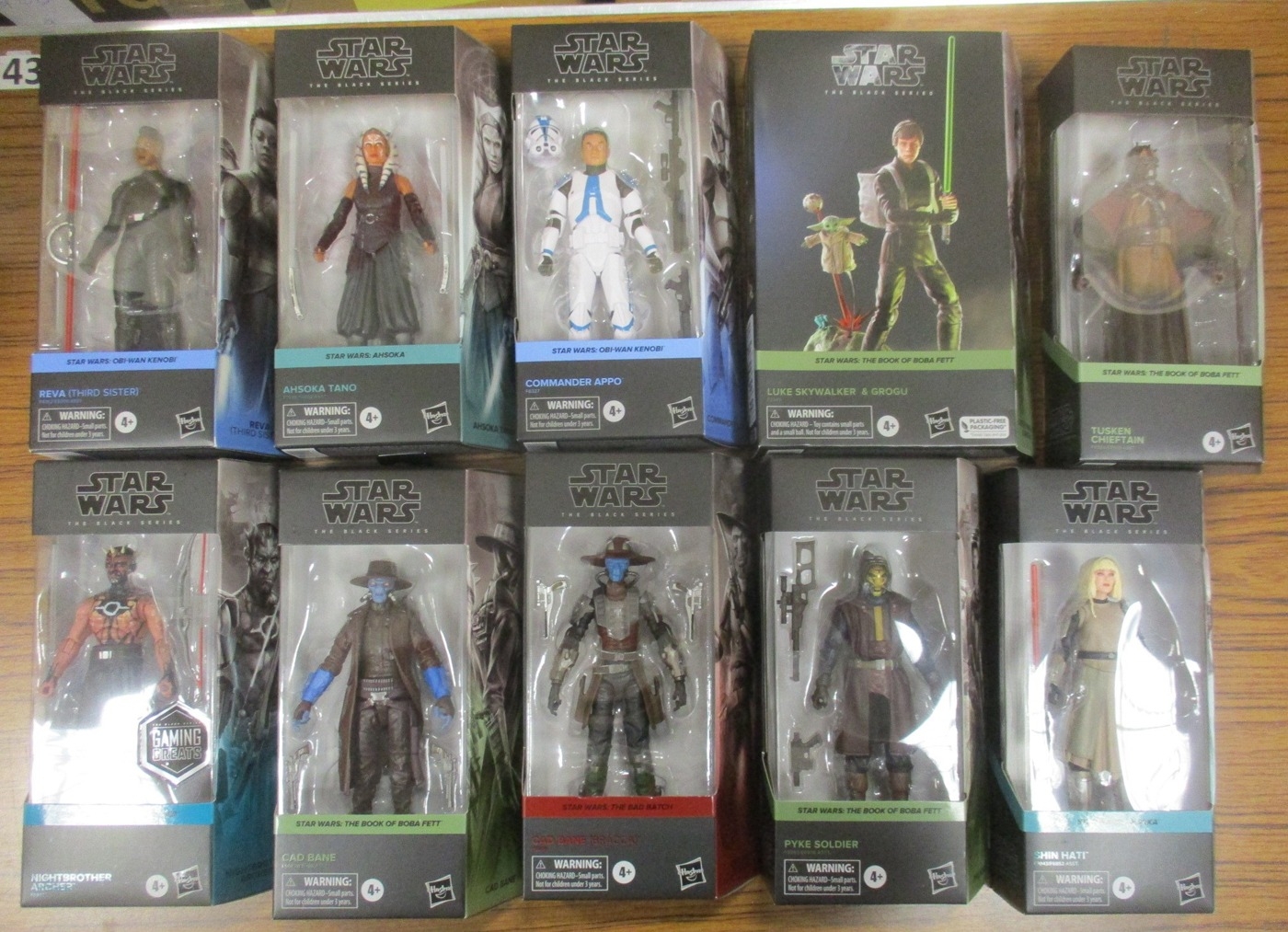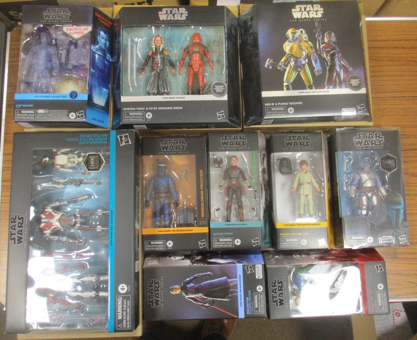 Star Wars. Hasbro. Collection of The Black Series figures, generally mint in near mint boxes, includes ranges of Gaming Greats, Obi-Wan Kenobi, Ahsoka, Book of Boba Fett, etc. Qty 20 (B)