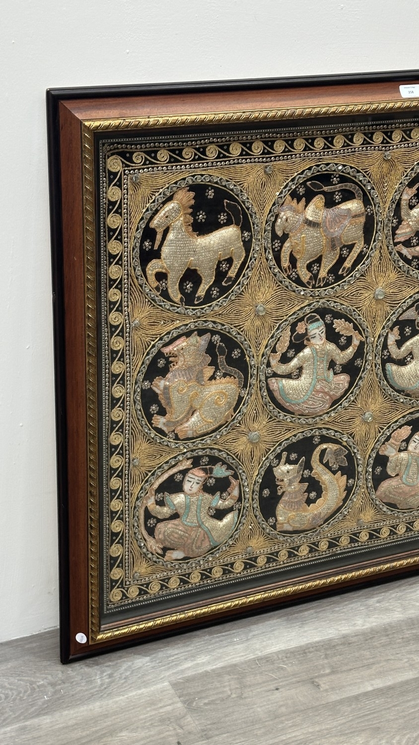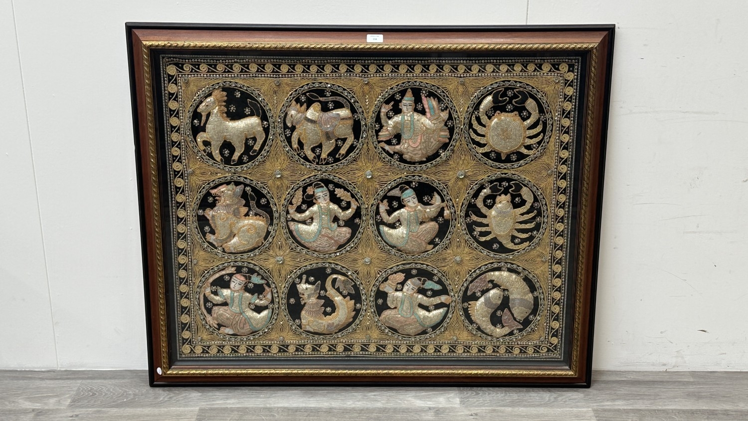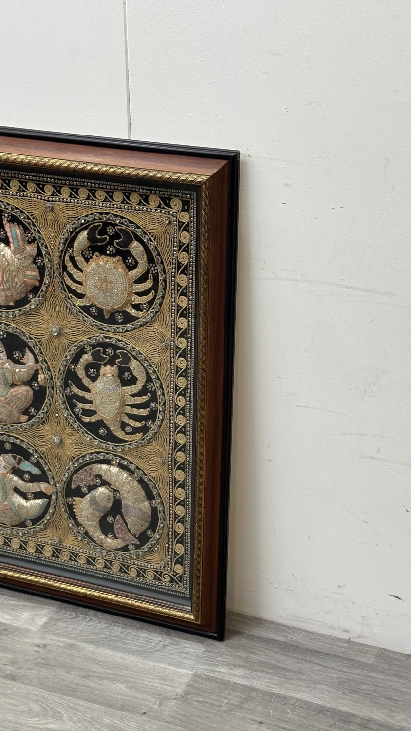 A framed Asian kalaga tapestry - approx. 95cm high x 116cm wide