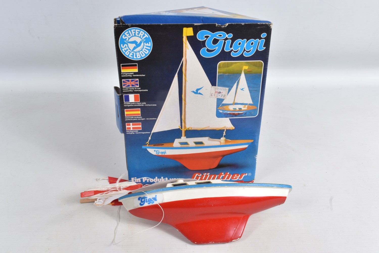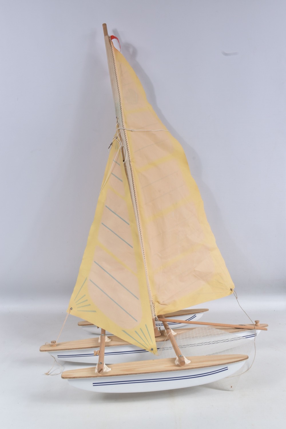 A STAR ENDEAVOUR III HOLLOW POND YACHT, Mk. 3, white hull, blue sails, star decal, with box, together with a boxed Seifert Segelboote Giggi Günther small boat, no. 1802, a boxed Helko Trimarans catamaran 383