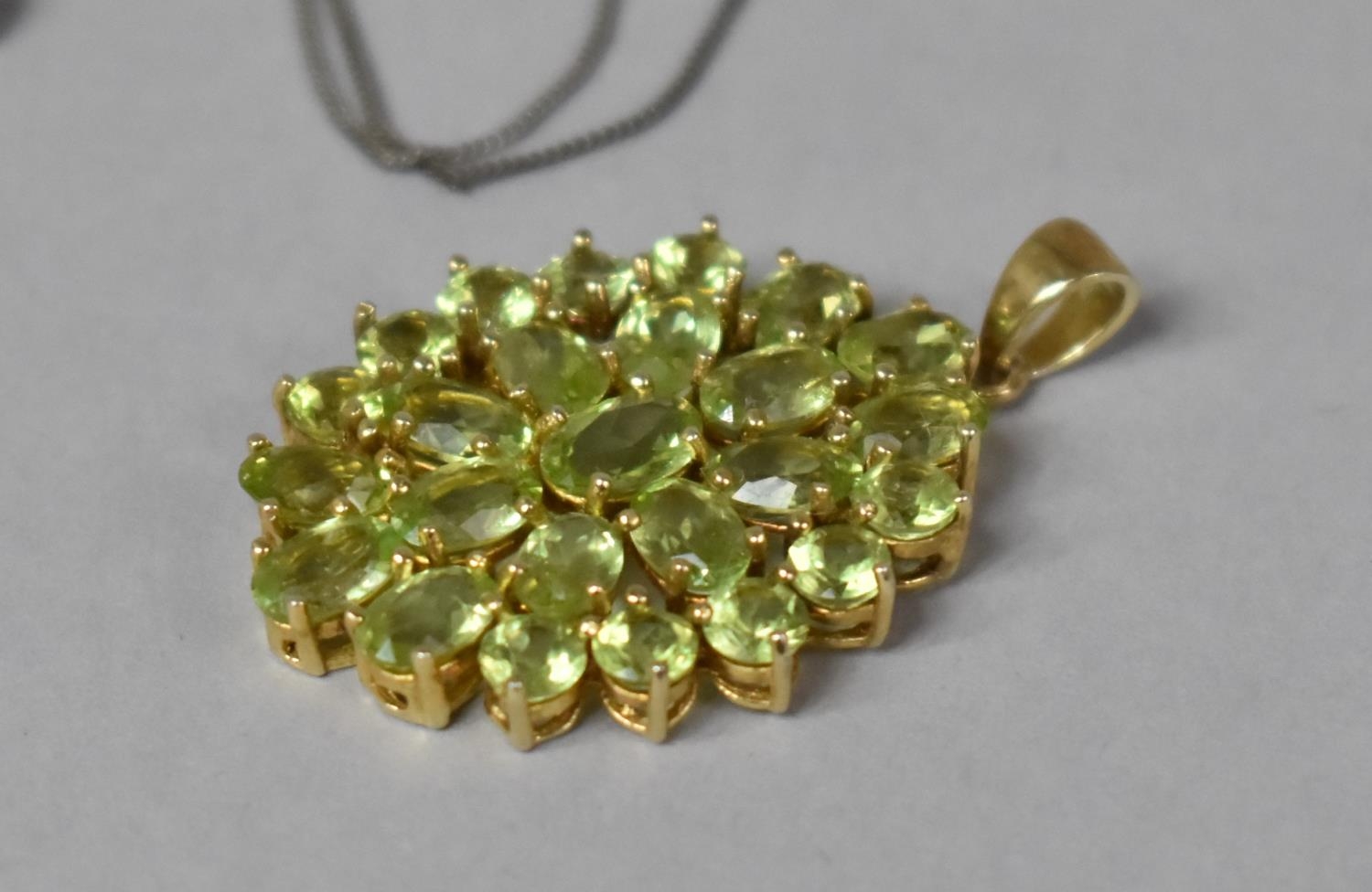 A Gilt Silver and Peridot Pendant, a Gold Filled Heart Shaped Locket on Chain, A Yellow Metal Jewelled Bracelet, a Silver and CZ Pendant on Silver Chain and a Costume Jewellery Brooch.