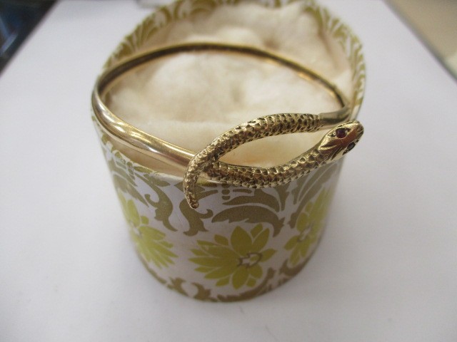 18CT GOLD SNAKE BANGLE WITH RUBY EYES - EGYPTIAN 10g