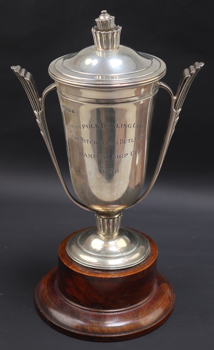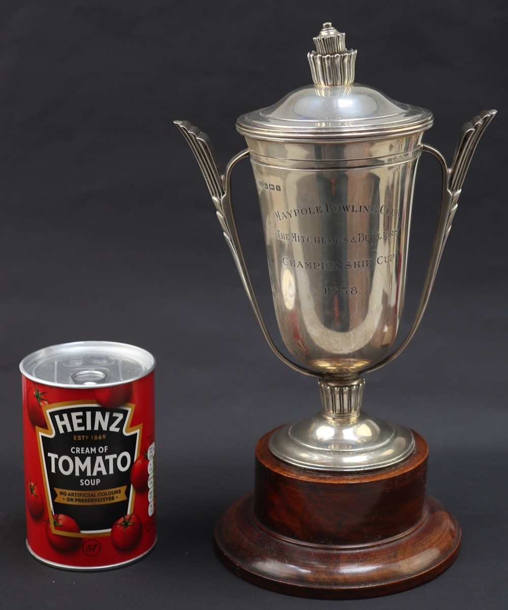 Hallmarked silver lidded trophy - Approx 591g