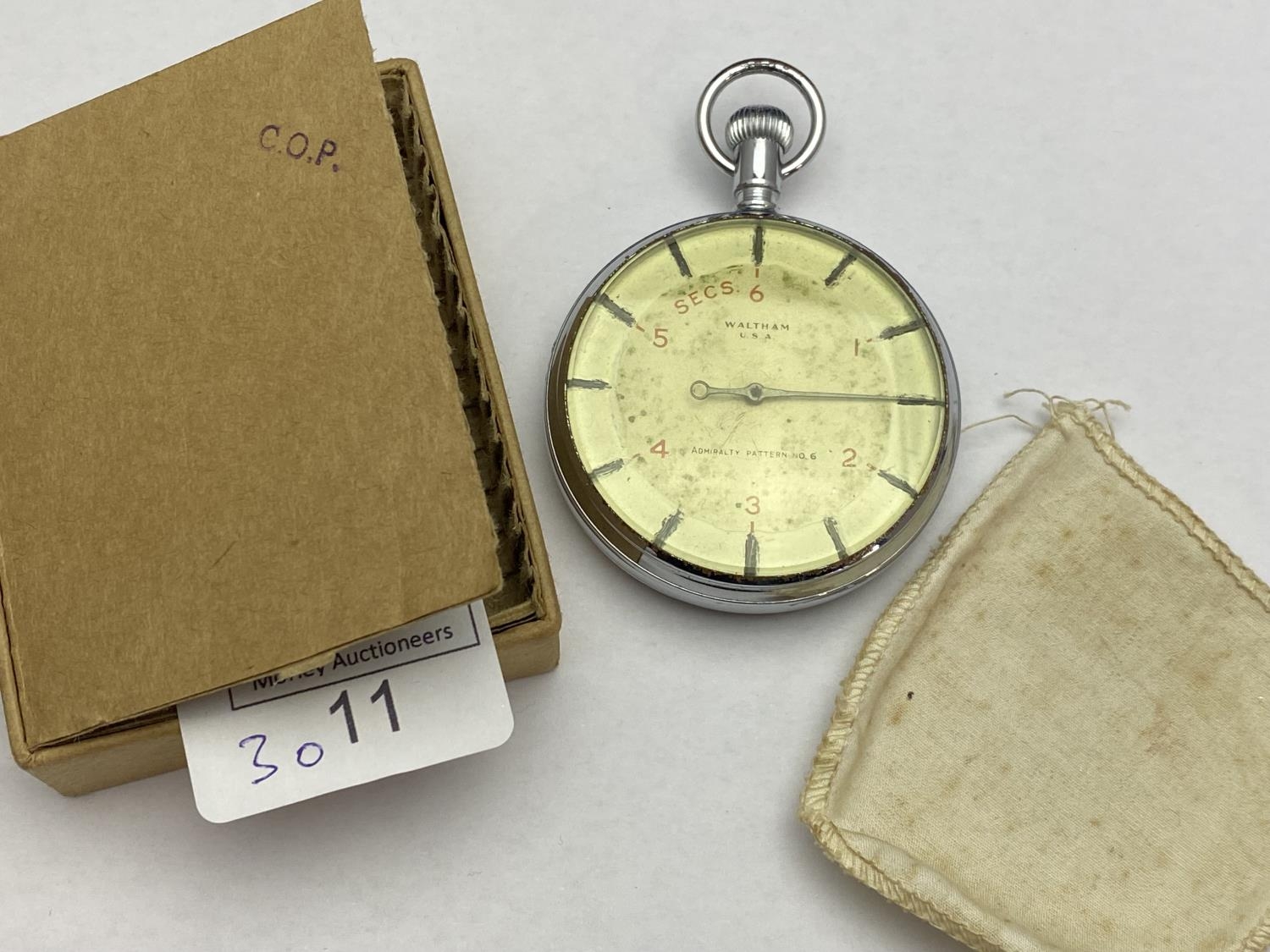 A WW2 period military Waltham stopwatch, Broad arrow to back, Pattern 6