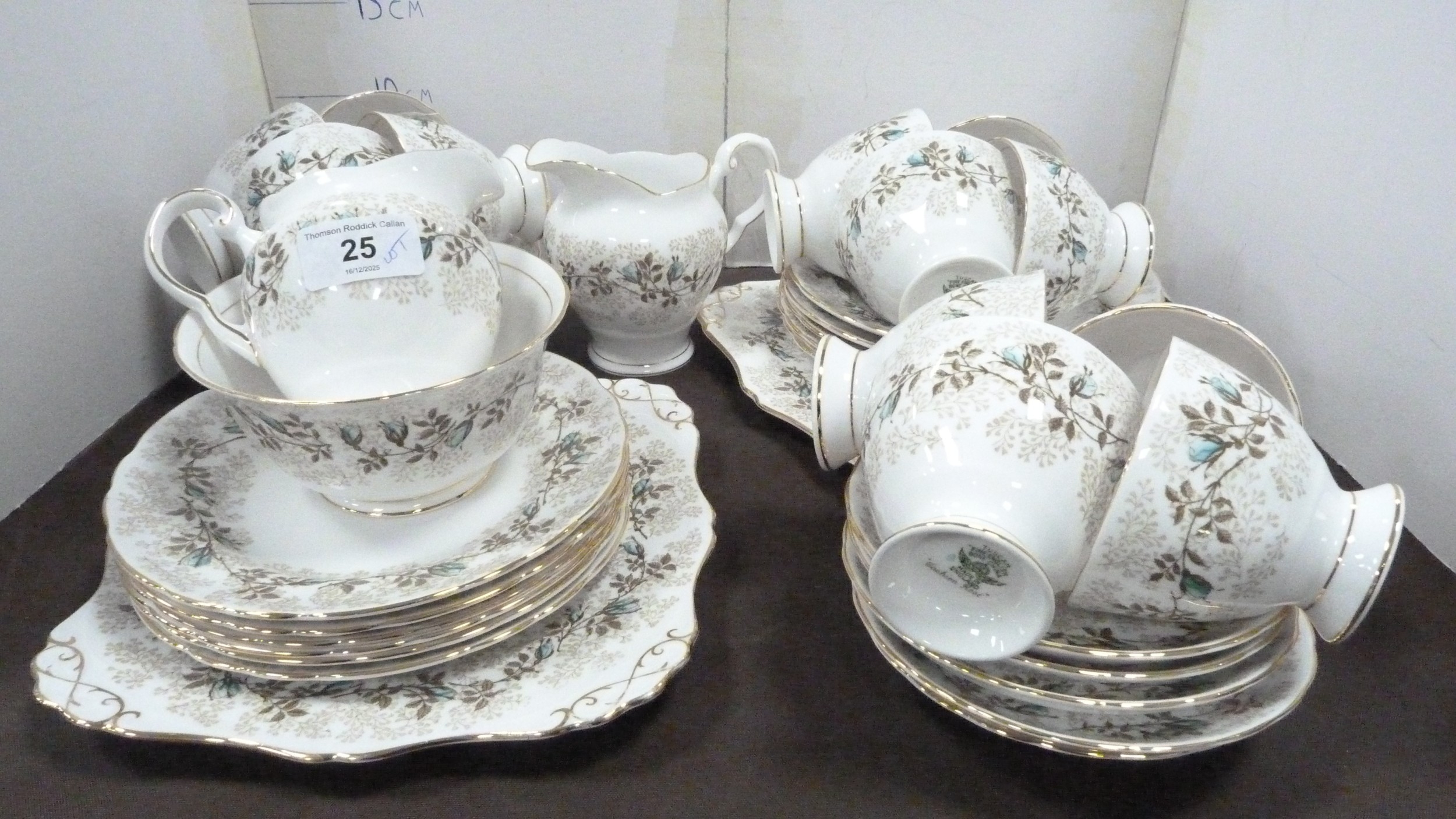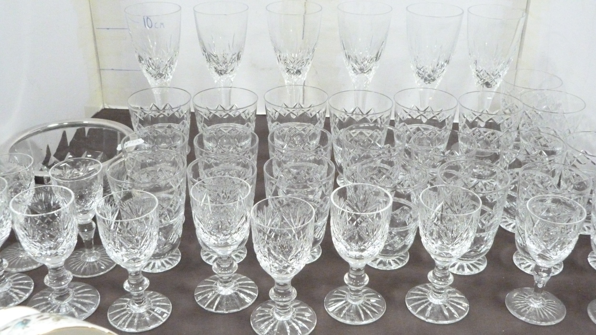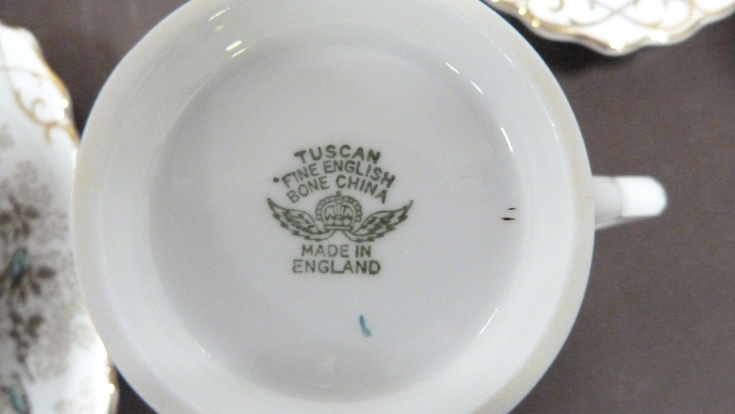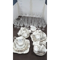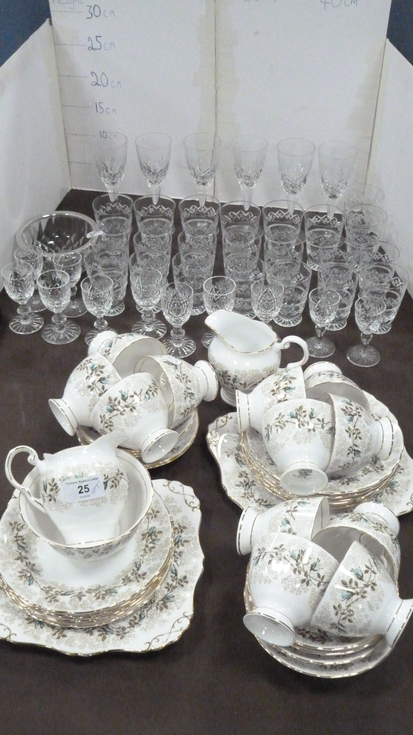 Group of crystal to include liqueur and wine glasses, also a Tuscan 'Jackson Rose' pattern part tea set.