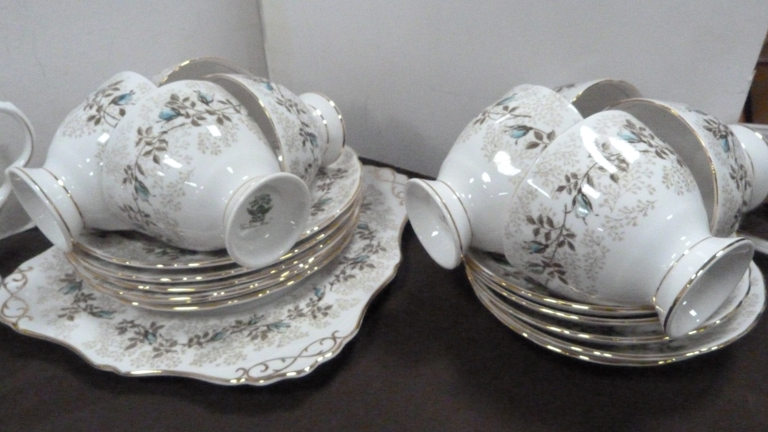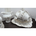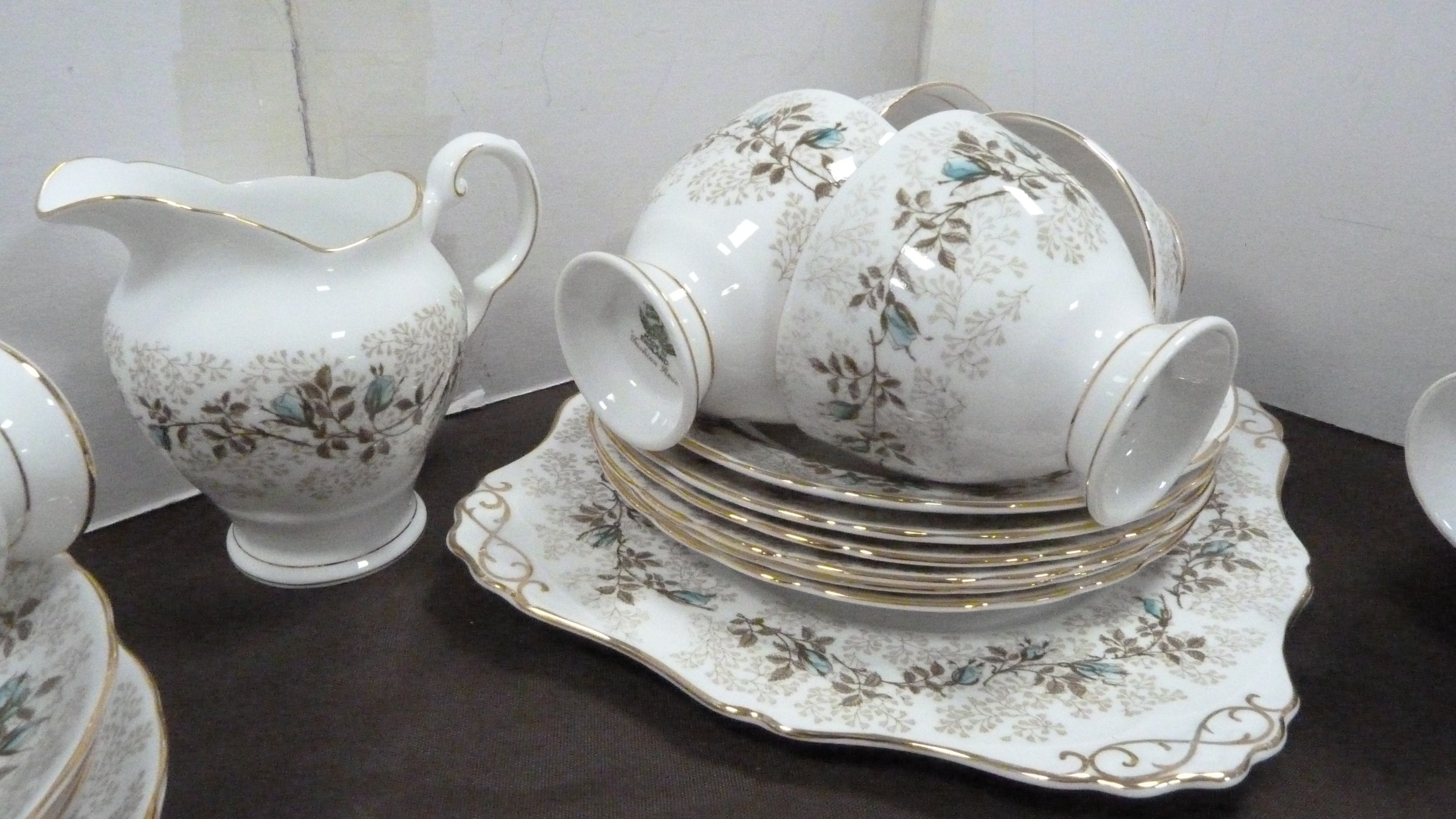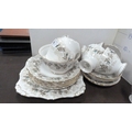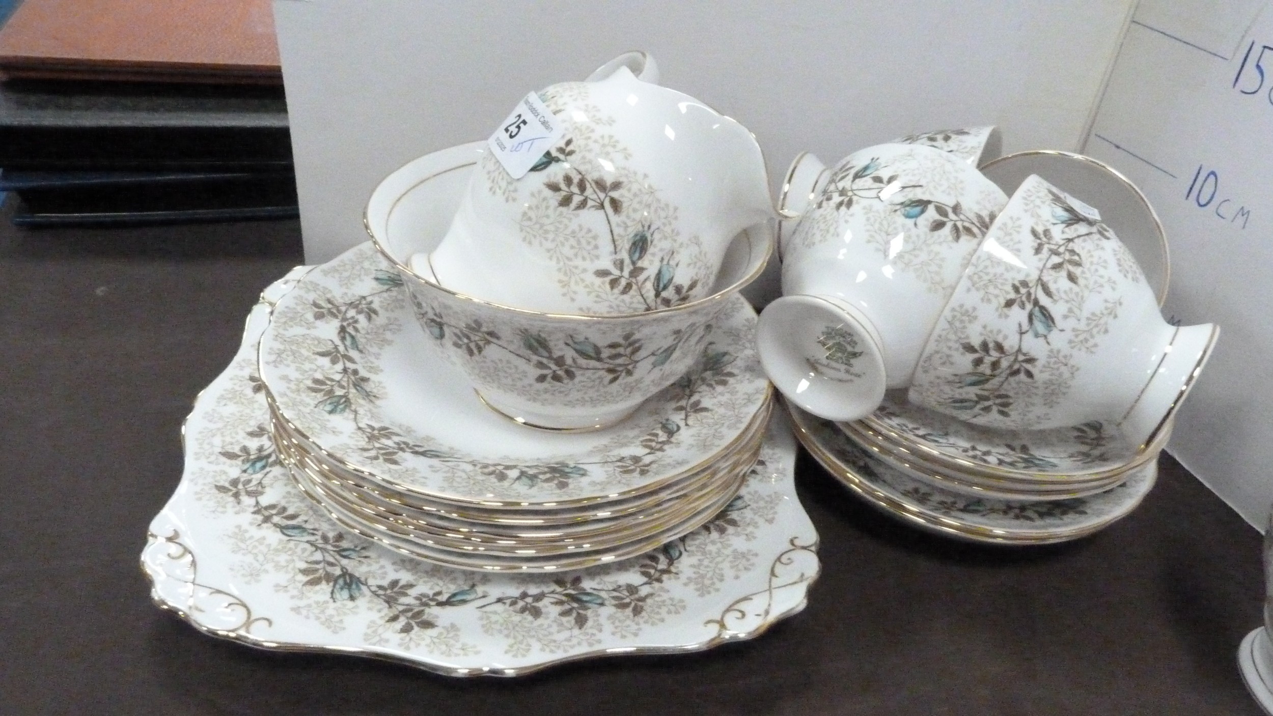 Group of crystal to include liqueur and wine glasses, also a Tuscan 'Jackson Rose' pattern part tea set.