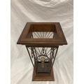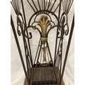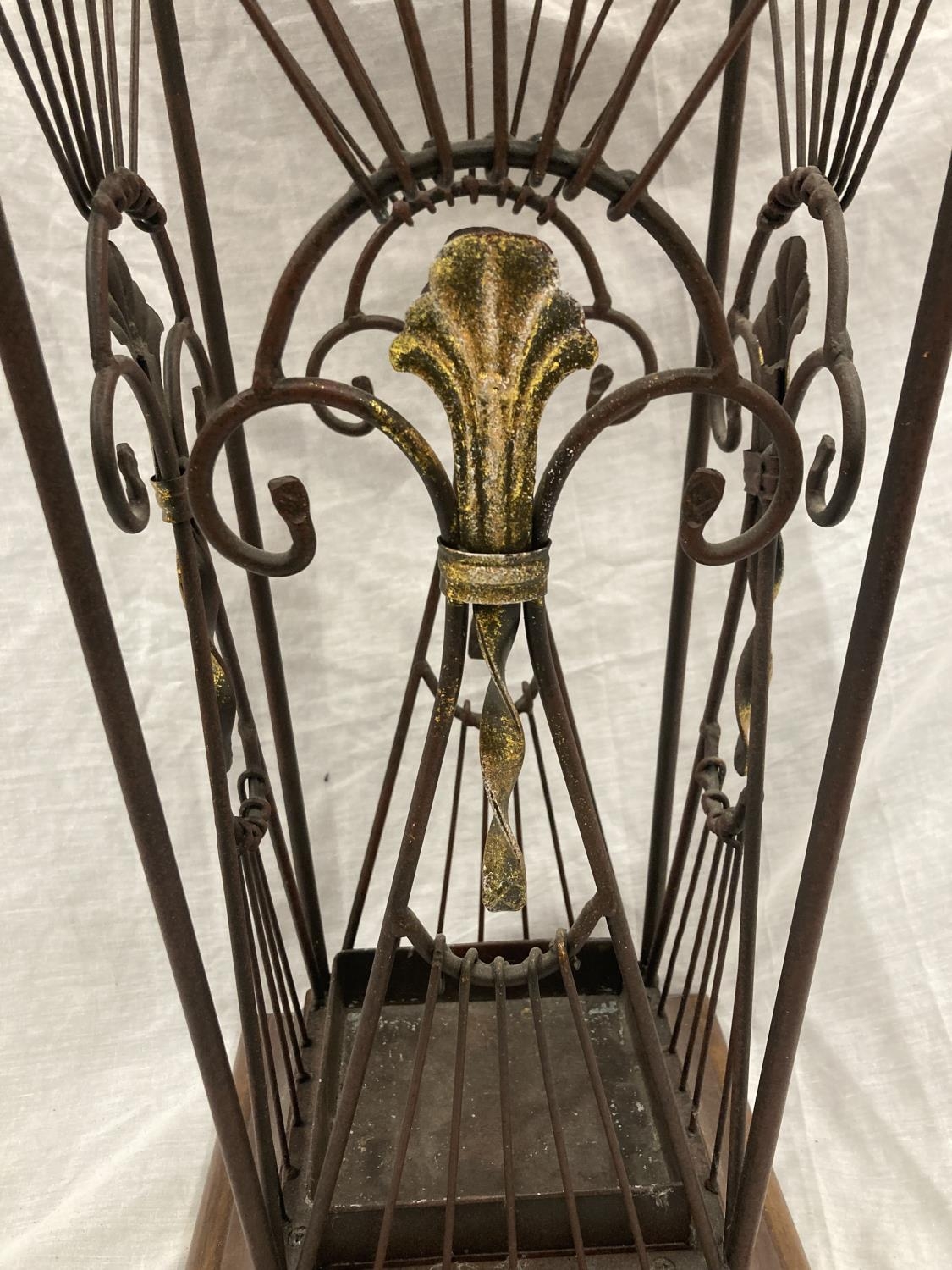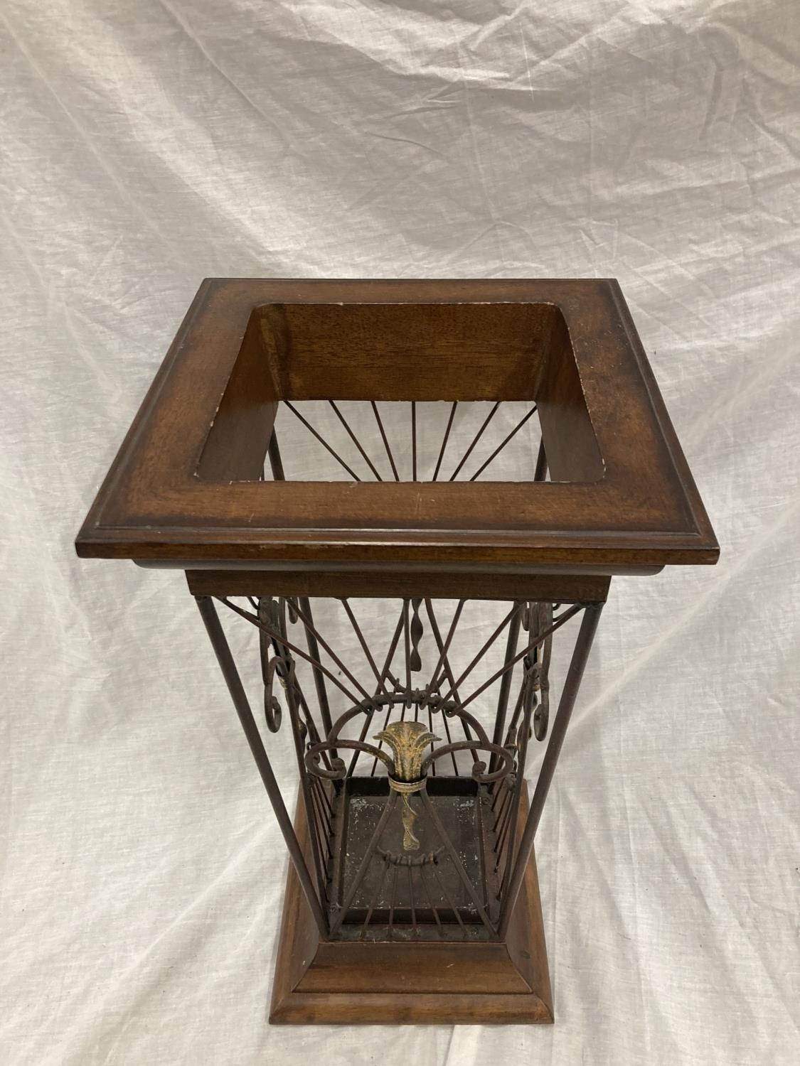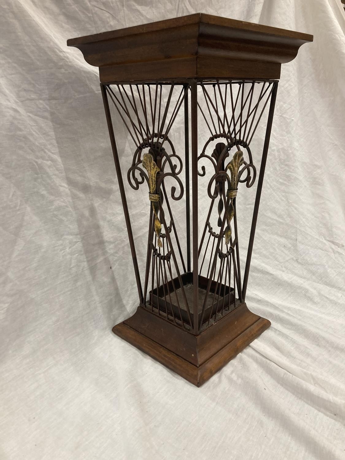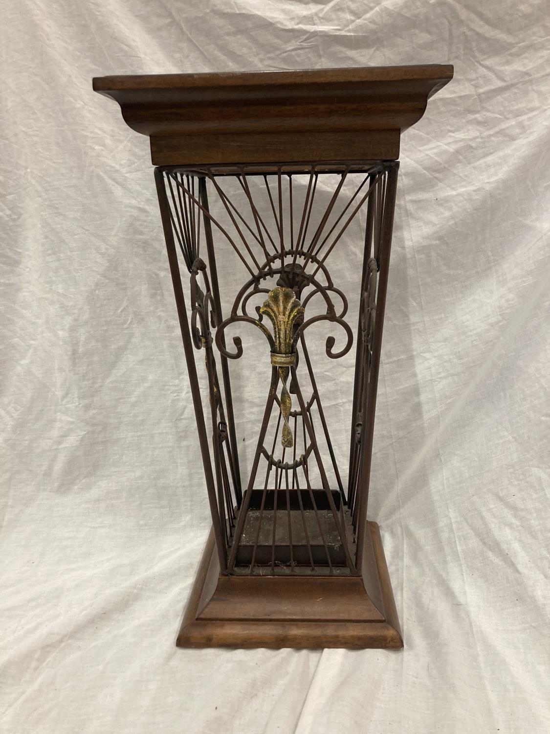 A VINTAGE STYLE WOOD AND WROUGHT IRON UMBRELLA STAND