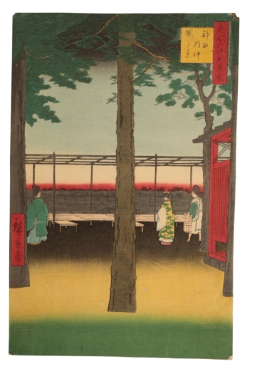 UTAGAWA HIROSHIGE I (1797-1858) Dawn at Kanda Myojin Shrine, from the series of One Hundred Famous Views of Edo 1857, woodblock print on paper, 34cm x 22cm.