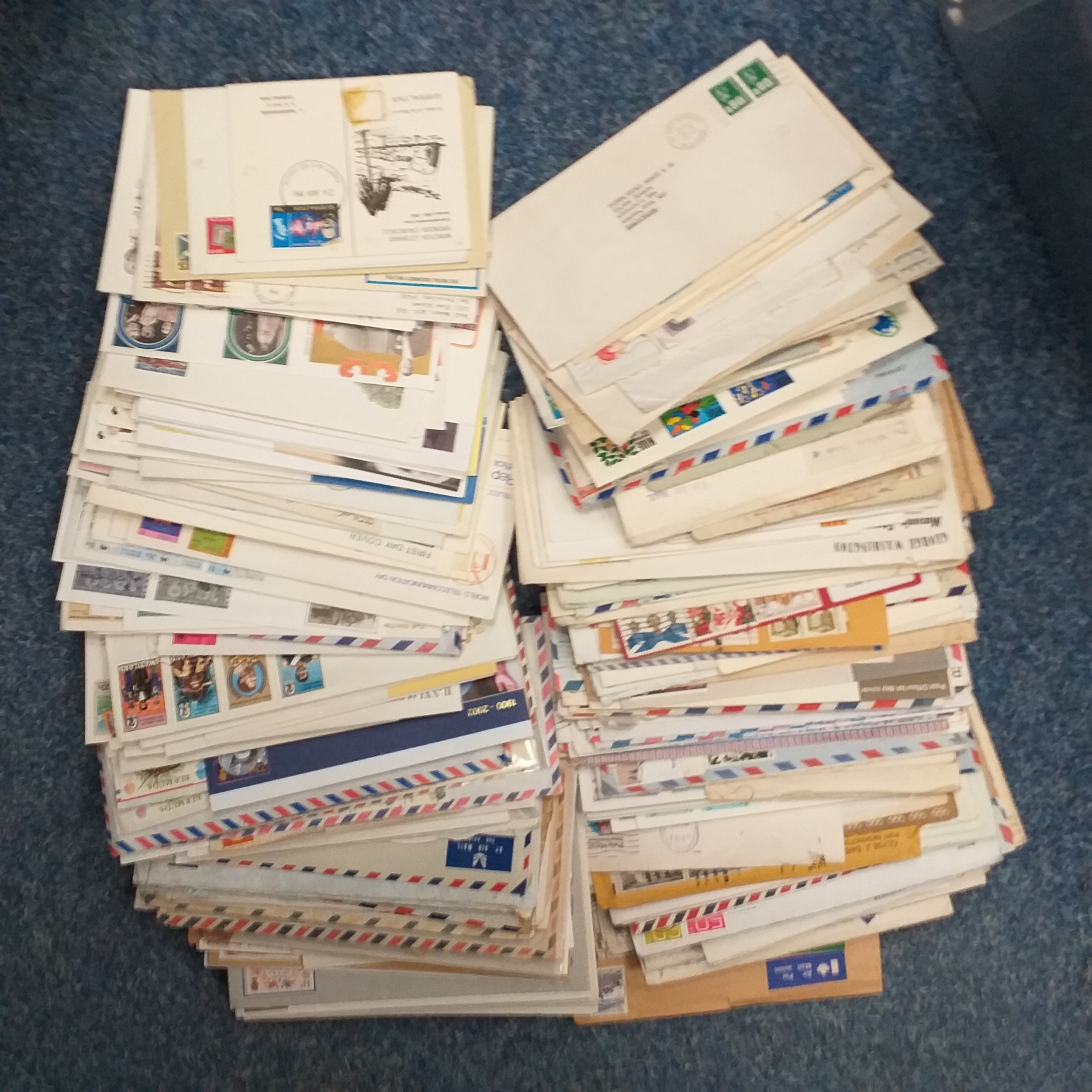 Box containing a mass of world covers (some FDC's & commercial) but mostly private mail. Viewing required.