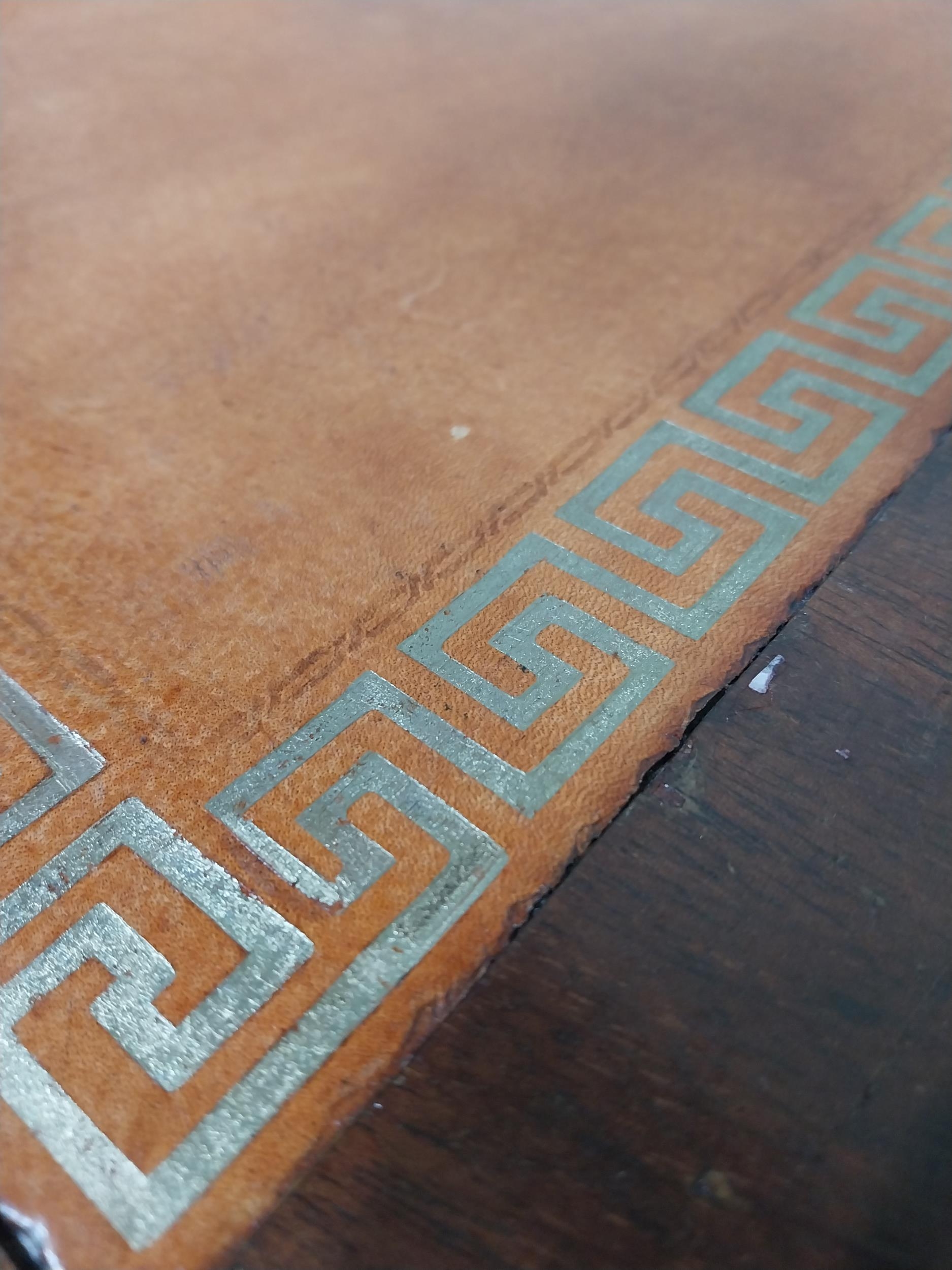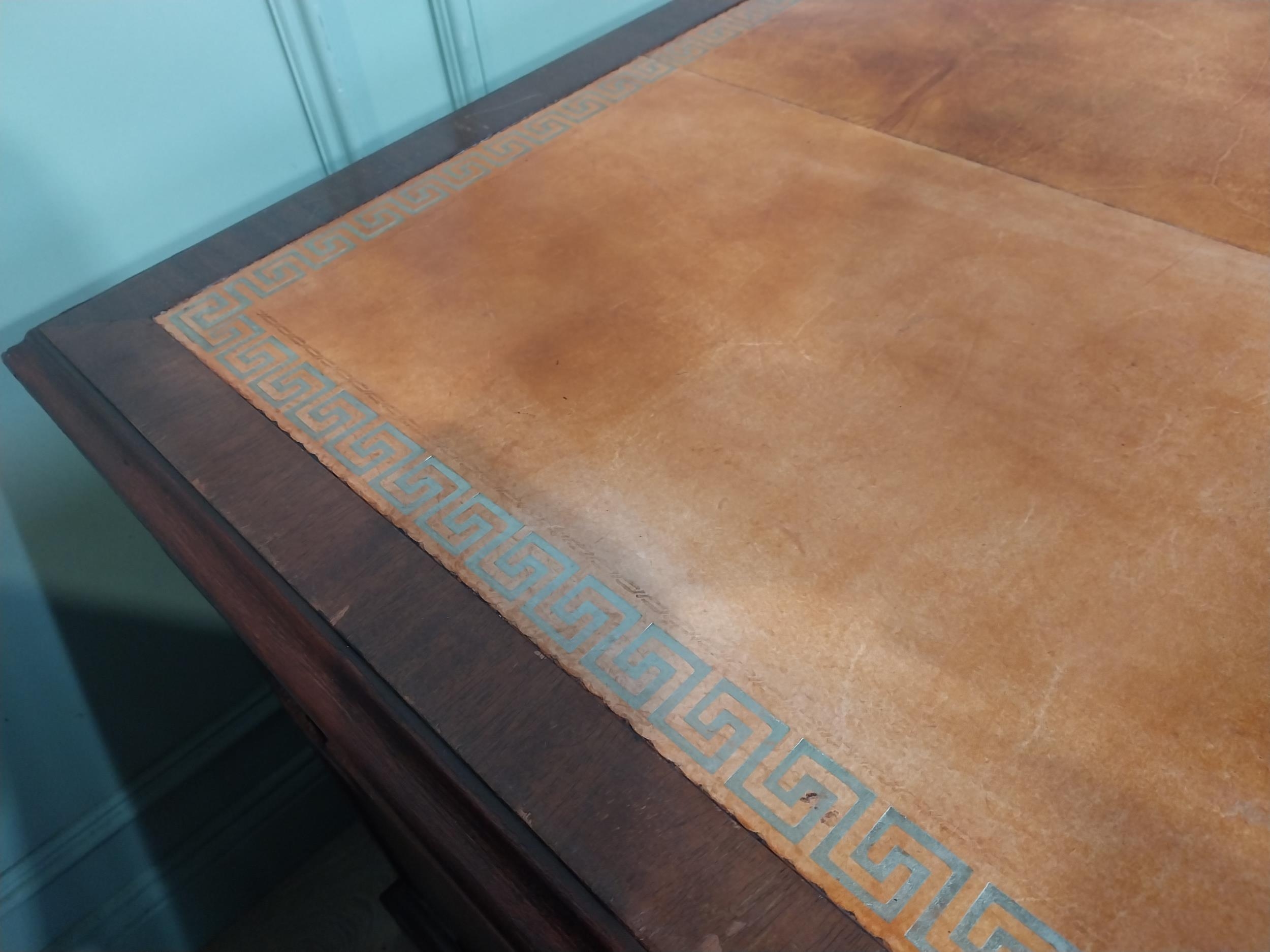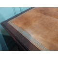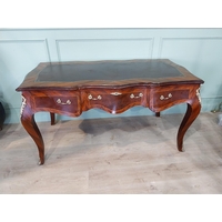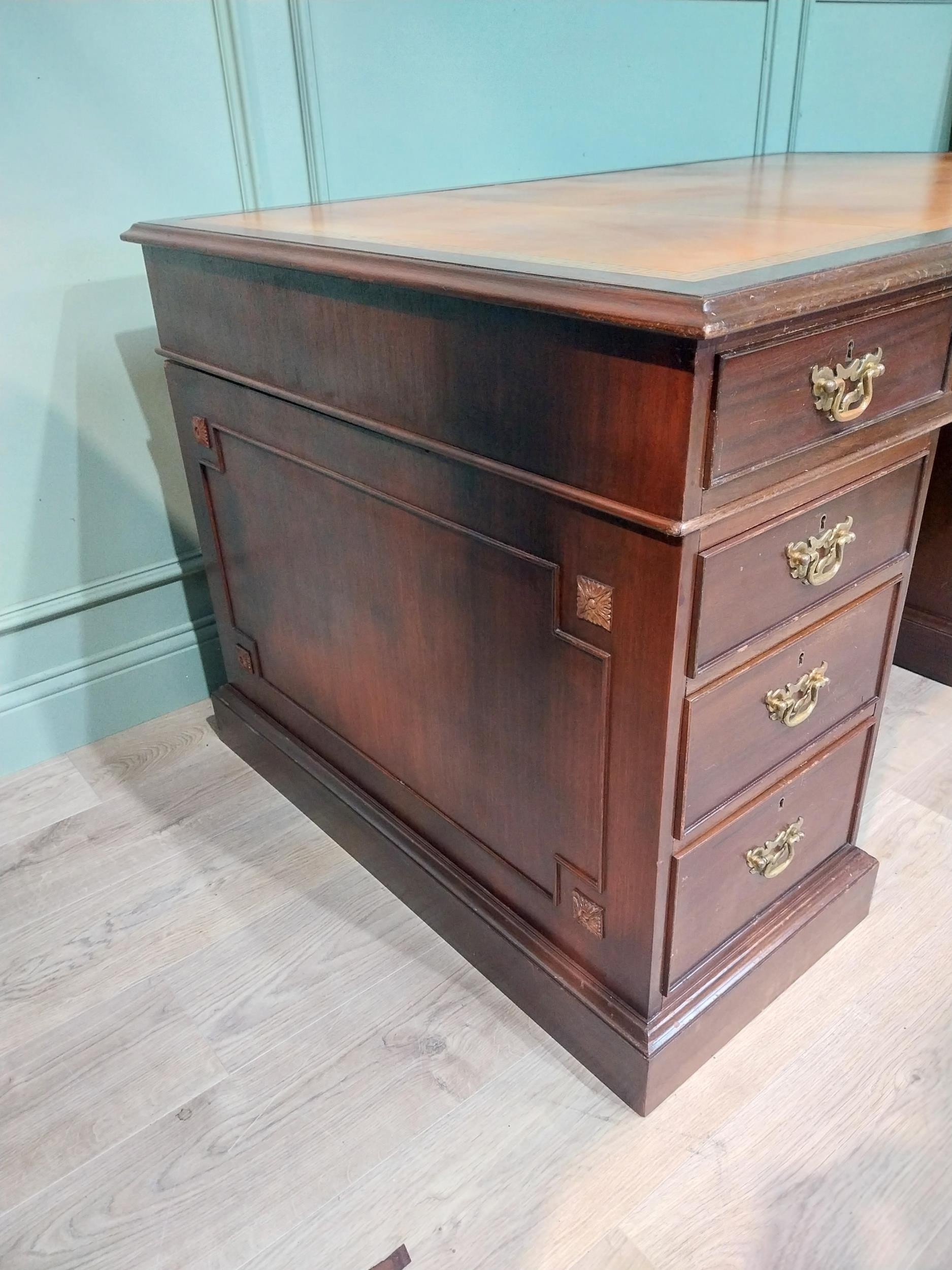 Mahogany pedestal desk with inset leather top in the 19th C. style. {79 cm H x 140 cm W x 93 cm D}.