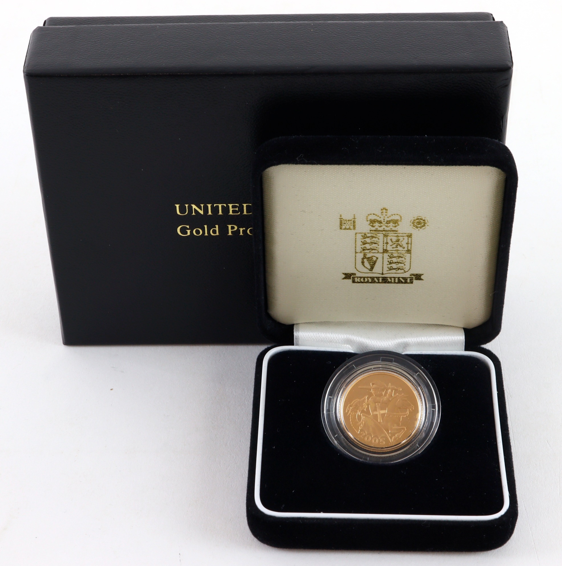 Sovereign 2005 proof, nFDC (some toning) cased with cert and box.